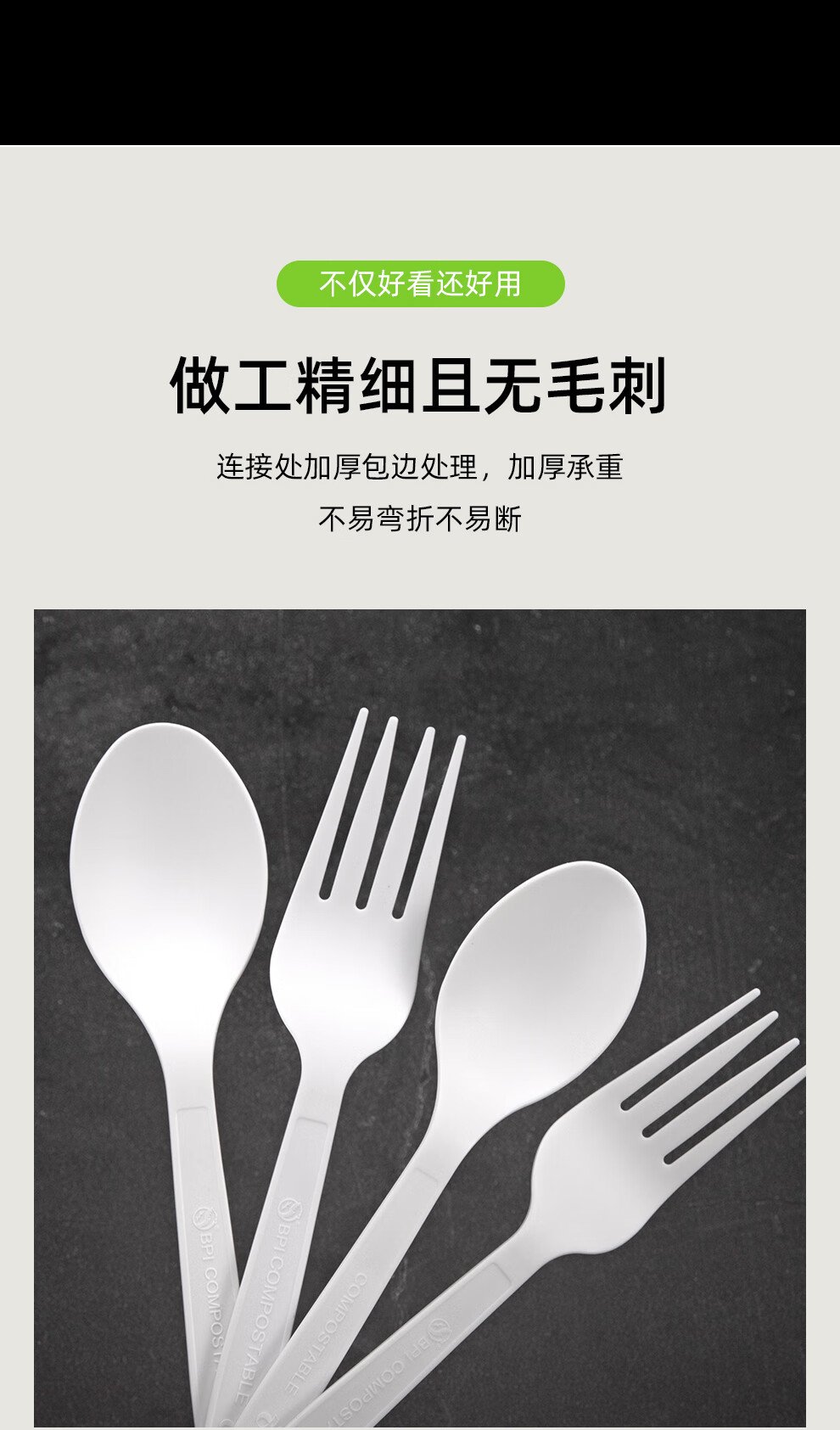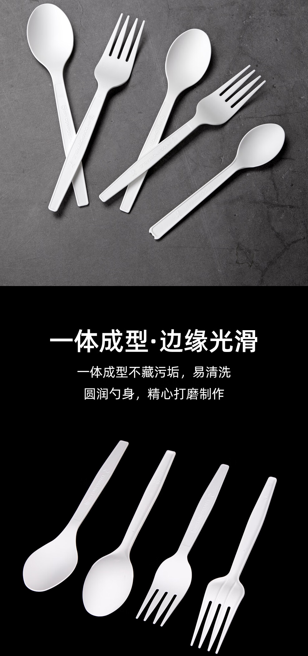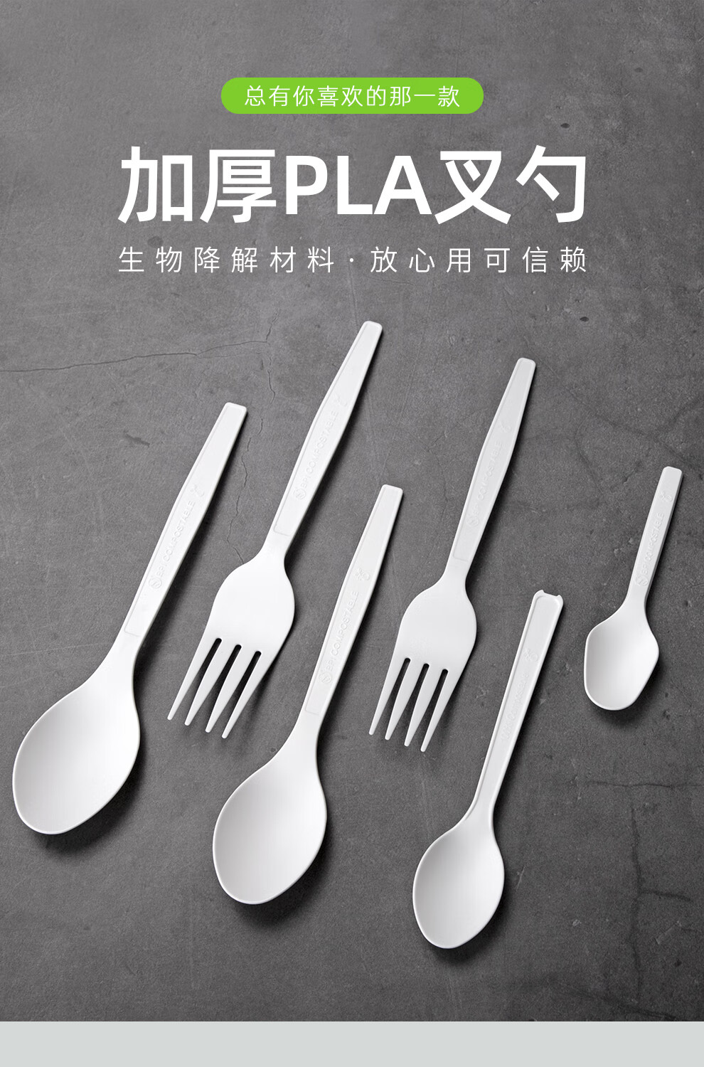 Petunia disposable fork spoon PLA spoon fork rice spoon four-pronged fork table fork 4-inch small tea spoon in bulk 100 pieces in bulk