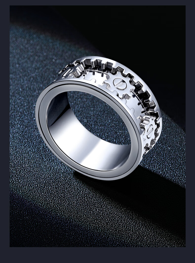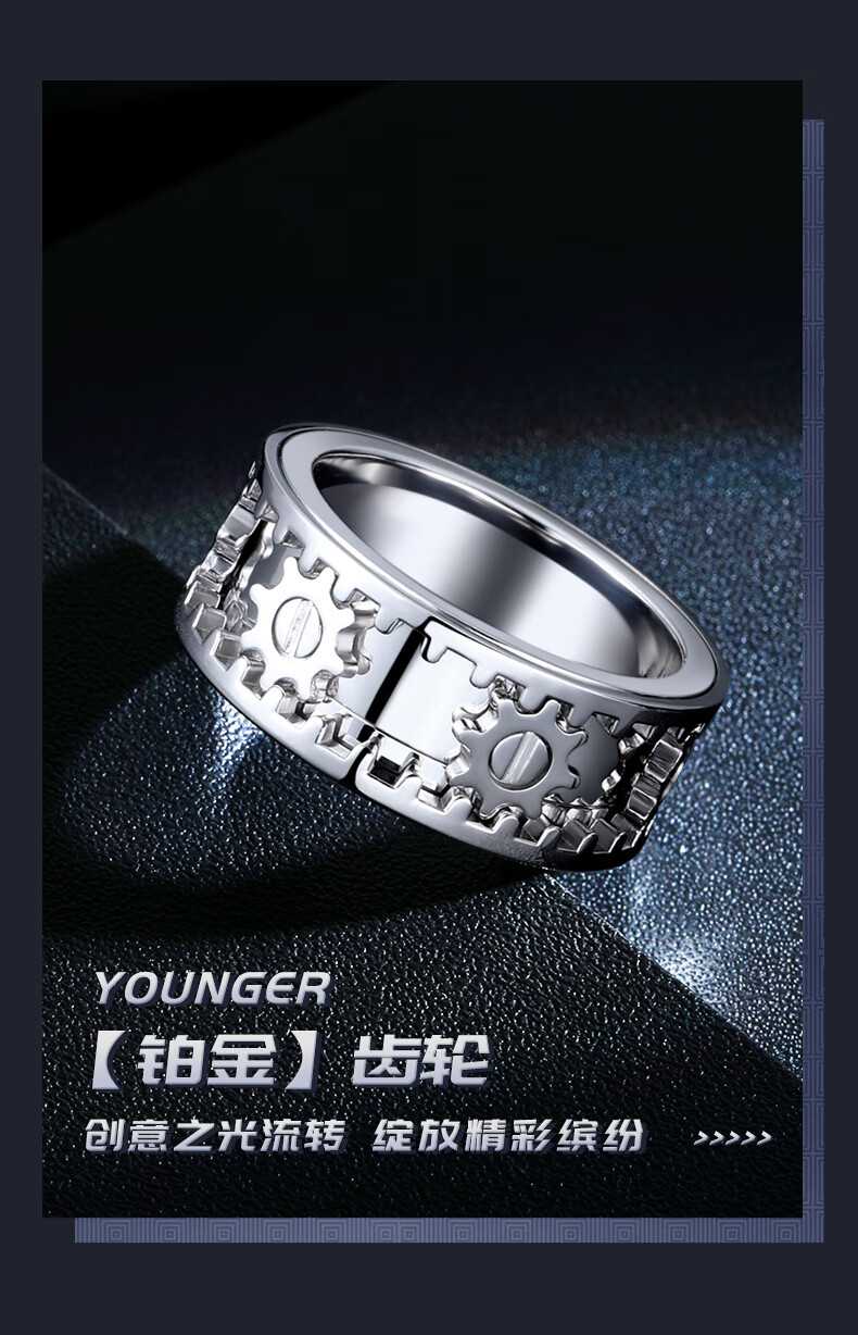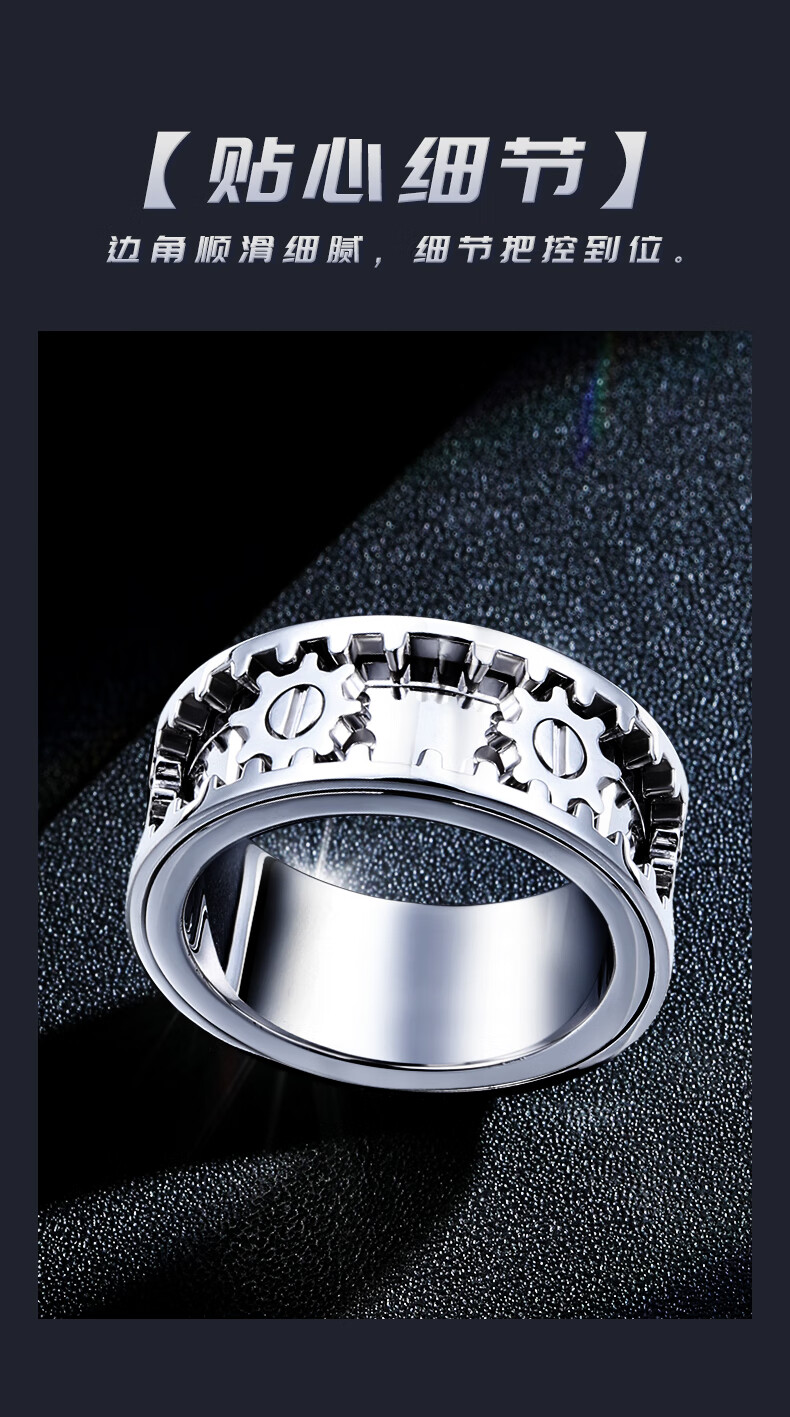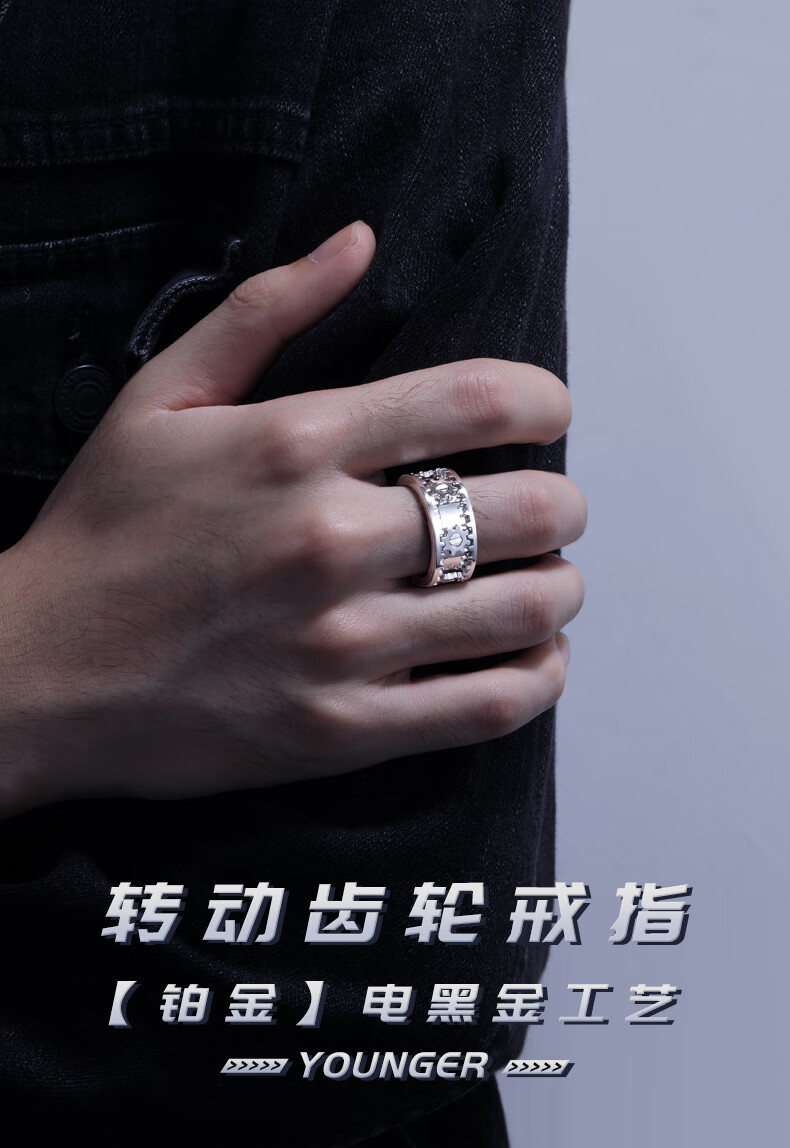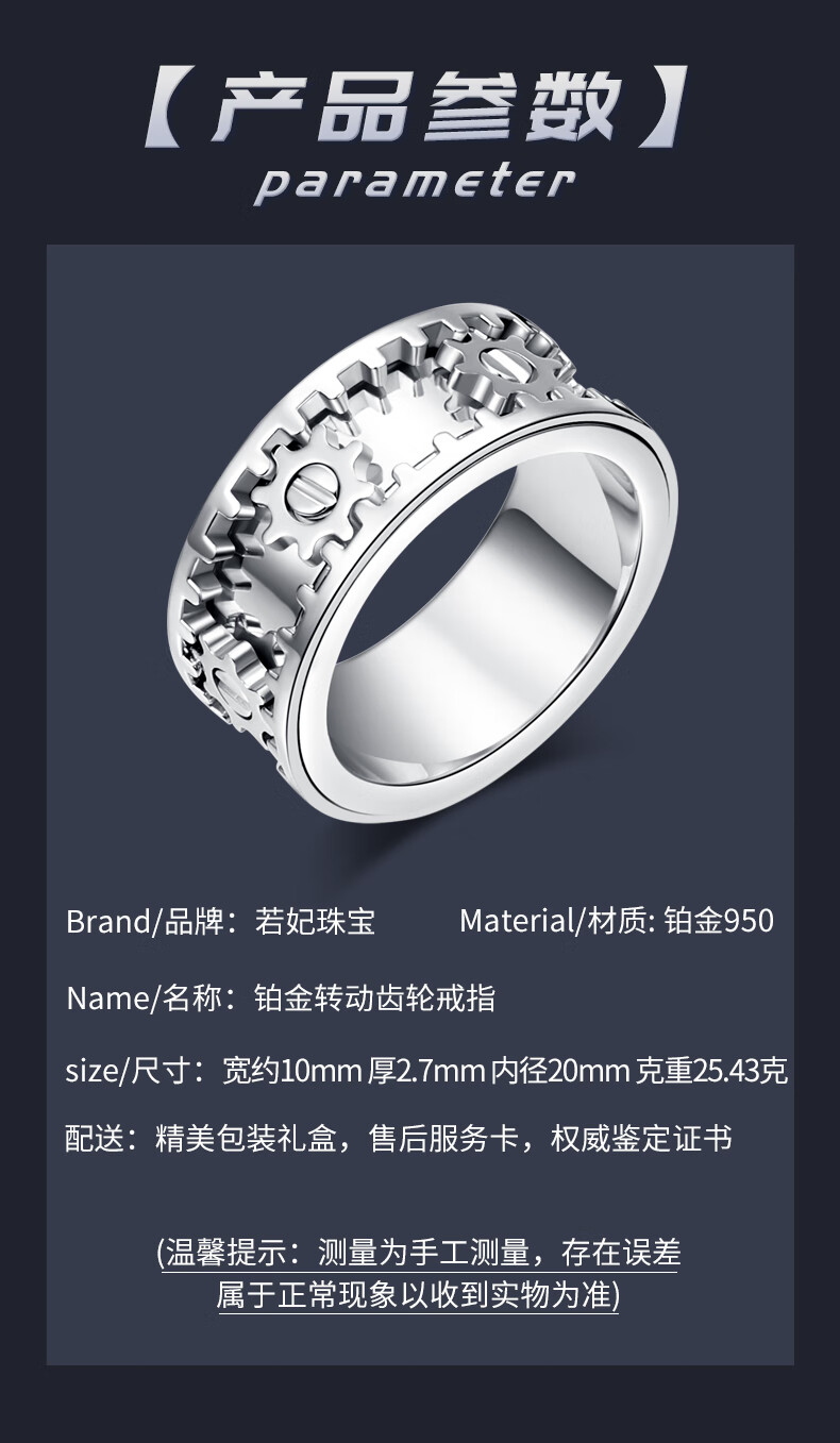 Ruofei platinum ring men's pt950 men's platinum gear ring personalized design rotatable platinum men's plate ring platinum gear ring No. 20 25-26 grams