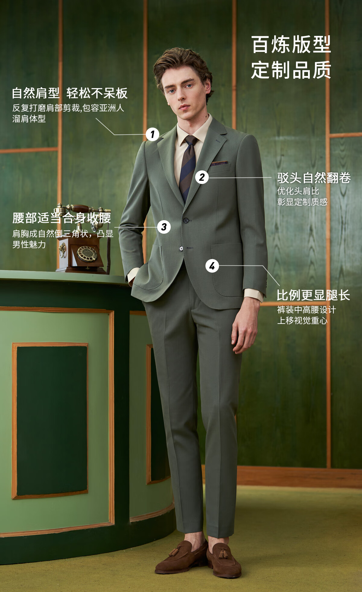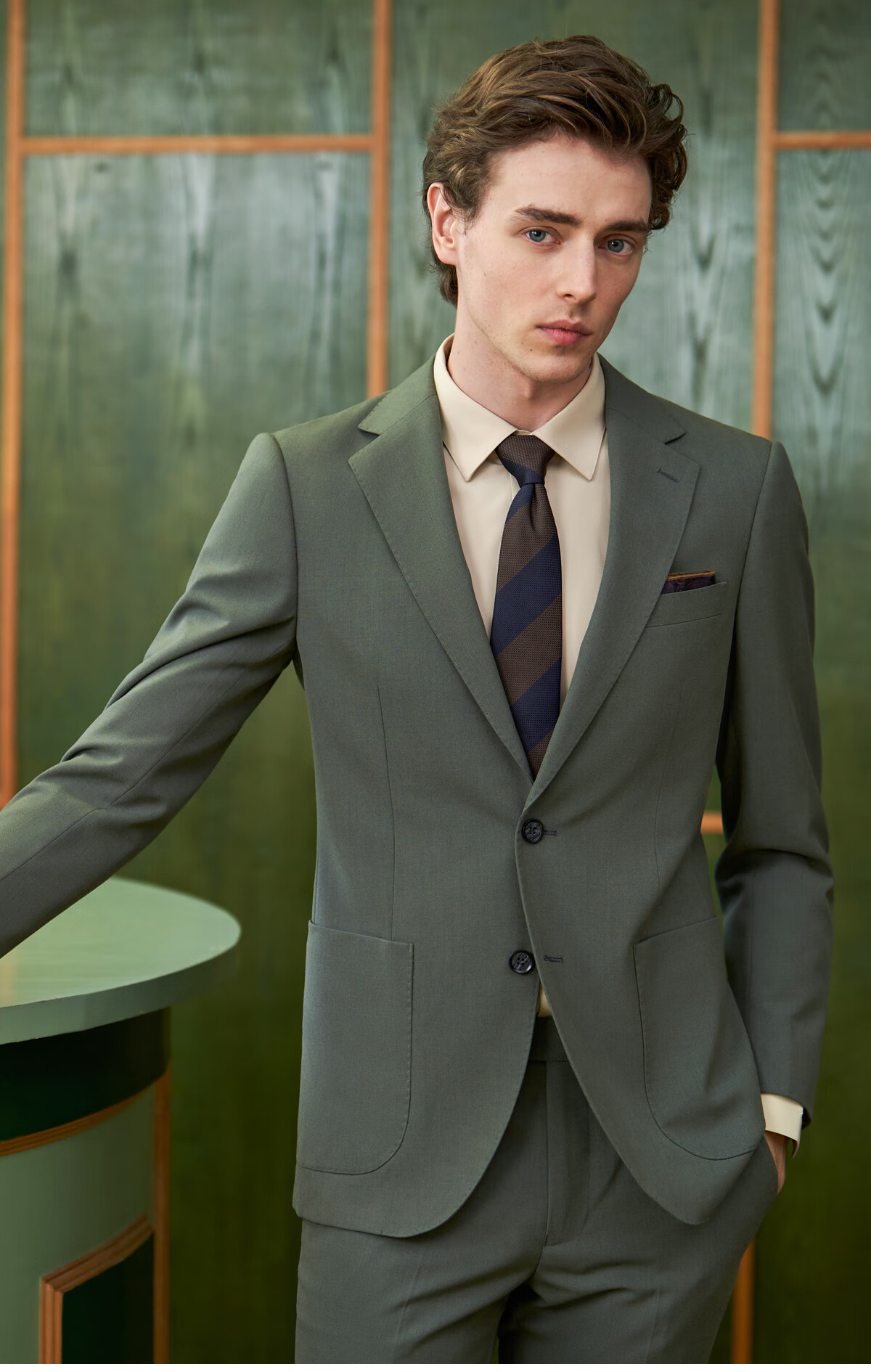 Guillomont 50% wool suit men's suit gray green wedding groomsmen suit business suit suit formal suit gray green single top 44