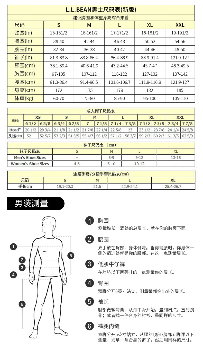 China (cm) 165 / 88-90 170 / 96-98 175 / 108-110 180 / 118-122 185 / 126-130