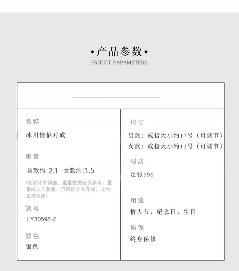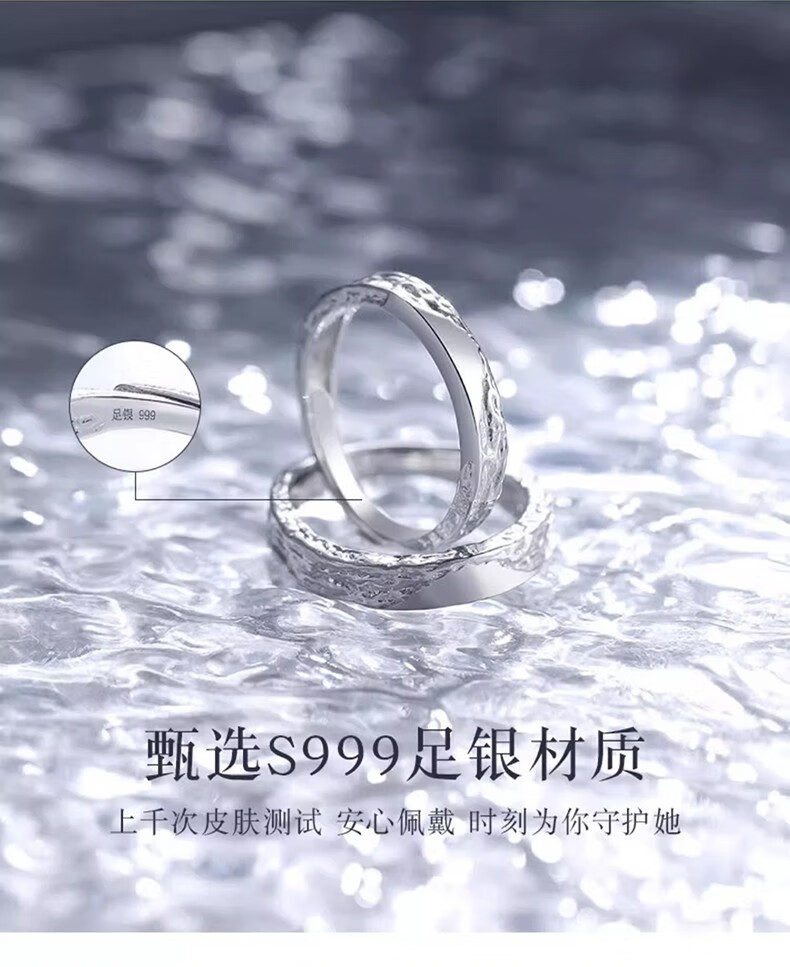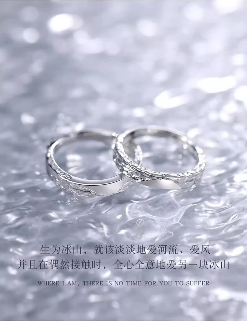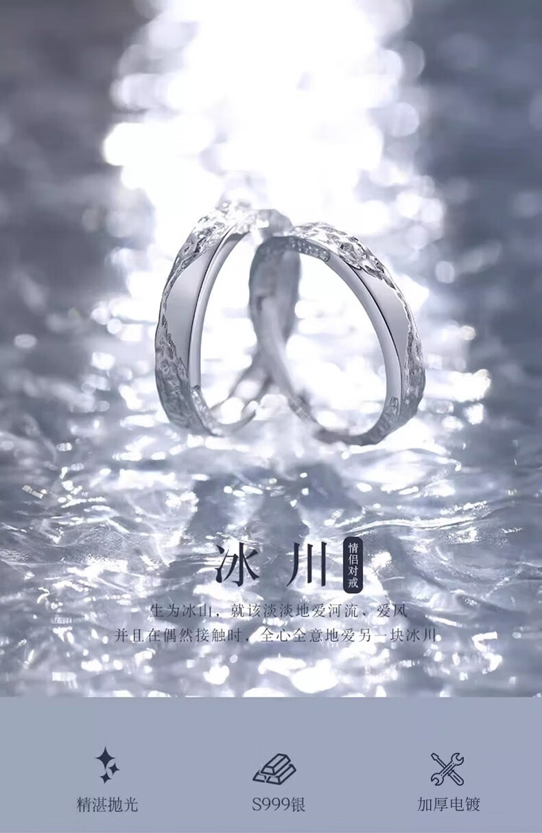 Chinese Gold Glacier Silver Couple Rings Pair of Proposal Rings Confession Wedding Anniversary Gifts for Wife’s Birthday Glacier Couple Rings Jingsuda