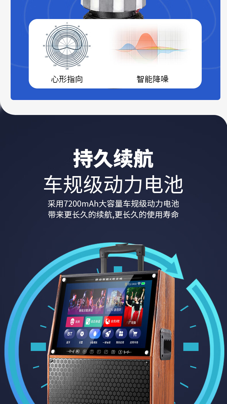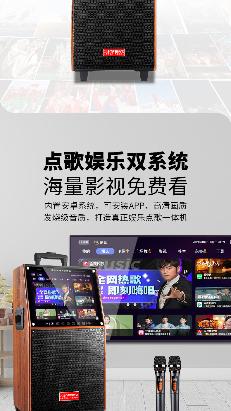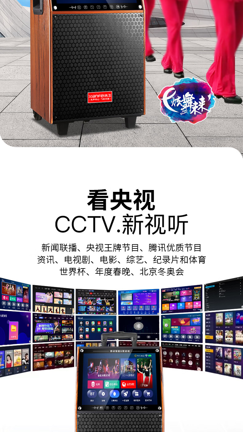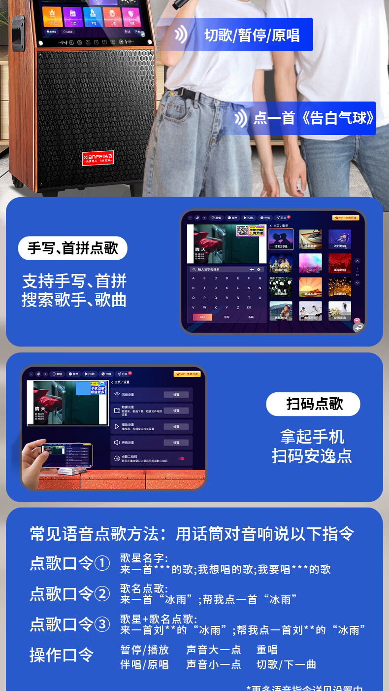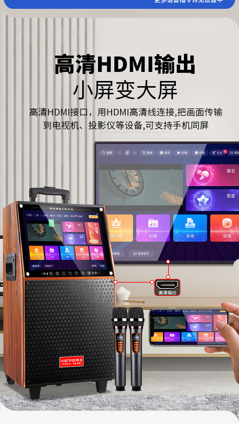 Xianfei square dance audio with display screen outdoor audio karaoke all-in-one trolley speaker mobile bluetooth home KTV audio karaoke machine large volume 29-inch touch version + dual microphones + U disk