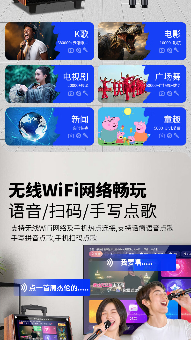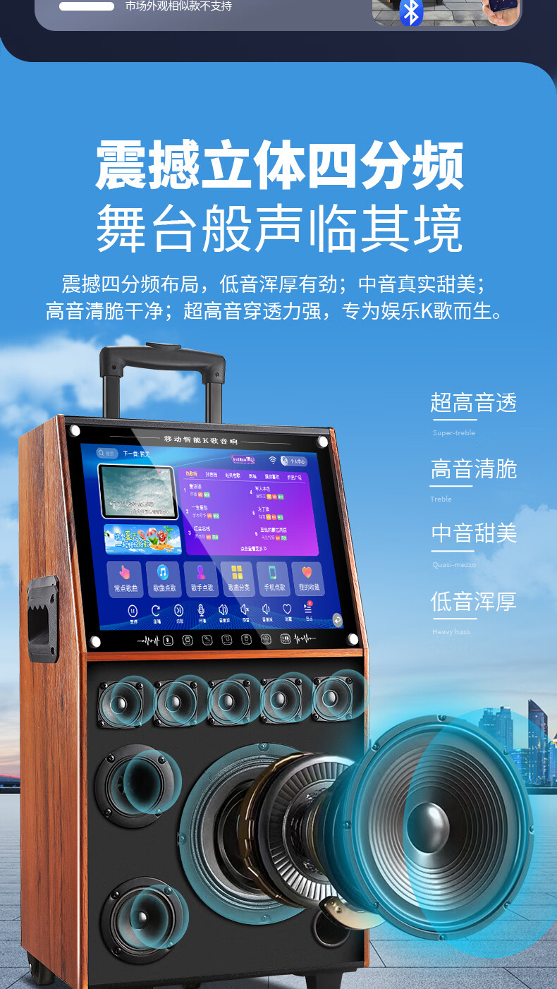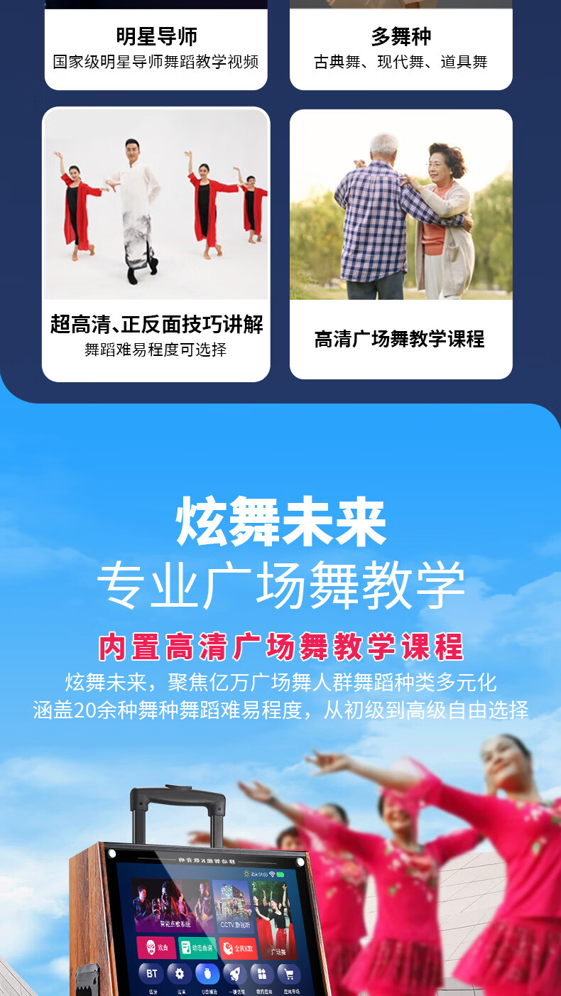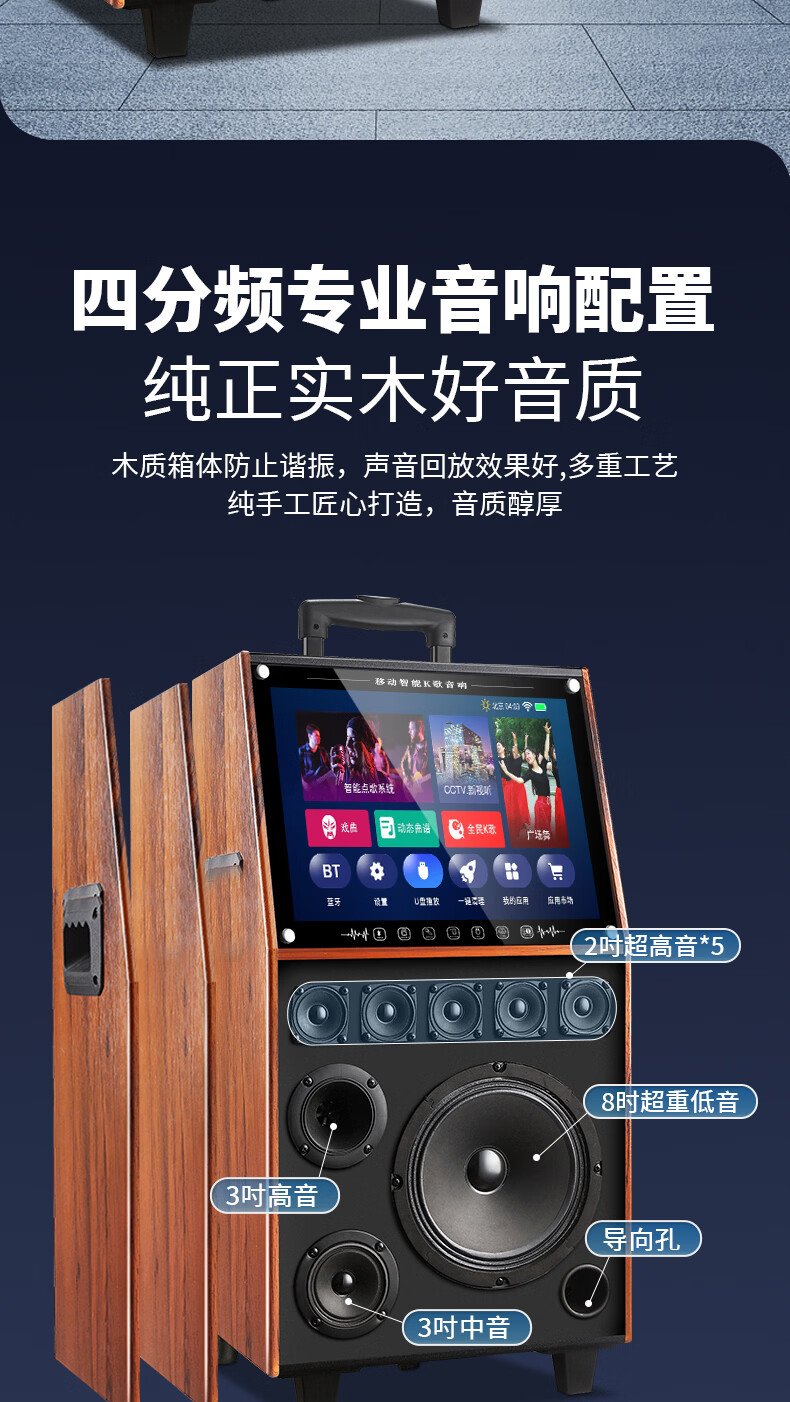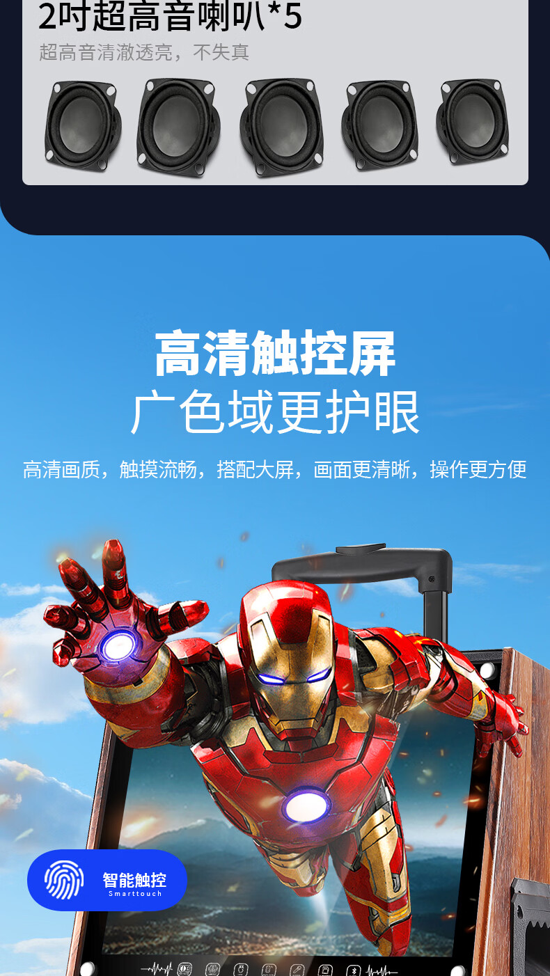 Xianfei square dance audio with display screen outdoor audio karaoke all-in-one trolley speaker mobile bluetooth home KTV audio karaoke machine large volume 29-inch touch version + dual microphones + U disk