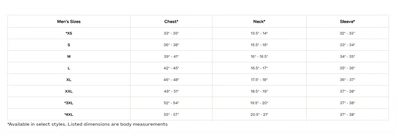 China (cm) 165 / 88-90 170 / 96-98 175 / 108-110 180 / 118-122 185 / 126-130