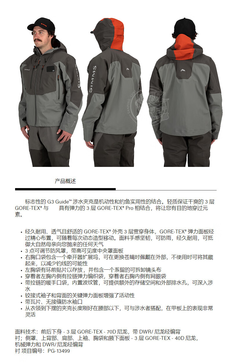 SIMMS22 New SIMMS Fishing Suit G3 GUIDE Fishing Suit Wading Jacket Luya Outdoor Fishing Gun Gray S