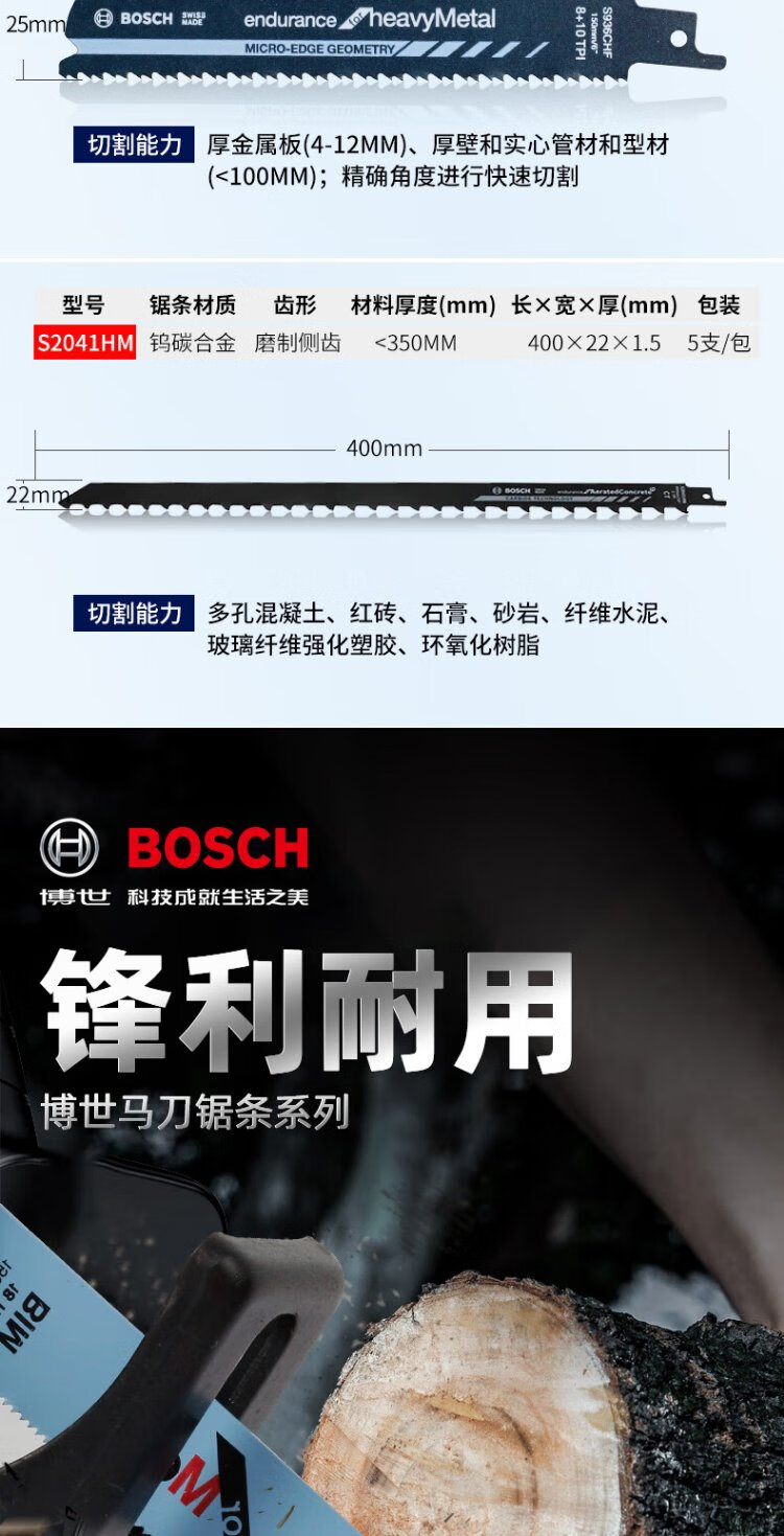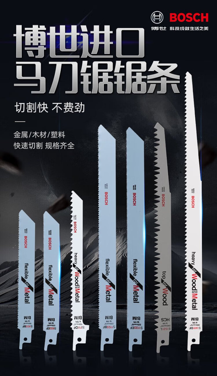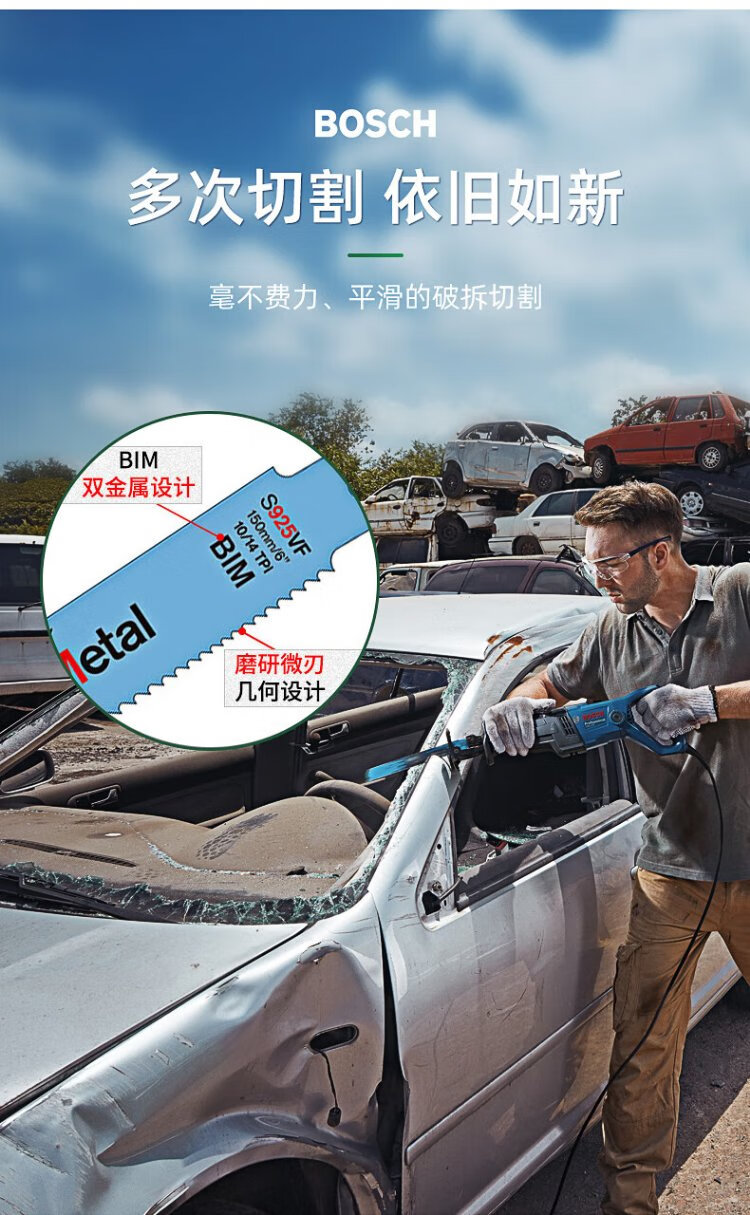 Bosch (BOSCH) imported saber saw blade electric saw reciprocating saw blade metal cutting rapid profile pipe stainless steel aluminum alloy cutting metal S1225VF professional type (5 pieces)