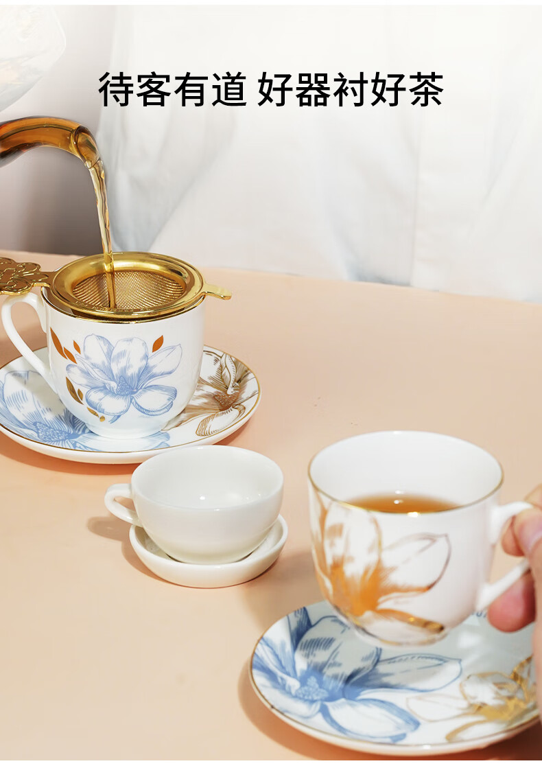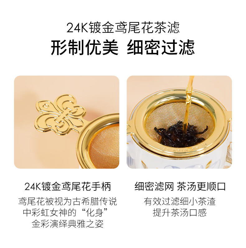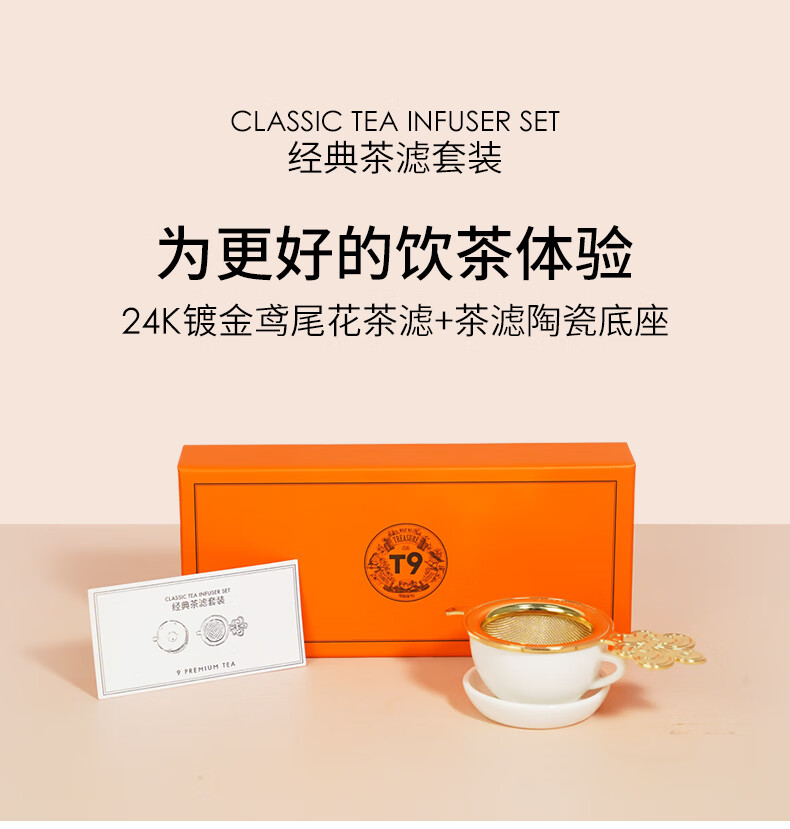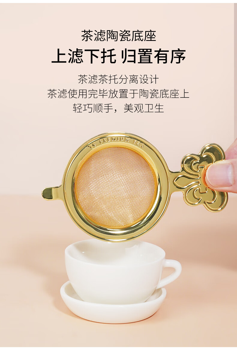T9 classic tea filter set stainless steel 24k gold-plated iris tea filter first-class ceramic tea filter base gift box 1 set
