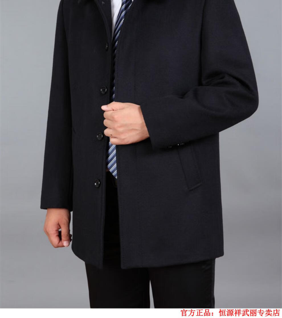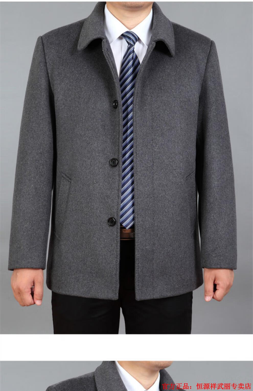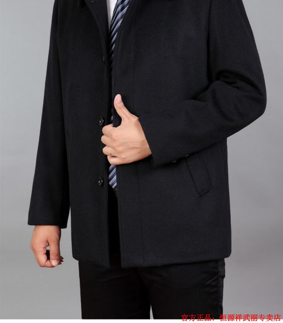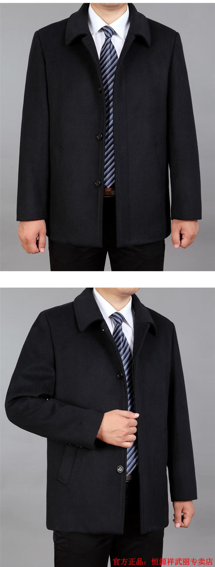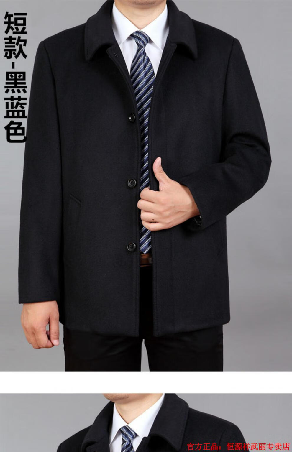 Hengyuanxiang woolen coat jacket men's autumn and winter short style thickened large size woolen woolen coat for middle-aged and elderly people short style black blue (no velvet) M 170 recommended 100-129 Jin Jin equals 0.5 kg