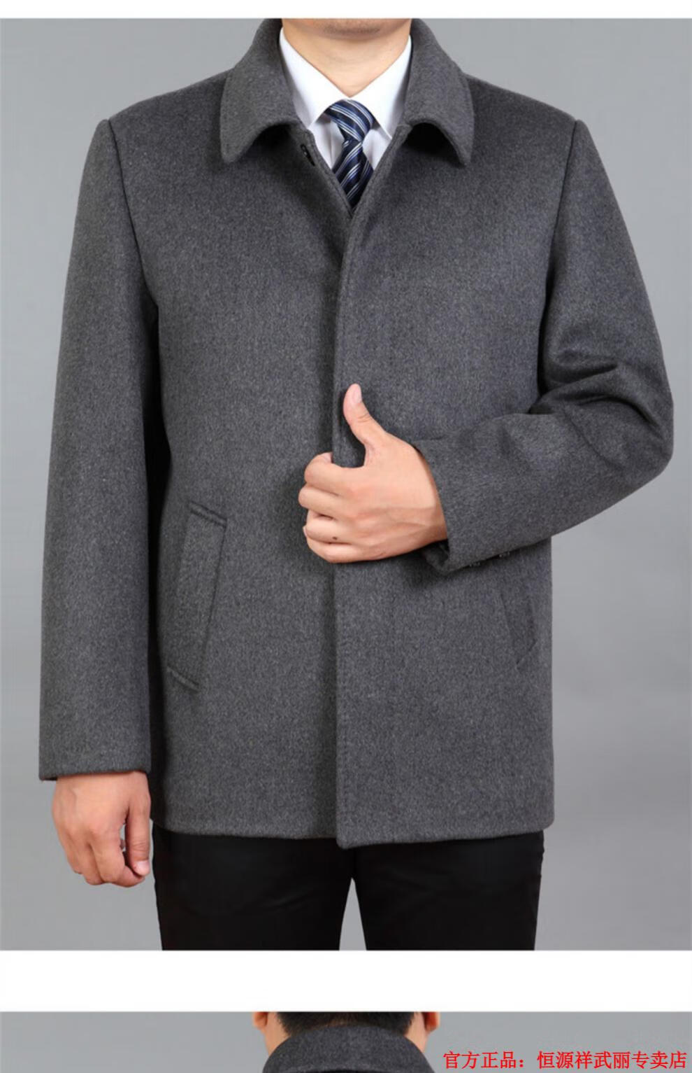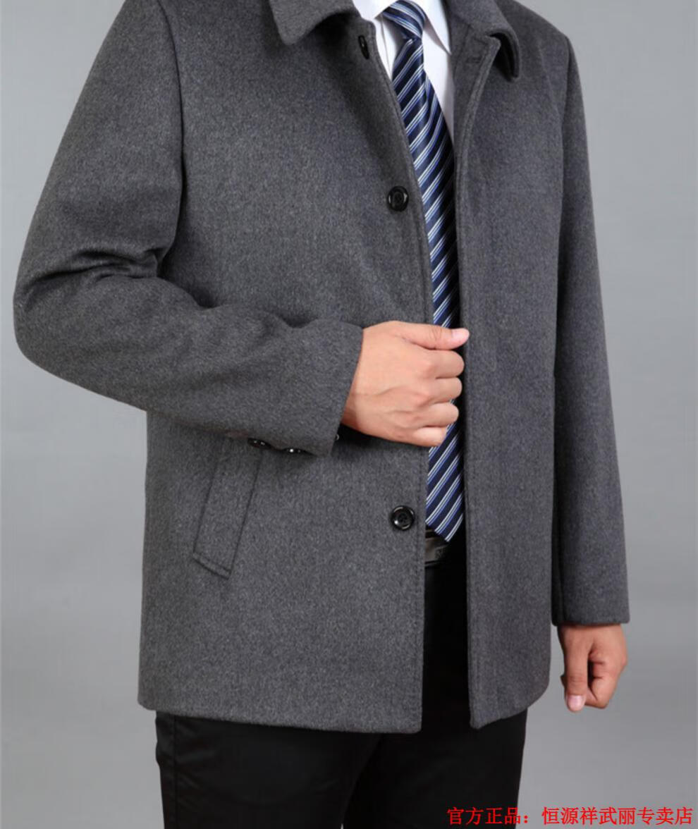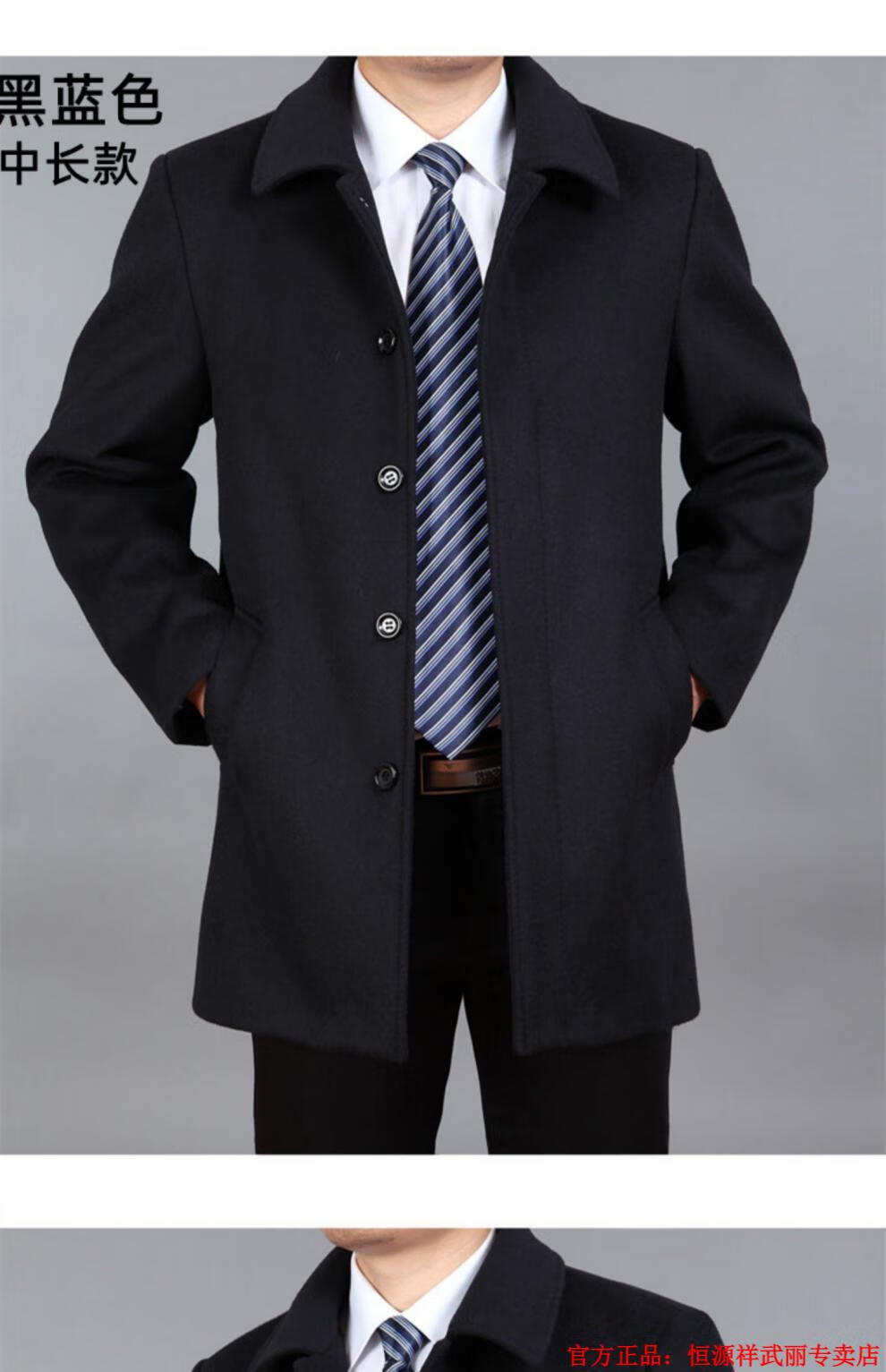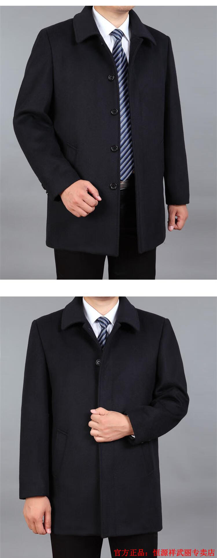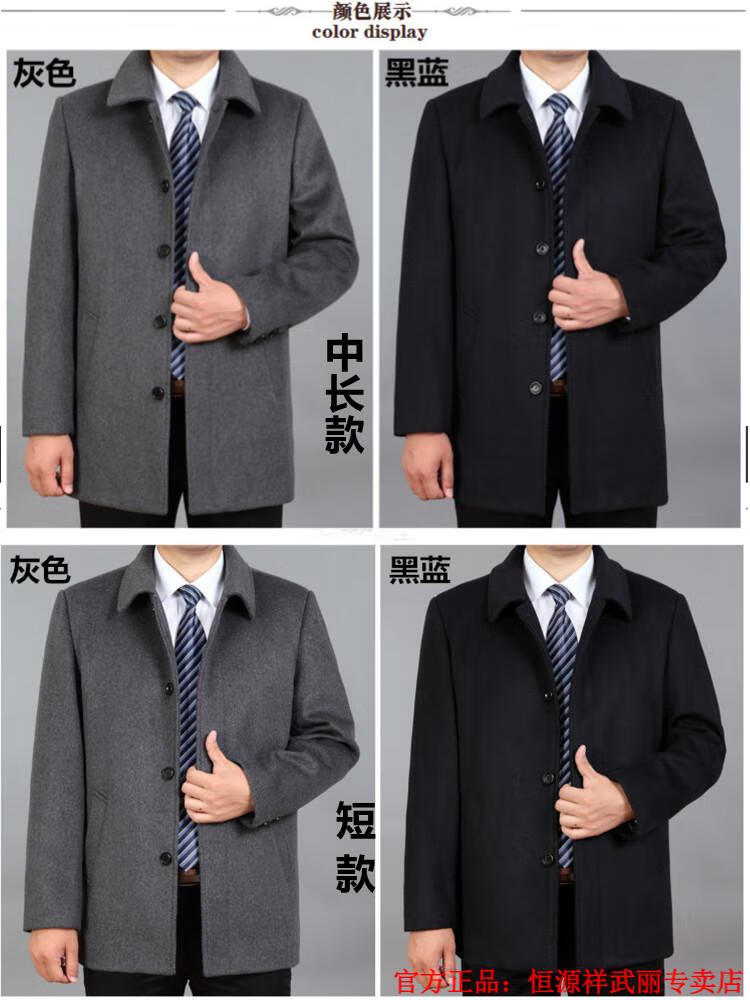 Hengyuanxiang woolen coat jacket men's autumn and winter short style thickened large size woolen woolen coat for middle-aged and elderly people short style black blue (no velvet) M 170 recommended 100-129 Jin Jin equals 0.5 kg