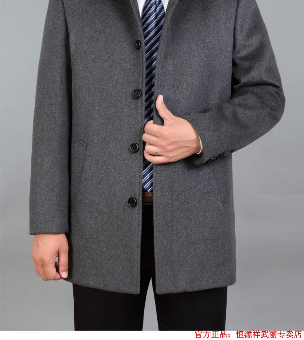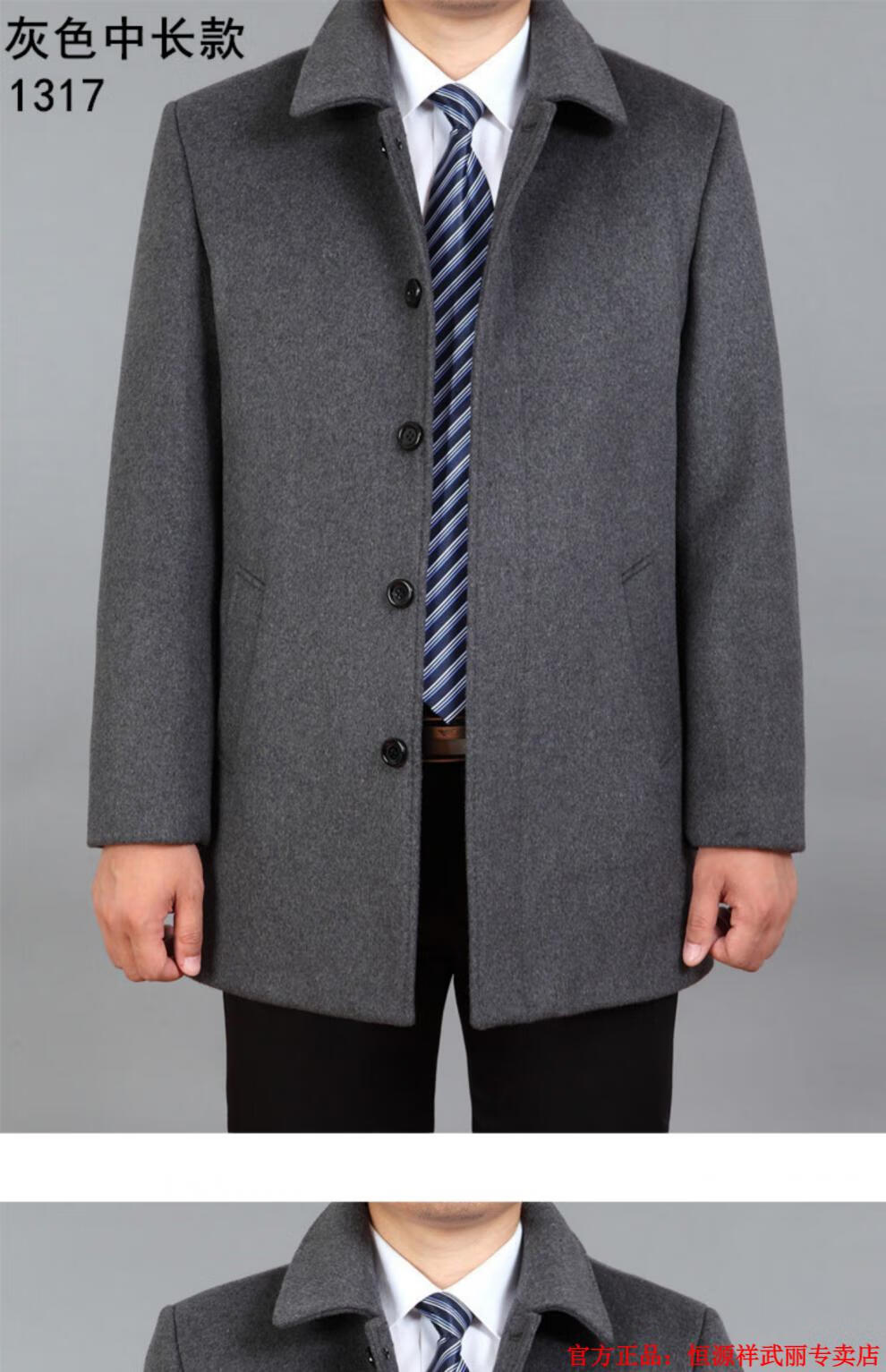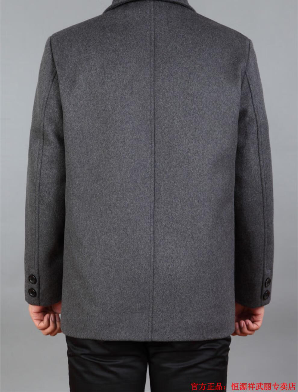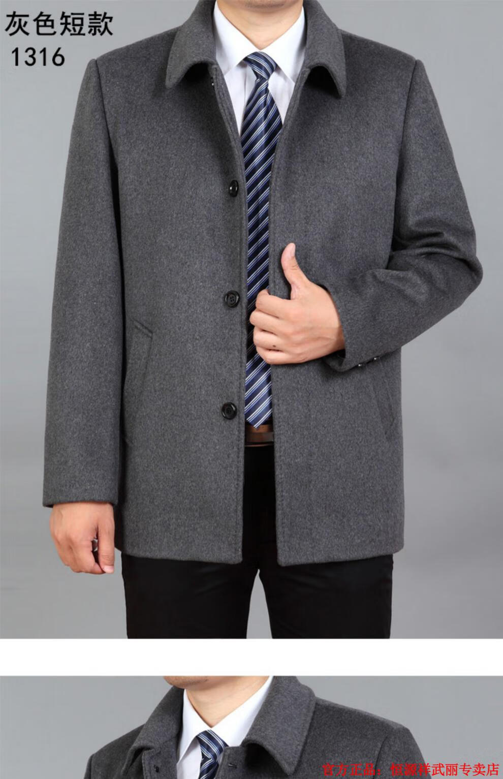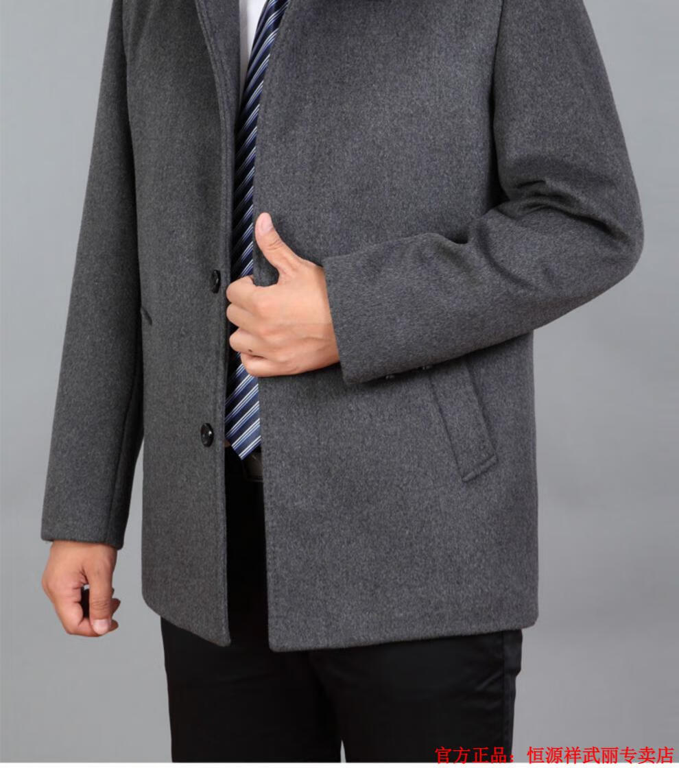 Hengyuanxiang woolen coat jacket men's autumn and winter short style thickened large size woolen woolen coat for middle-aged and elderly people short style black blue (no velvet) M 170 recommended 100-129 Jin Jin equals 0.5 kg