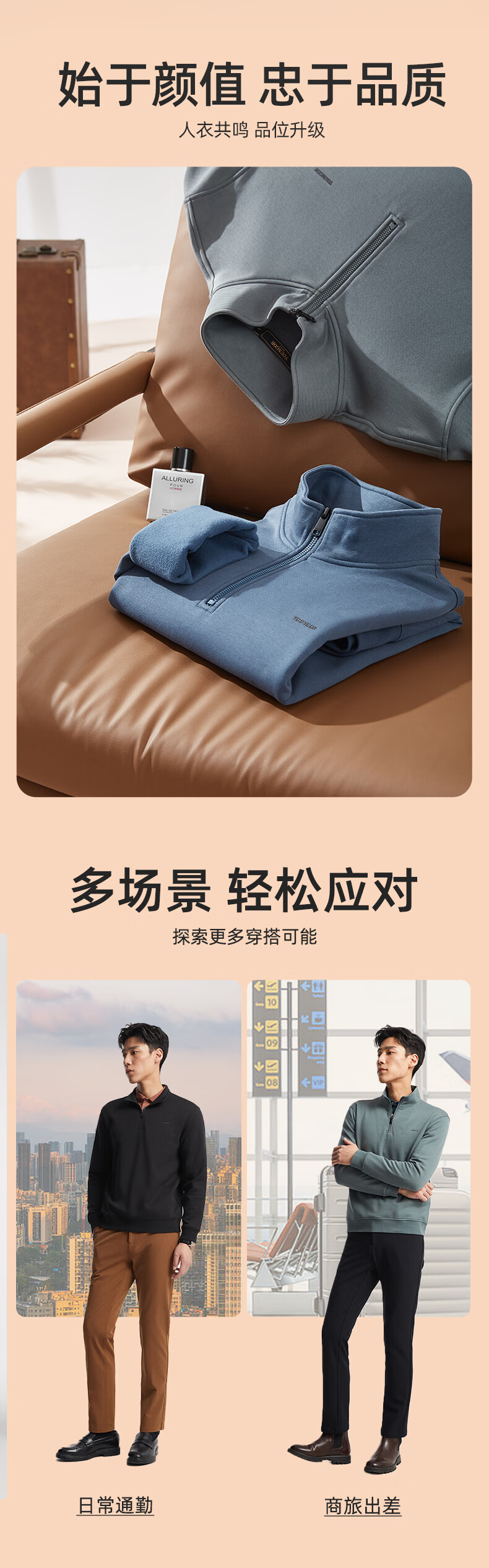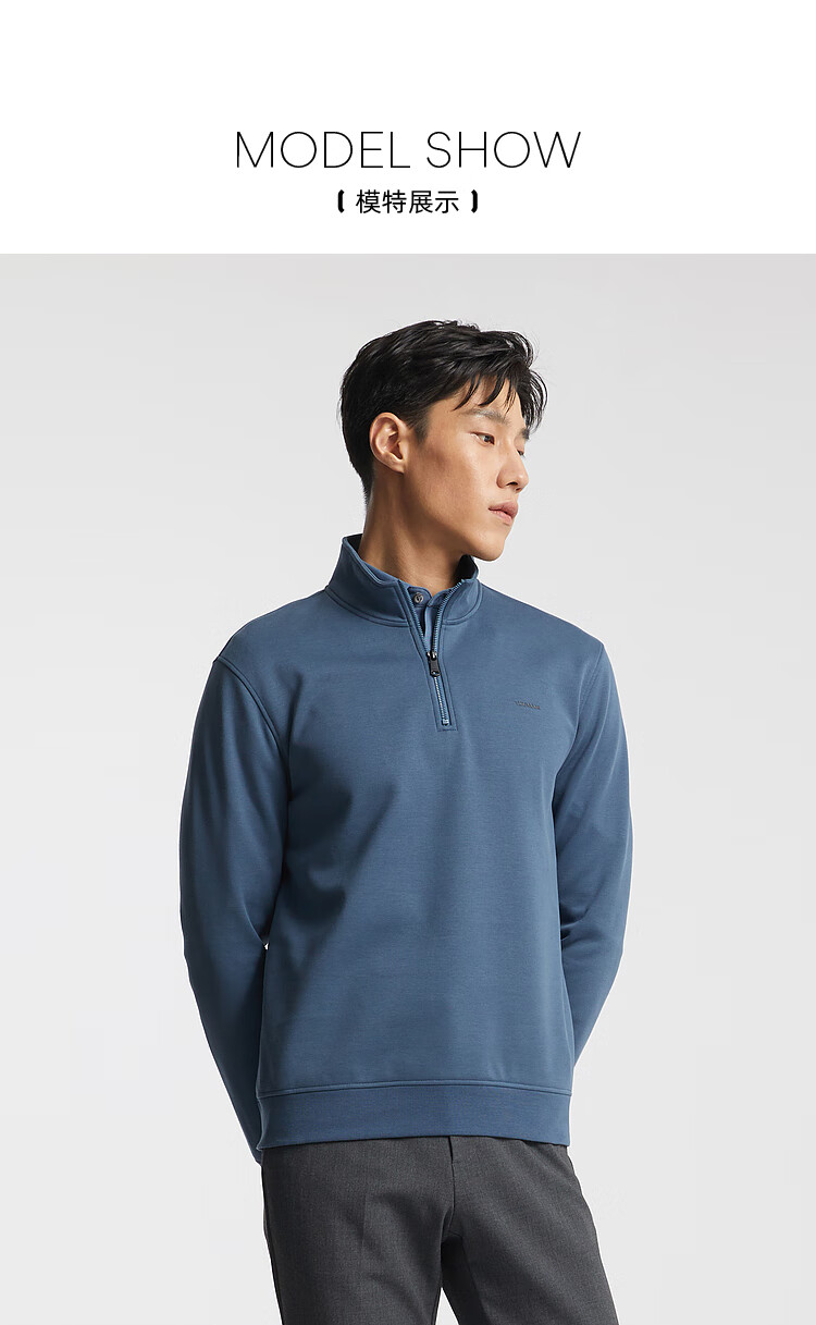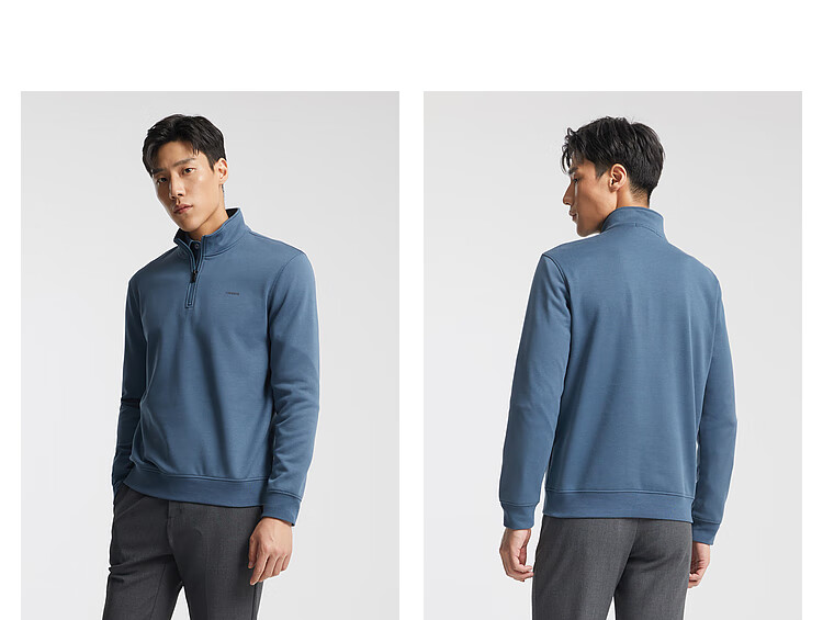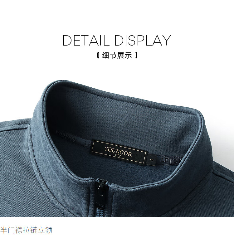 YOUNGOR knitted jacket men's half zipper half turtleneck knitted jacket volcanic rock thermal storage warmth and comfortable feel blue L