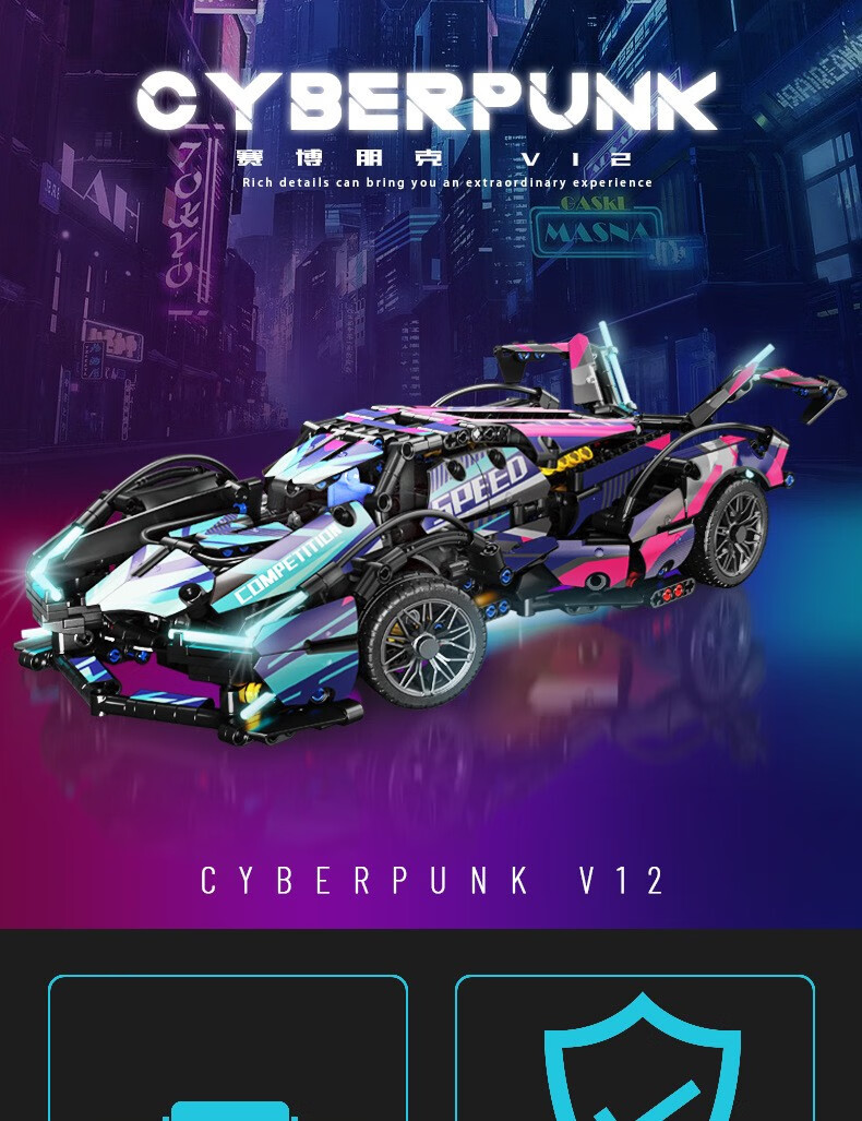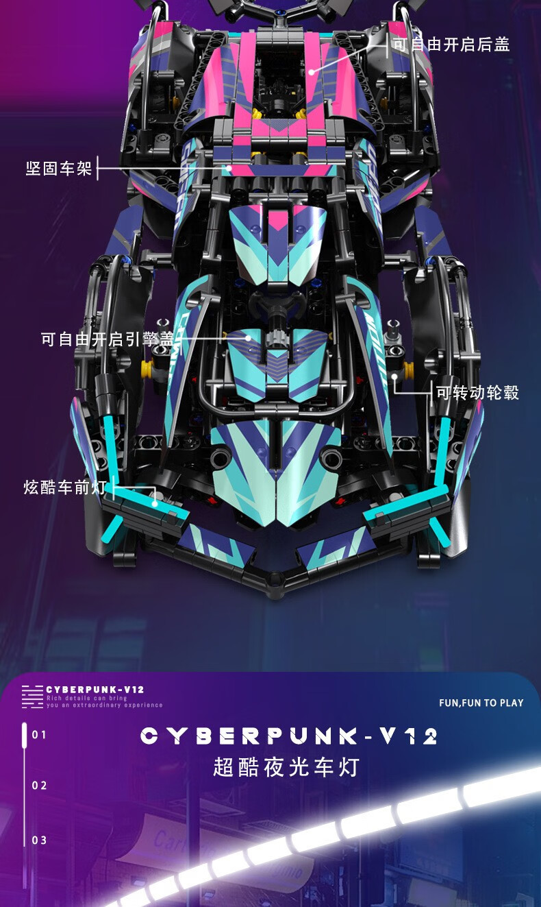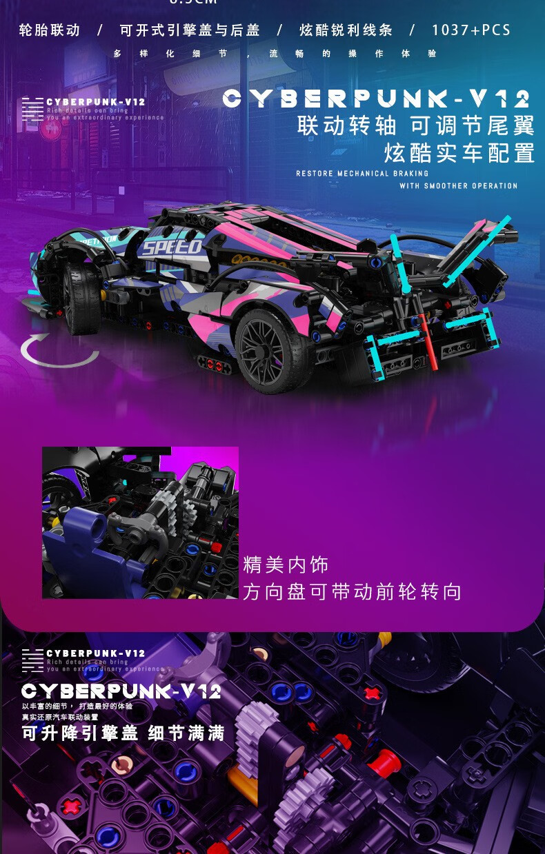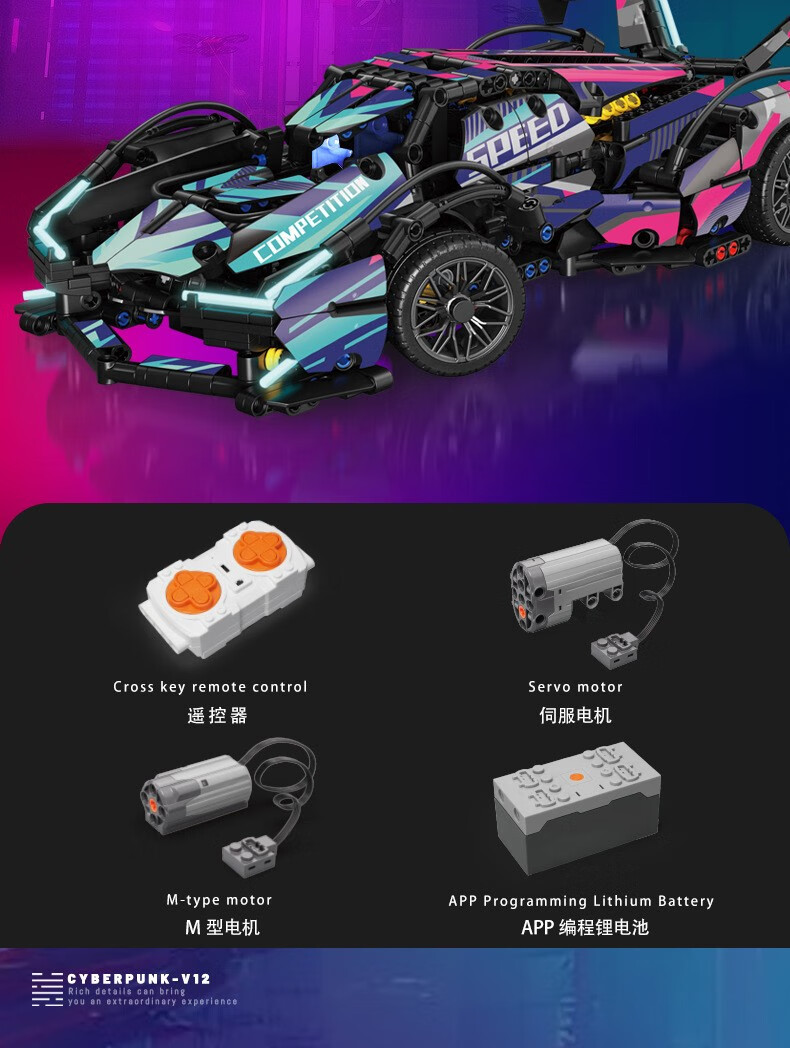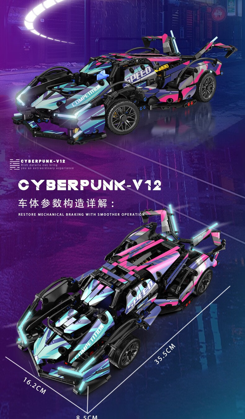 XKS building blocks assembled Lamborghini adult remote control sports car racing puzzle model for boys and girls children's day gift static version - Cyber V12 Lamborghini 1149 particles