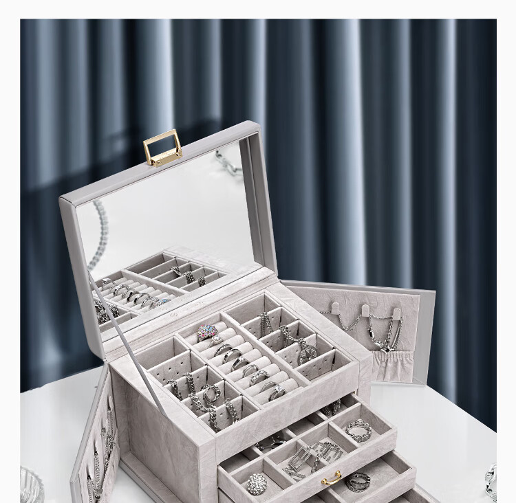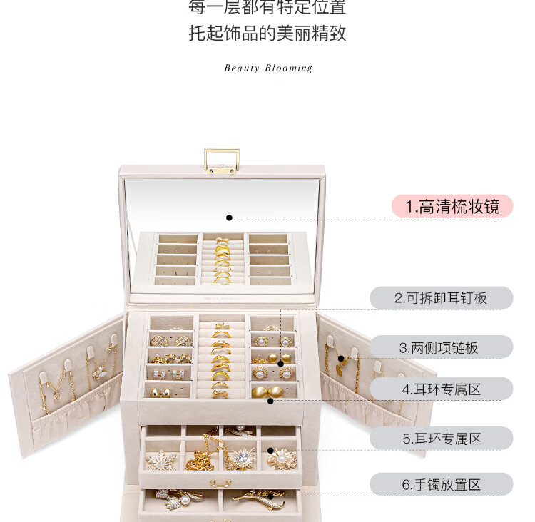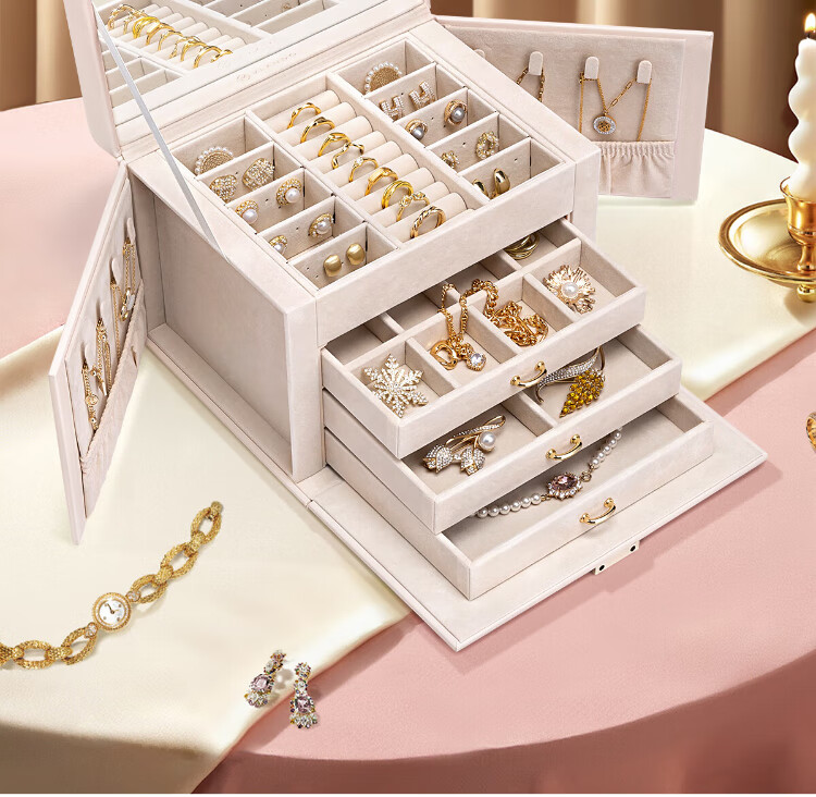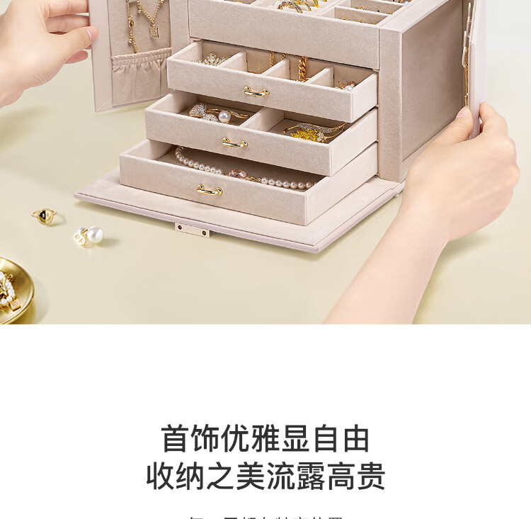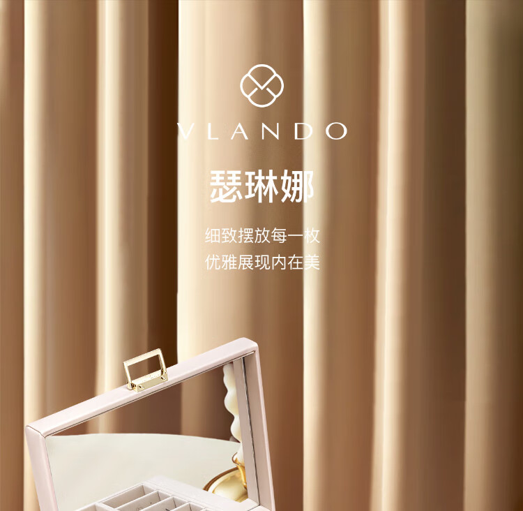 VLANDO jewelry box earrings jewelry necklace bracelet jewelry box storage box large capacity premium birthday gift apricot pink lamb pattern