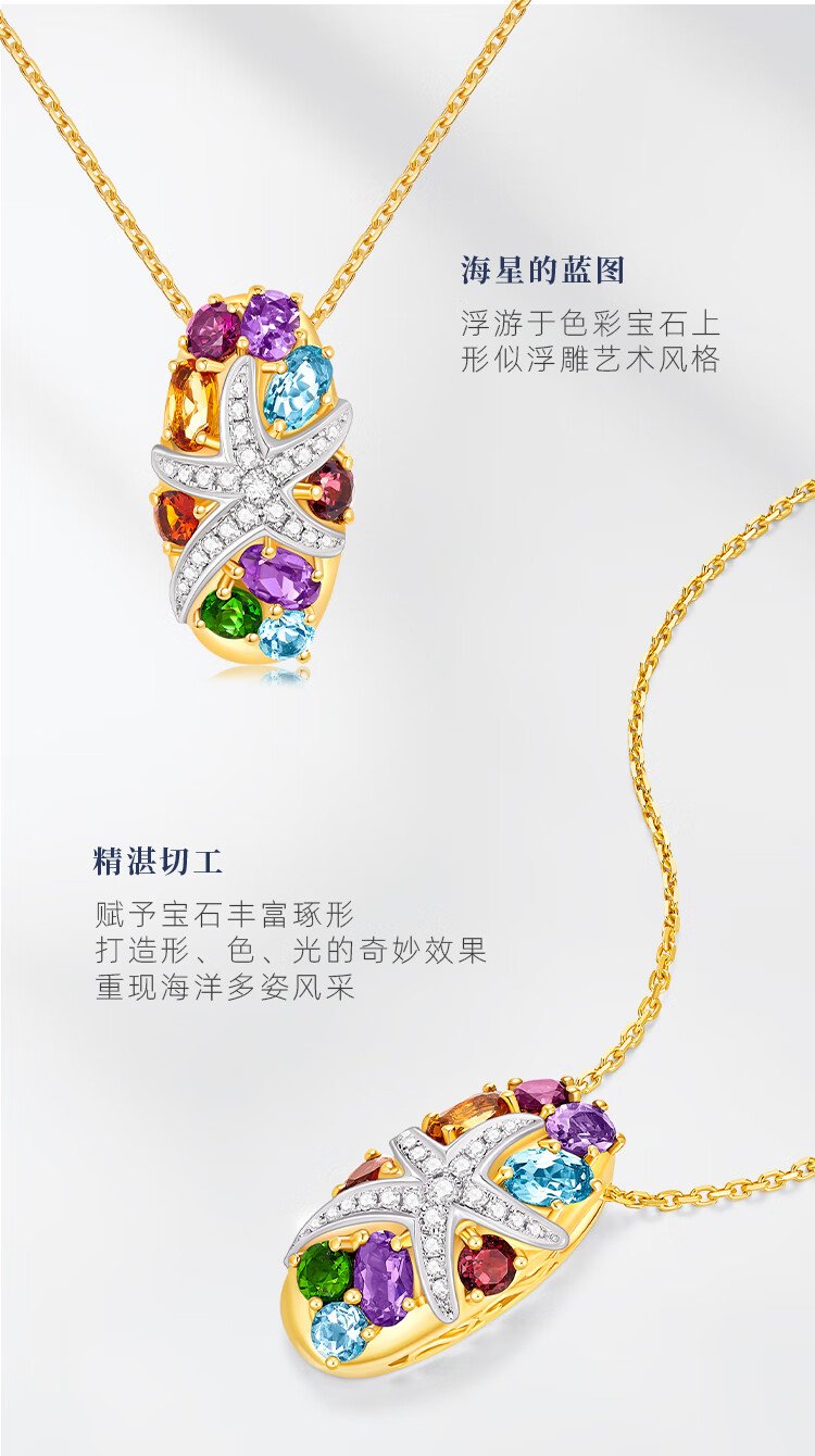 ENZO Ocean Series 18K Gold Colorful Gemstone Diamond Pendant for Women EZV2865 Silver Chain Birthday Gift EZV2865