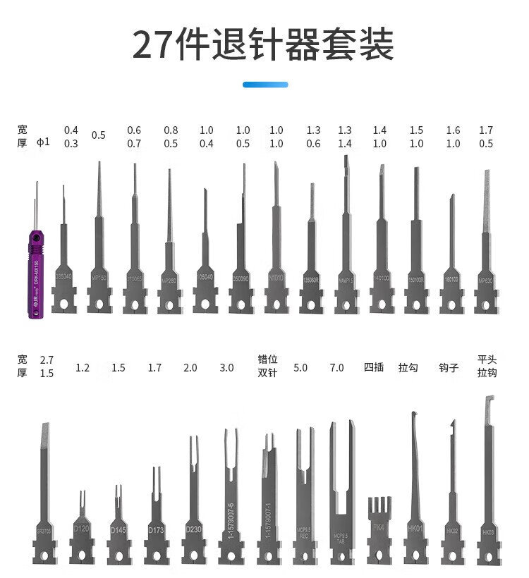 JRready Automotive Wiring Harness Terminal Pin Remover Computer EMU Computer Maintenance Plug Needle Remover Double-Prong Pin Picking Removal Tool (ST5254) Special-shaped Automobile Lamp Head Removal Three-piece Set