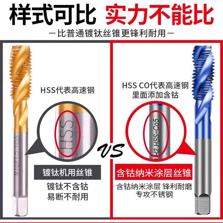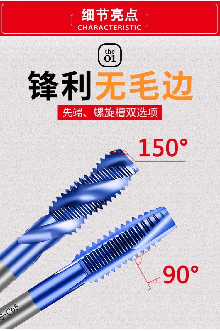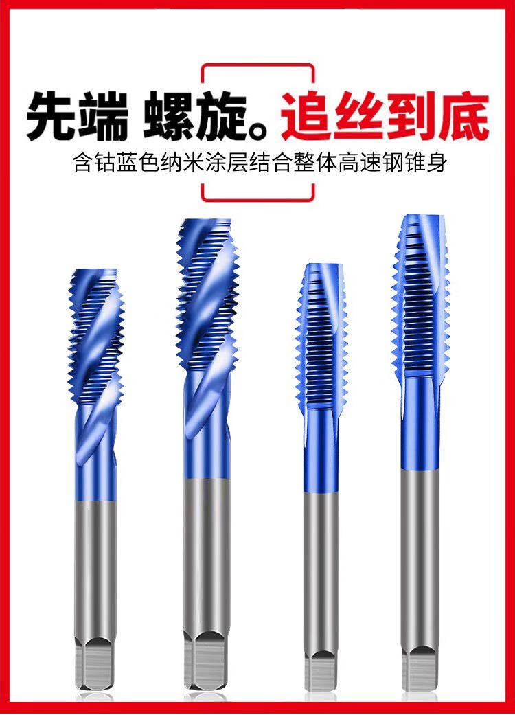 Customized cobalt blue nano tap tapping spiral tip machine tapping drill bit m2m3m4m5m6m8 stainless steel special M4x0.7 cobalt blue nano straight groove
