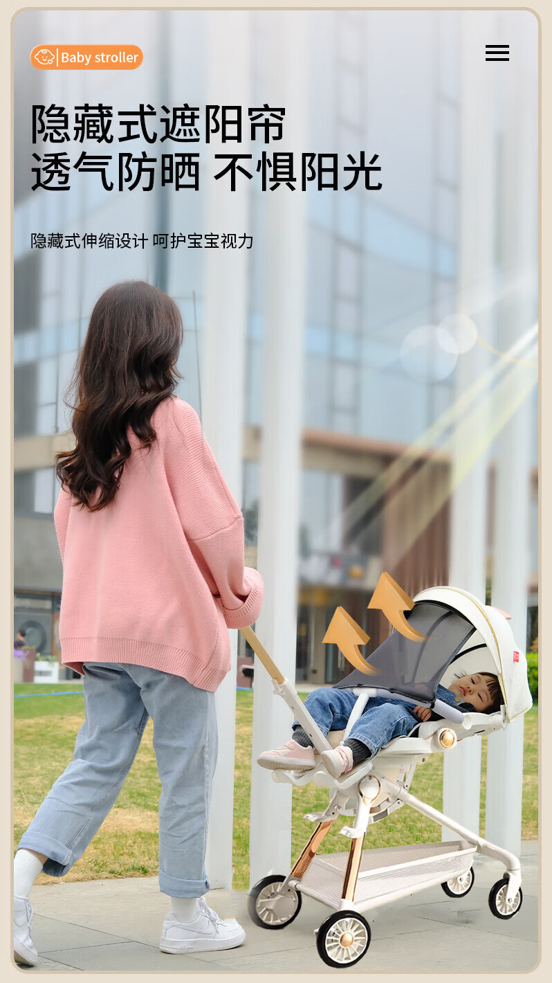 Dong Nailun baby stroller ultra-light foldable children's high-view baby walking artifact can sit and lie down two-way baby stroller two-way recline-luxury-rainbow installation-free