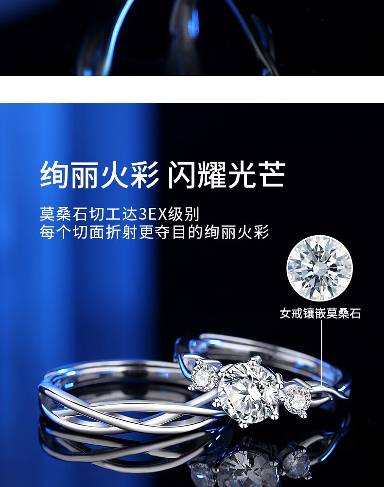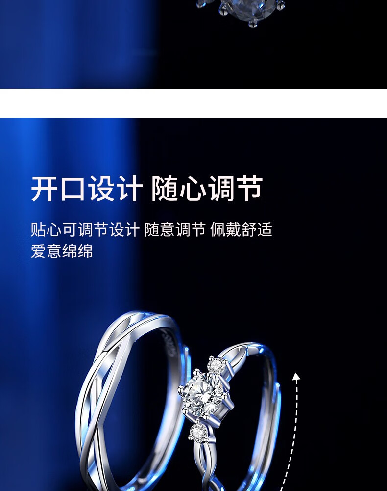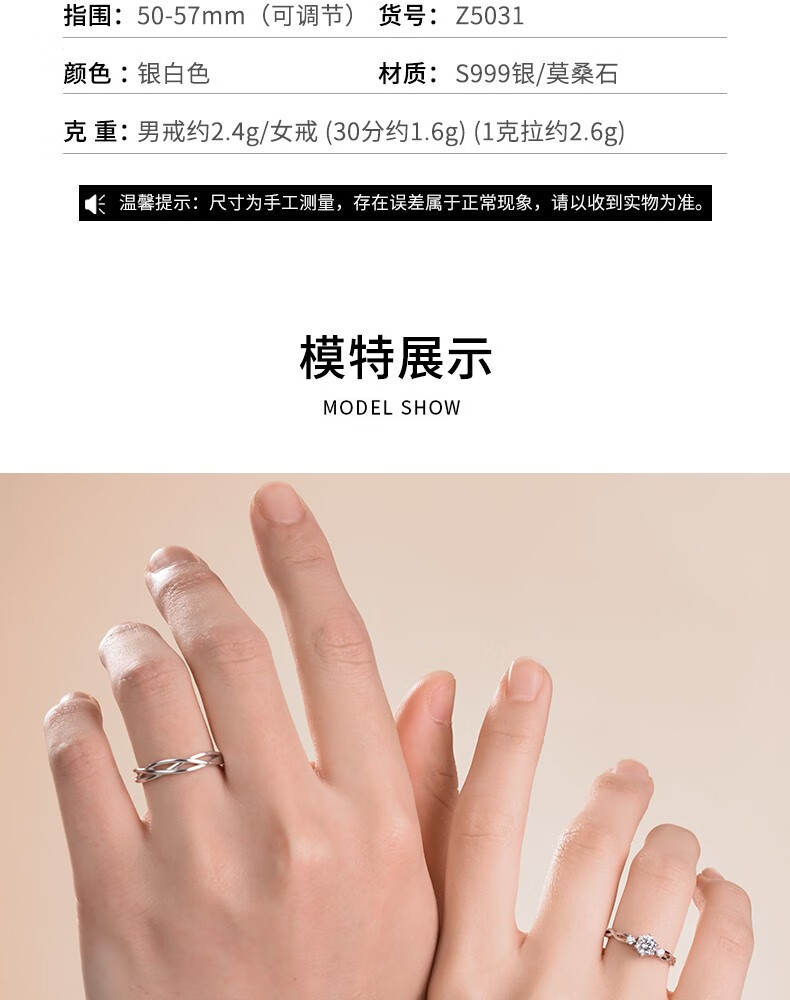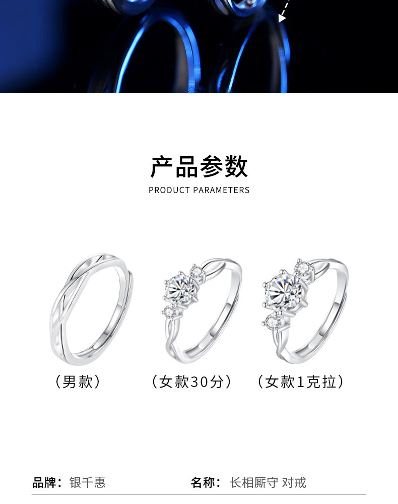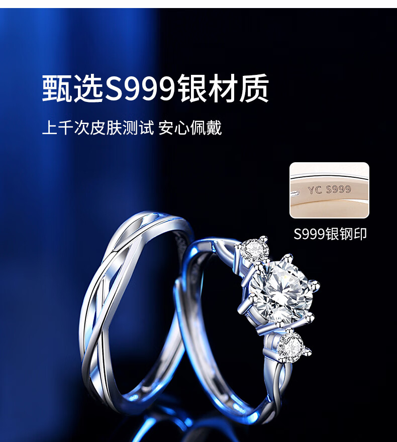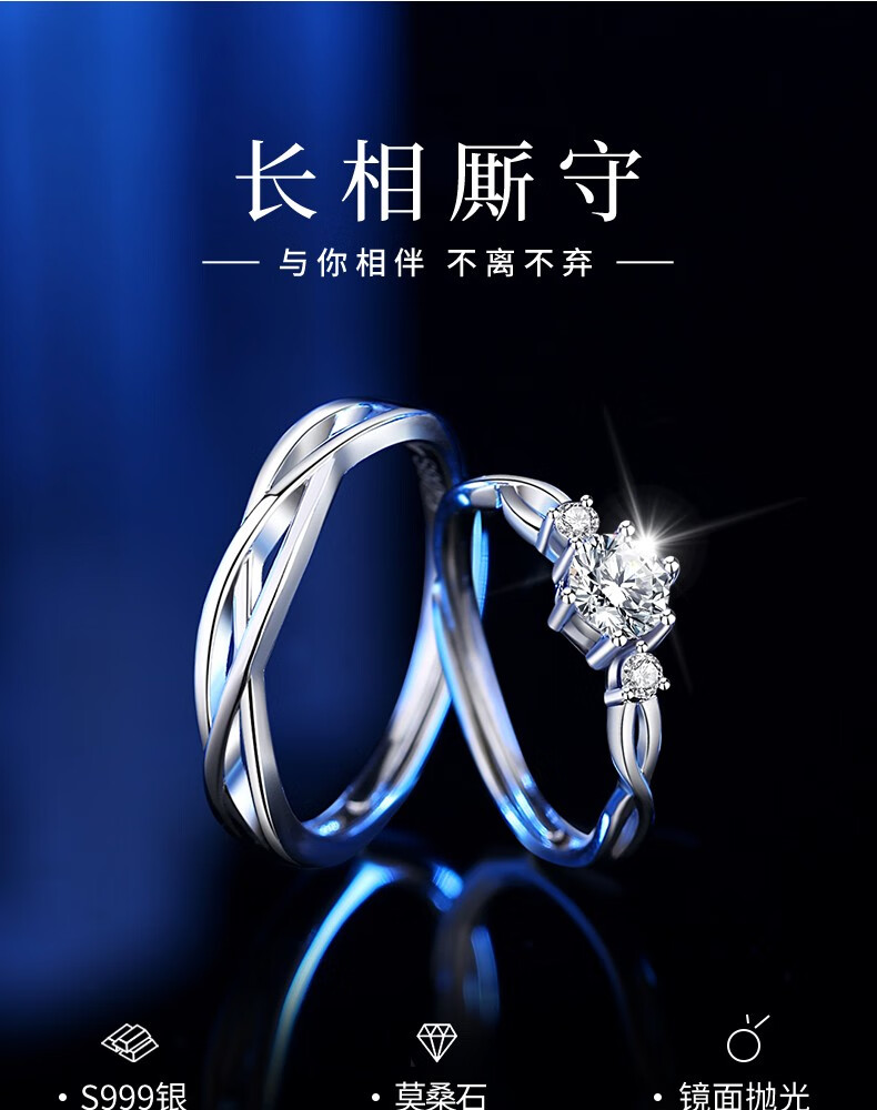 Ginqianhui 999 Pure Silver Moissanite Diamond Couple Rings, Long-lasting Love, Birthday Proposal, Valentine's Day Gift for Girlfriend, Stay Together Couple Rings + Seven Warehouse Delivery/Next Day Delivery, Comes with Jewelry Certificate, Free Engraving/True Love Promise Customization, Contact Customer Service