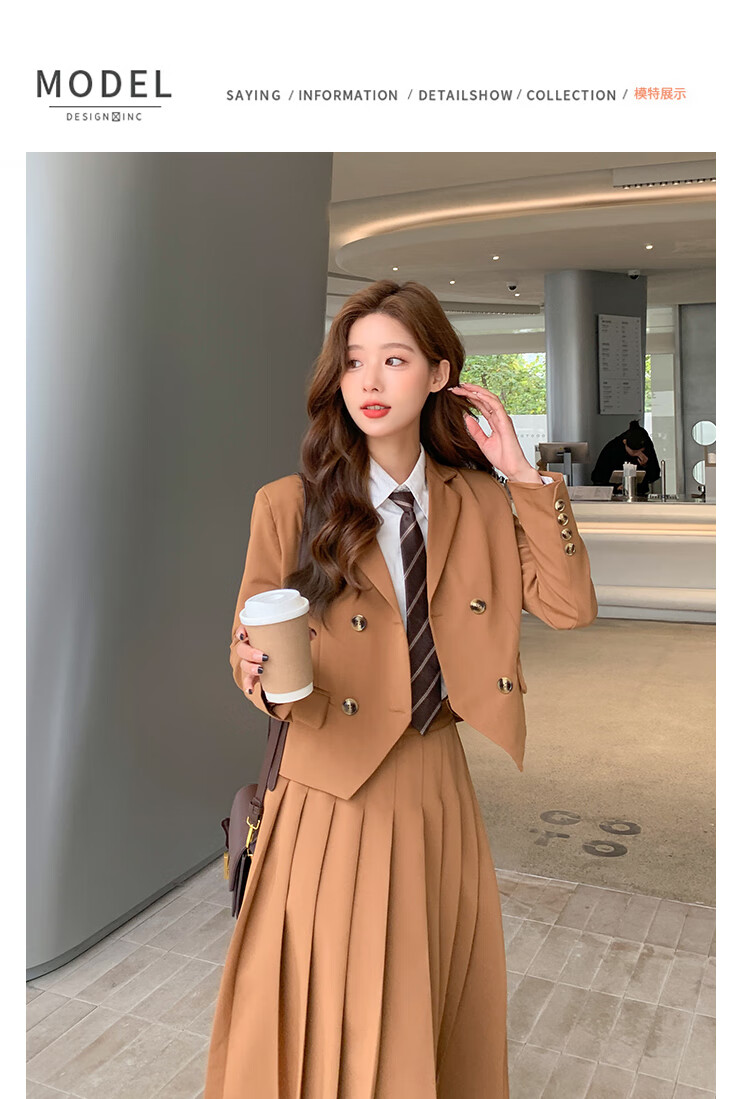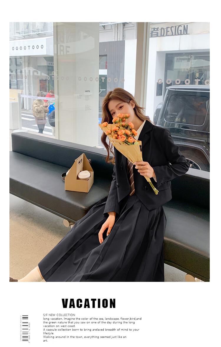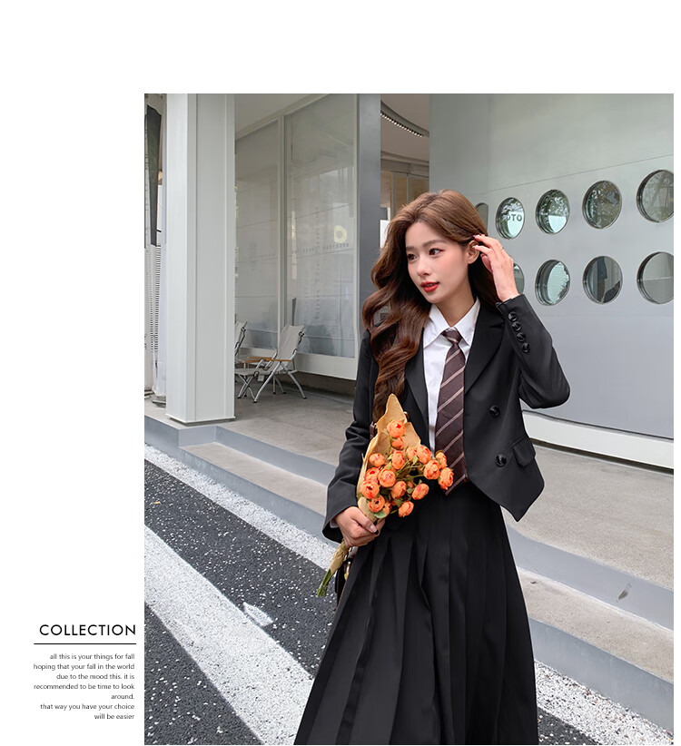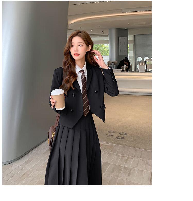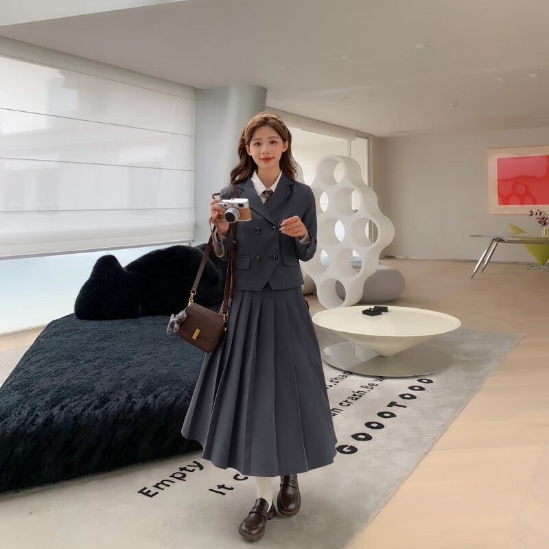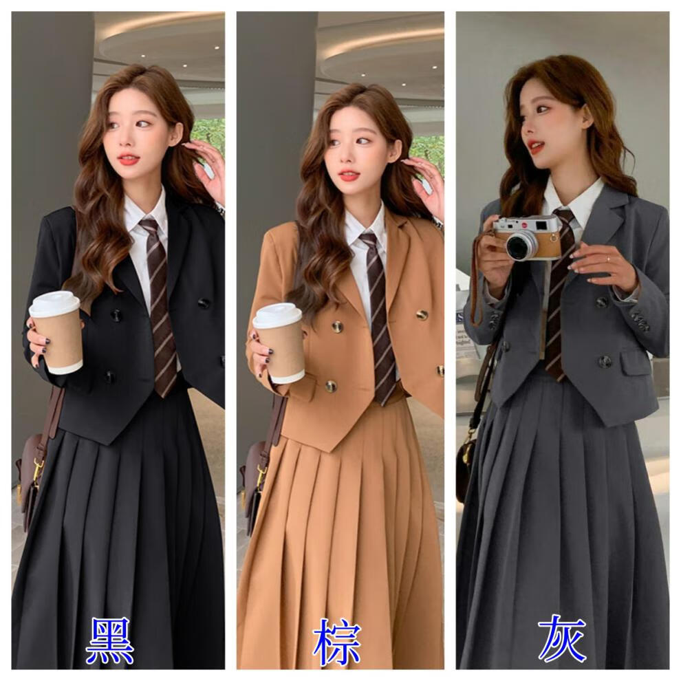 Customized (CECAI) college style gray suit for women 2025 spring new loose slim suit pleated skirt two-piece set black (suit + shirt + skirt) S