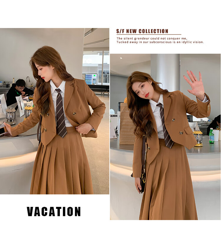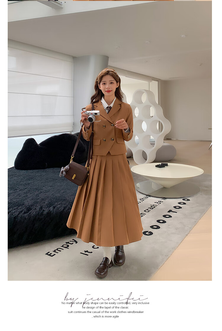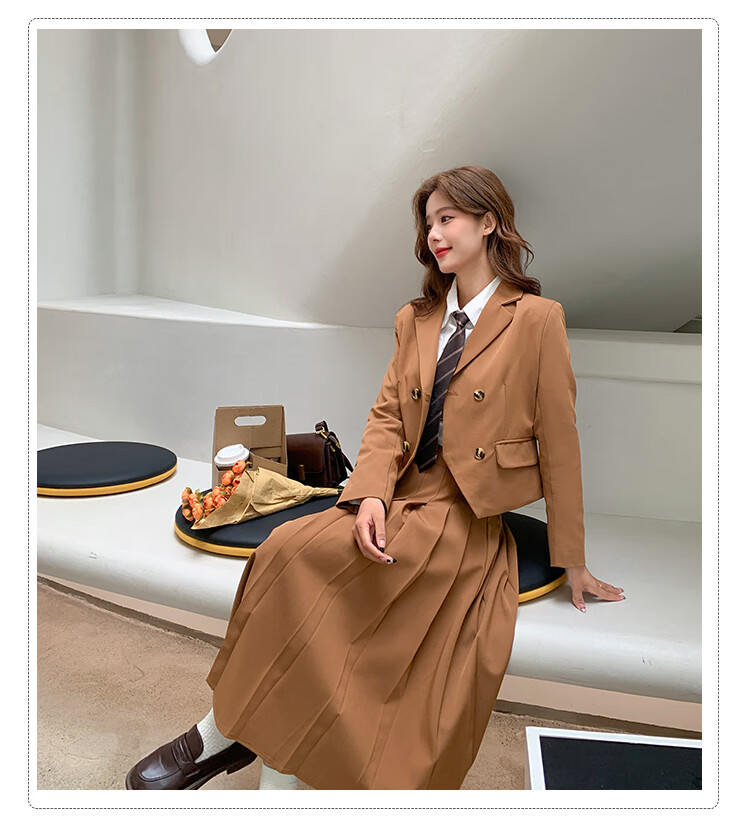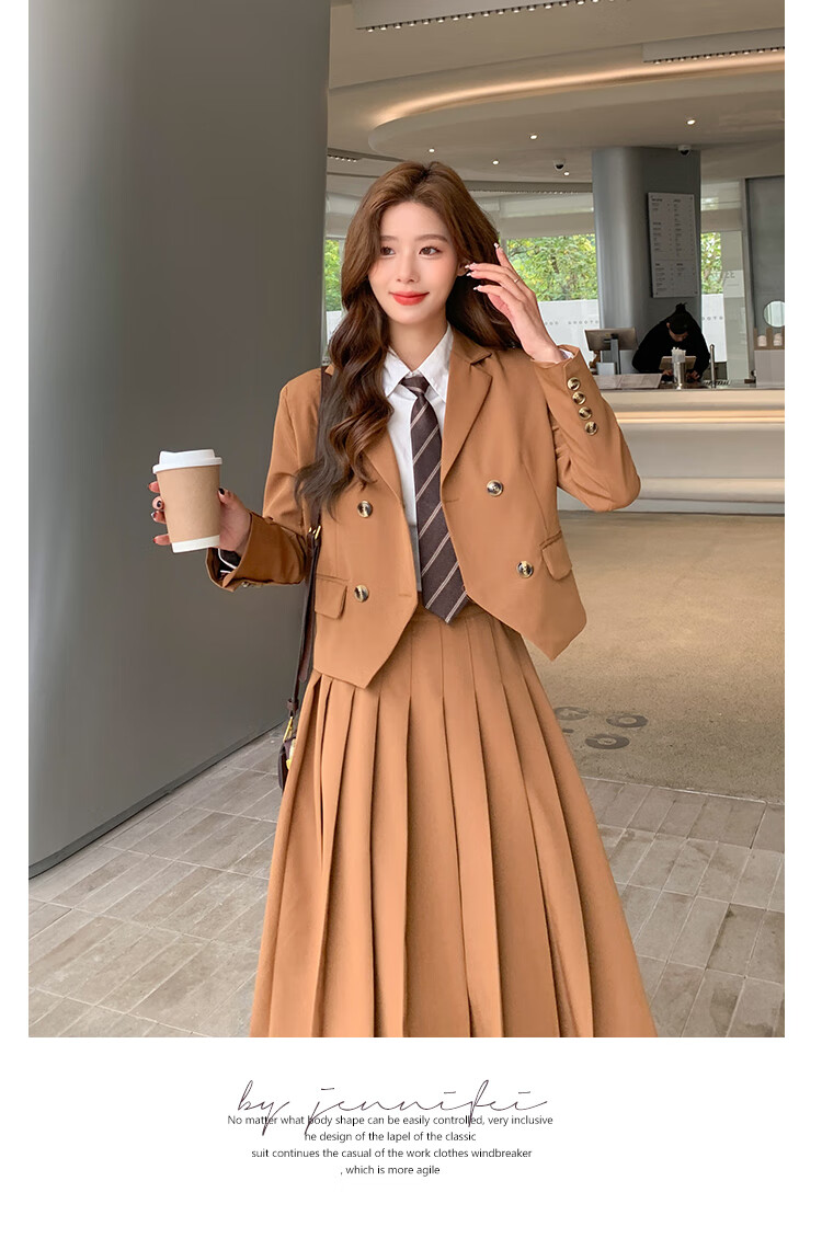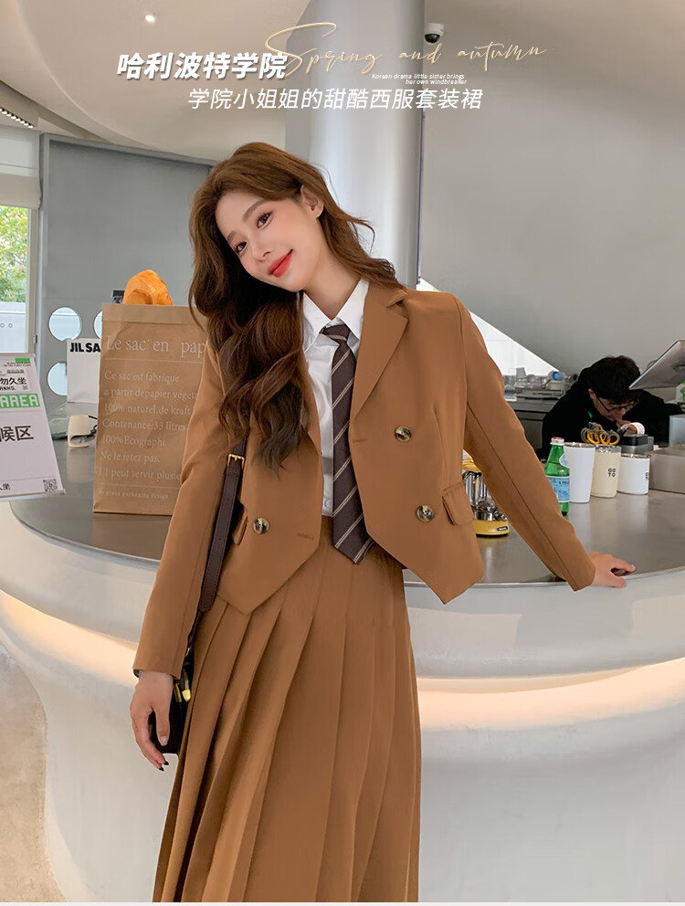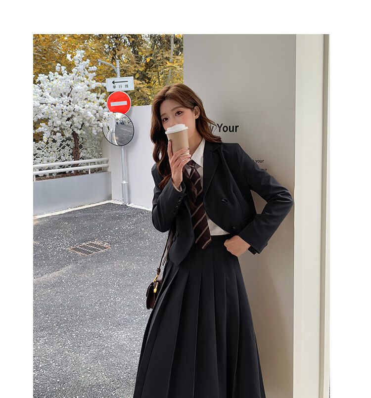 Customized (CECAI) college style gray suit for women 2025 spring new loose slim suit pleated skirt two-piece set black (suit + shirt + skirt) S
