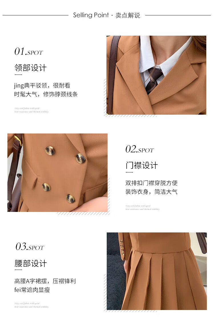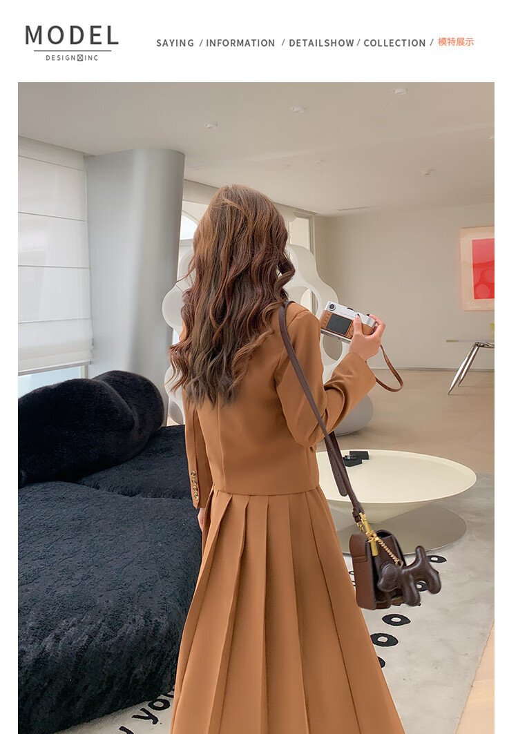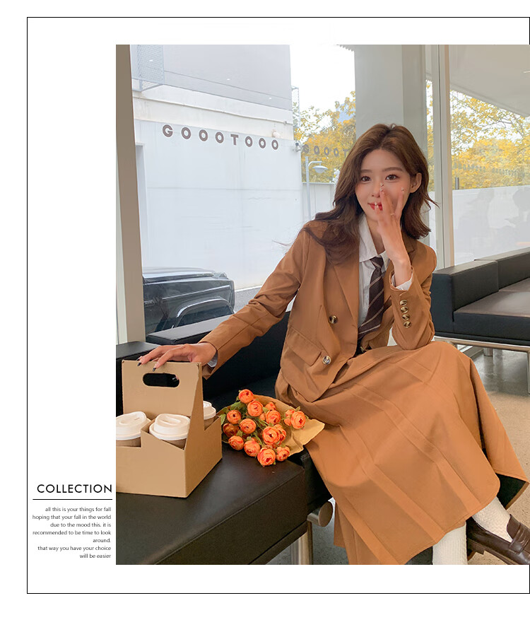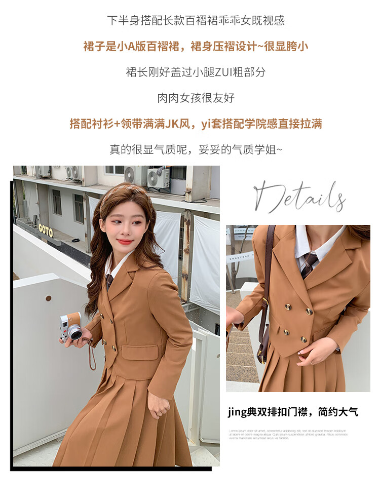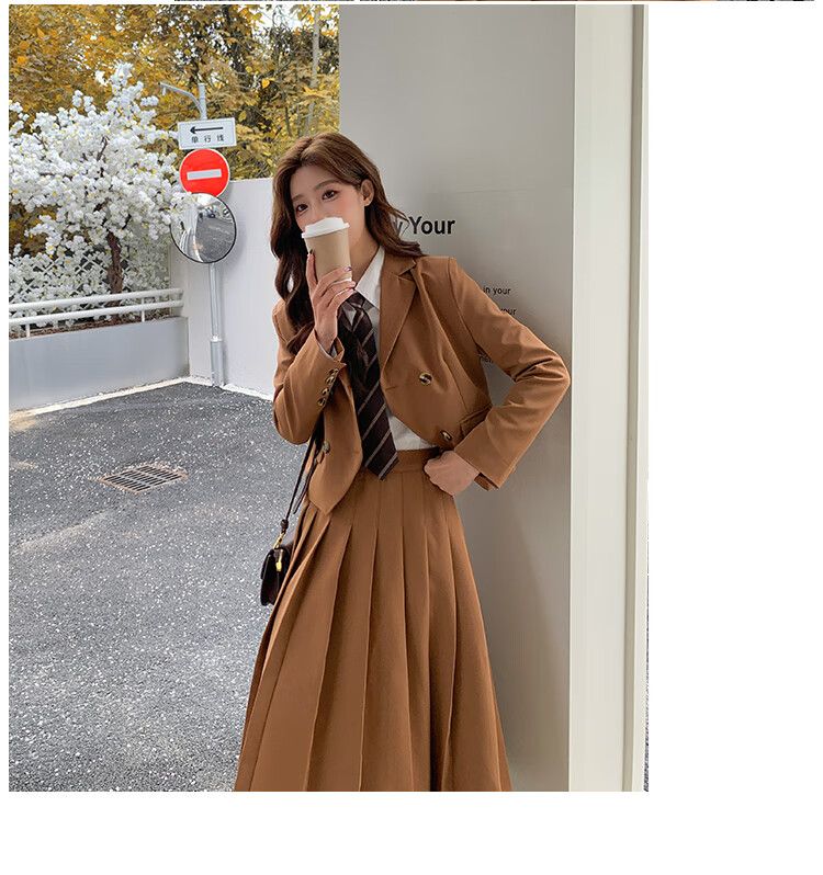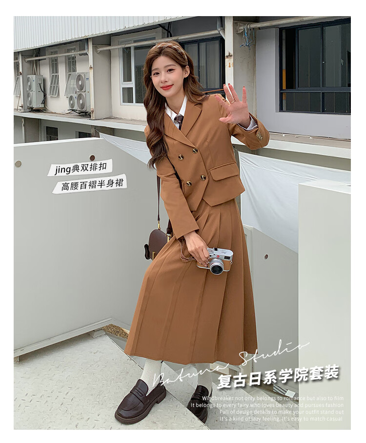Customized (CECAI) college style gray suit for women 2025 spring new loose slim suit pleated skirt two-piece set black (suit + shirt + skirt) S