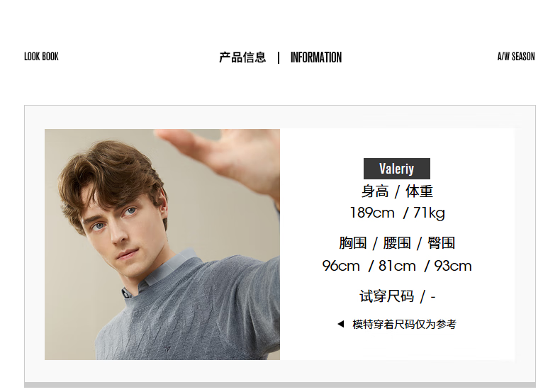 China (cm) 165 / 88-90 170 / 96-98 175 / 108-110 180 / 118-122 185 / 126-130
