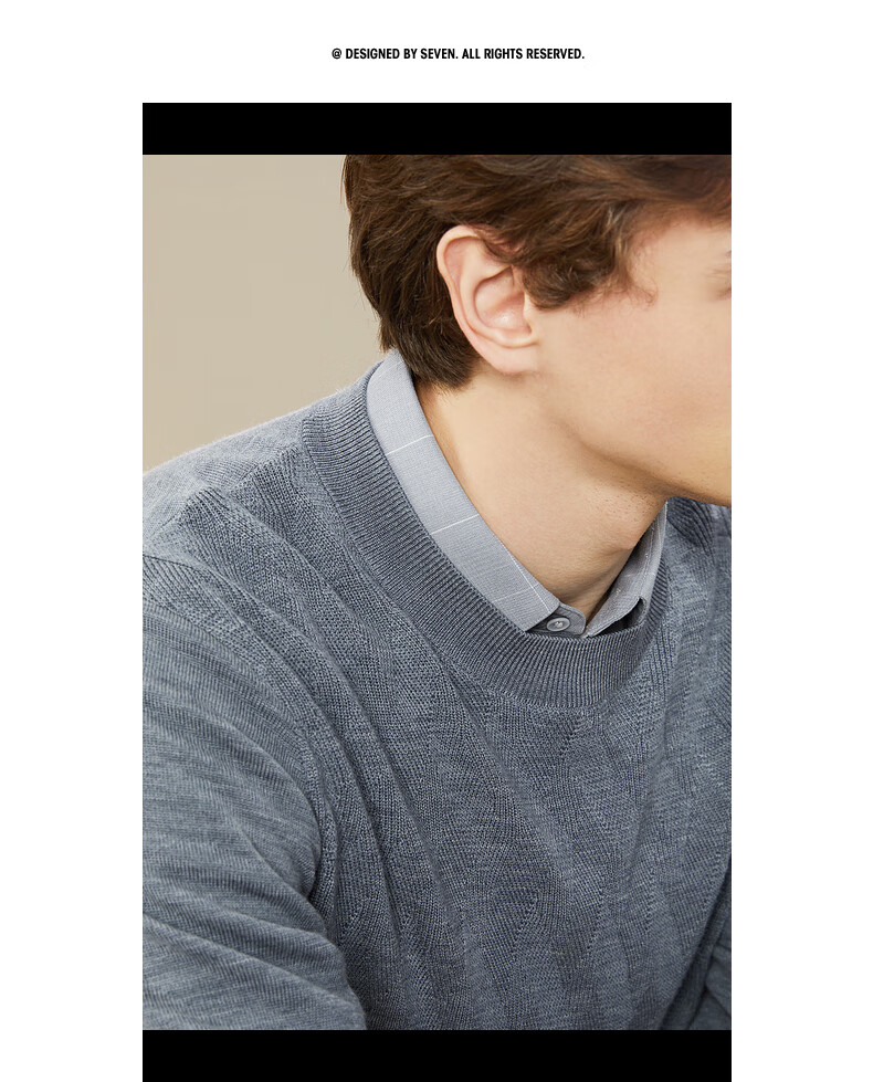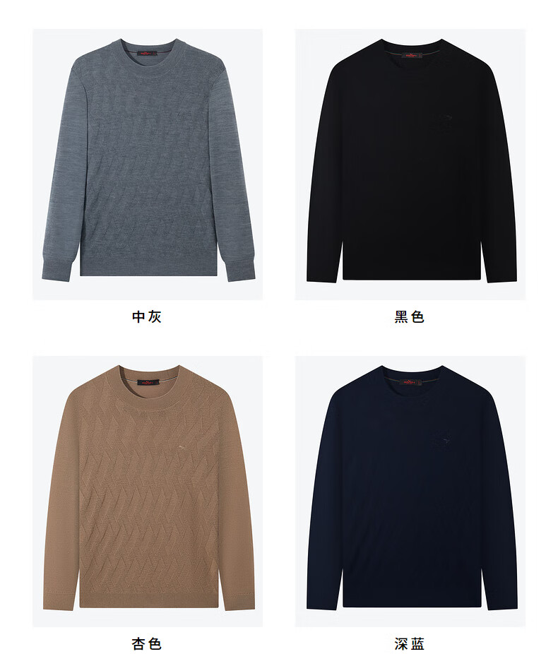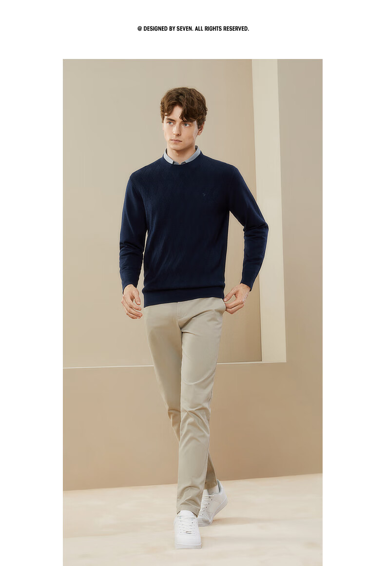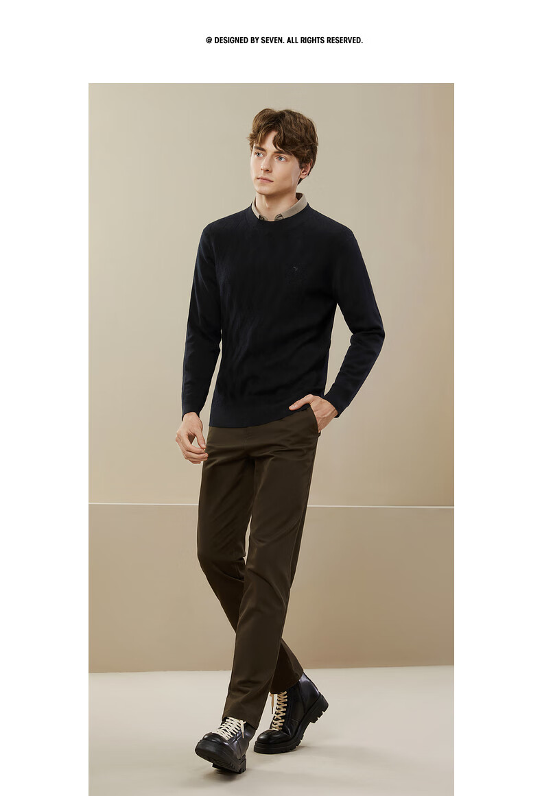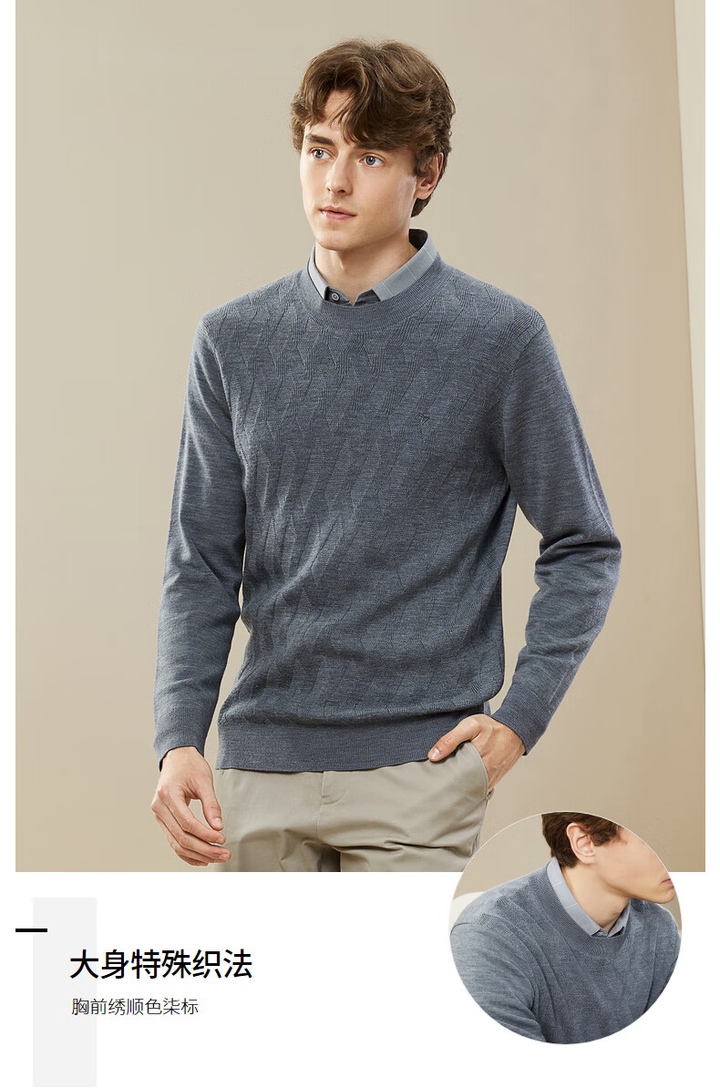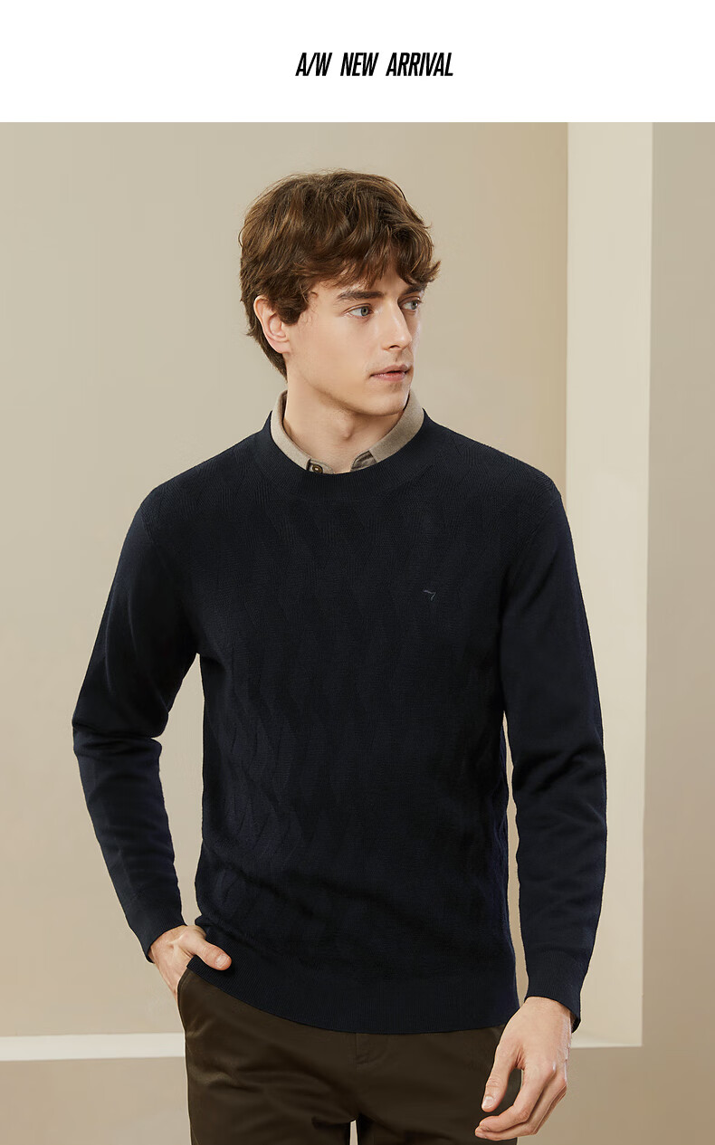 Qipai Men's Wool Sweater Spring and Summer Casual Versatile Round Neck Warm Sweater Pure Wool 1JY70070 Dark Blue S (160)