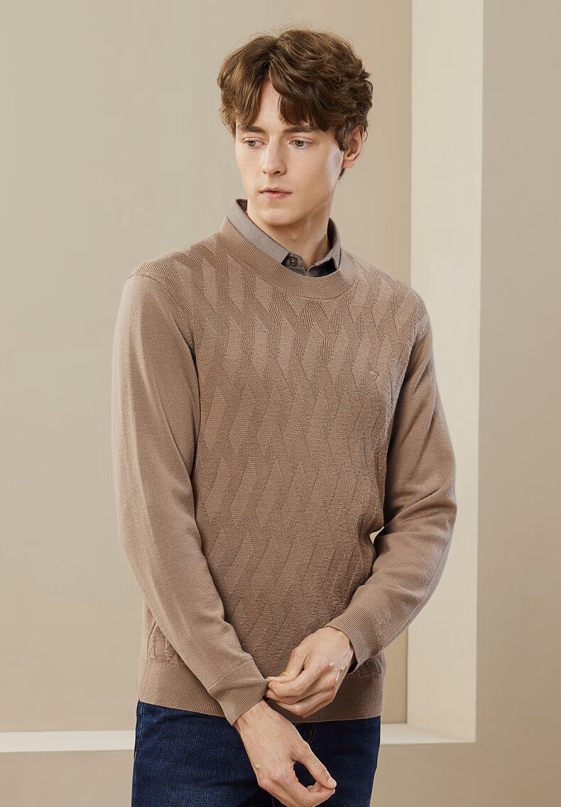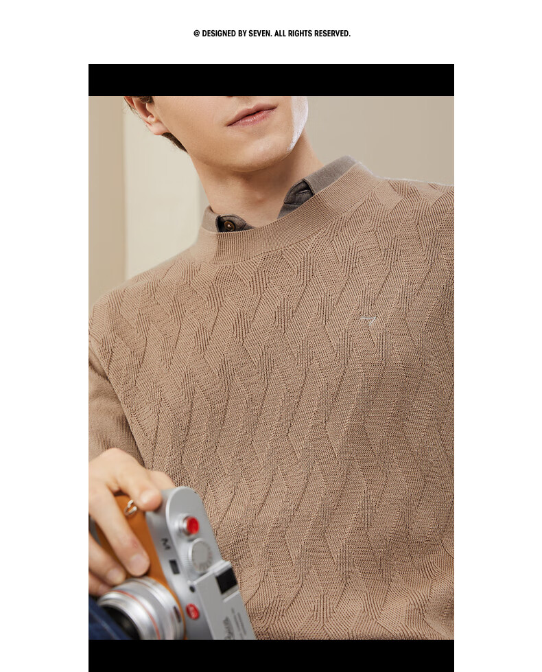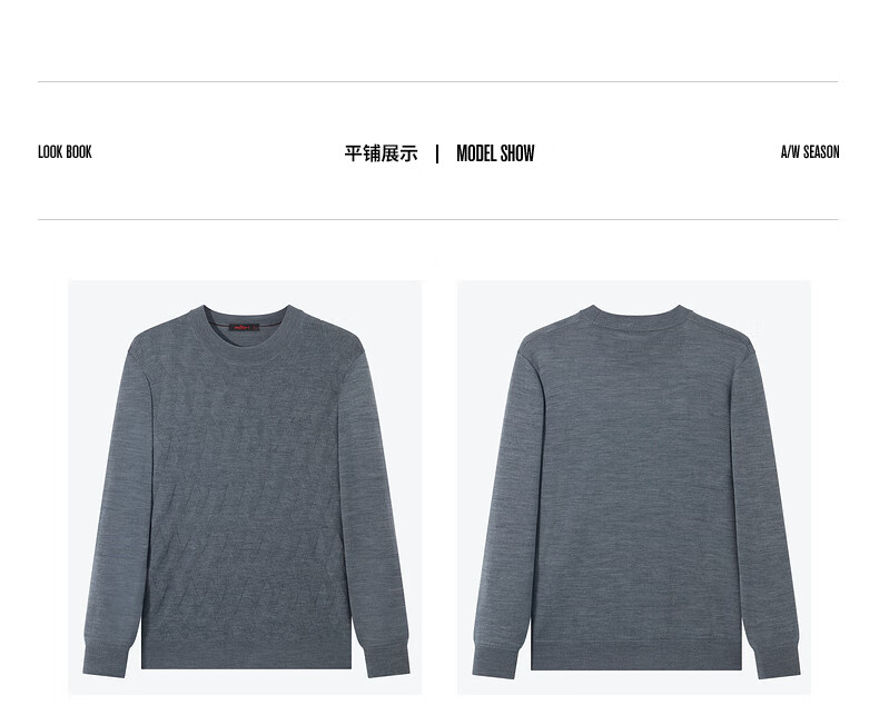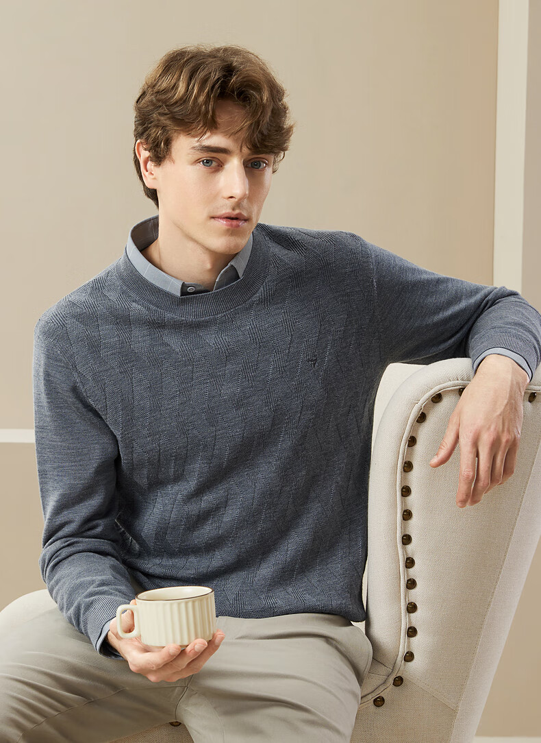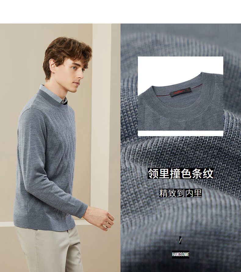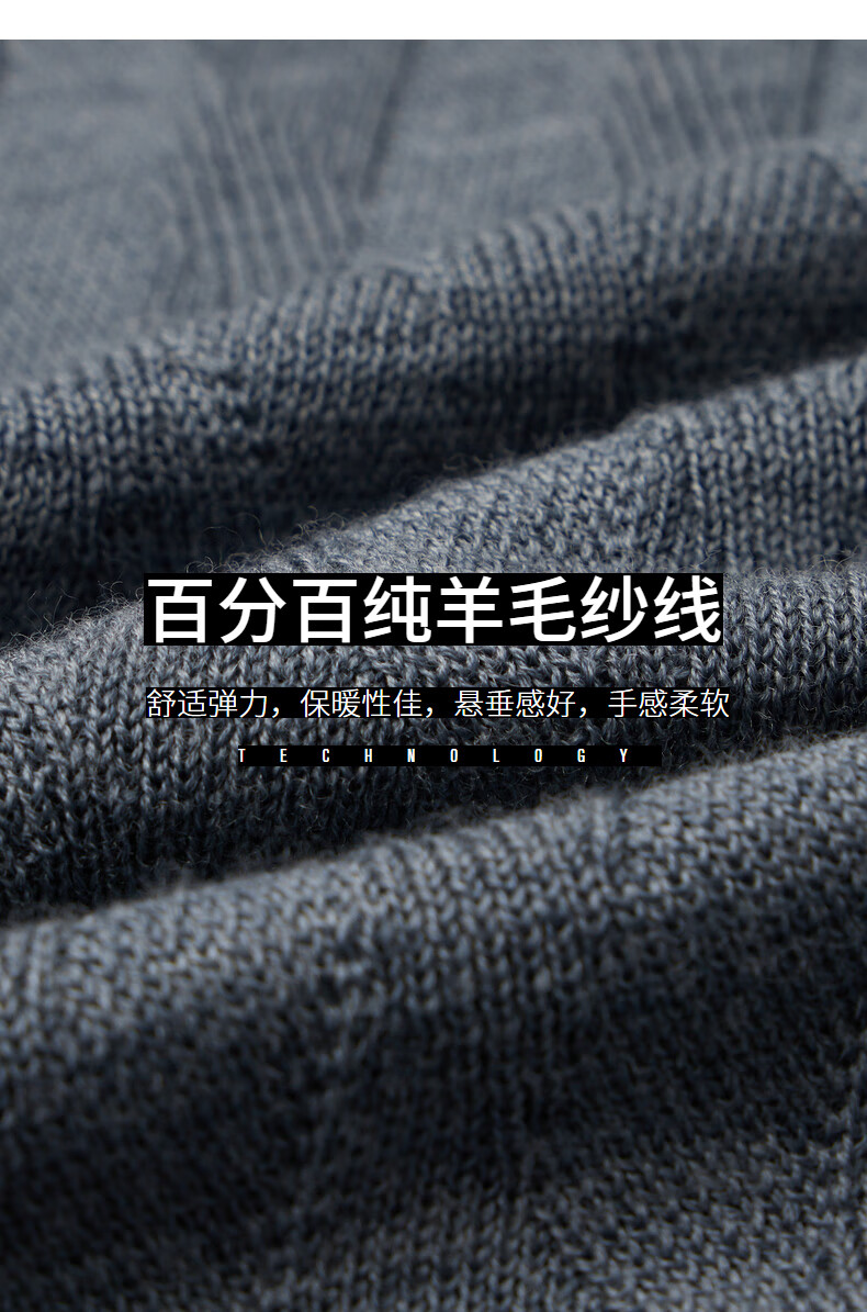Qipai Men's Wool Sweater Spring and Summer Casual Versatile Round Neck Warm Sweater Pure Wool 1JY70070 Dark Blue S (160)