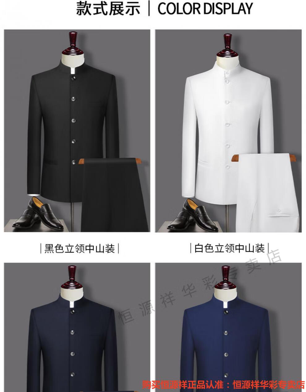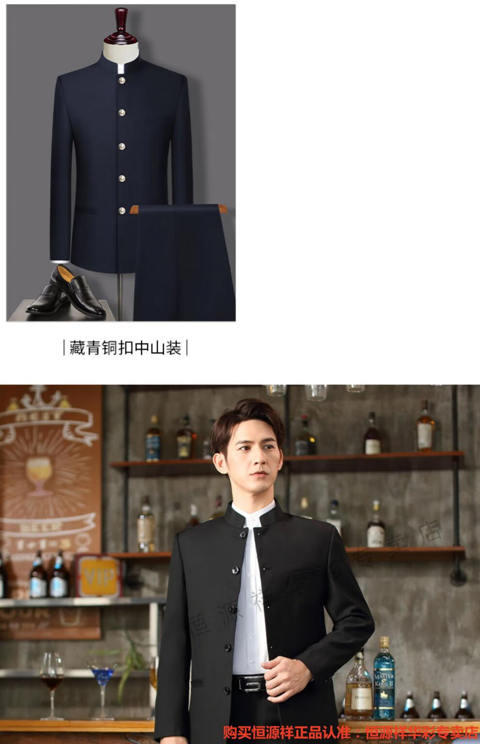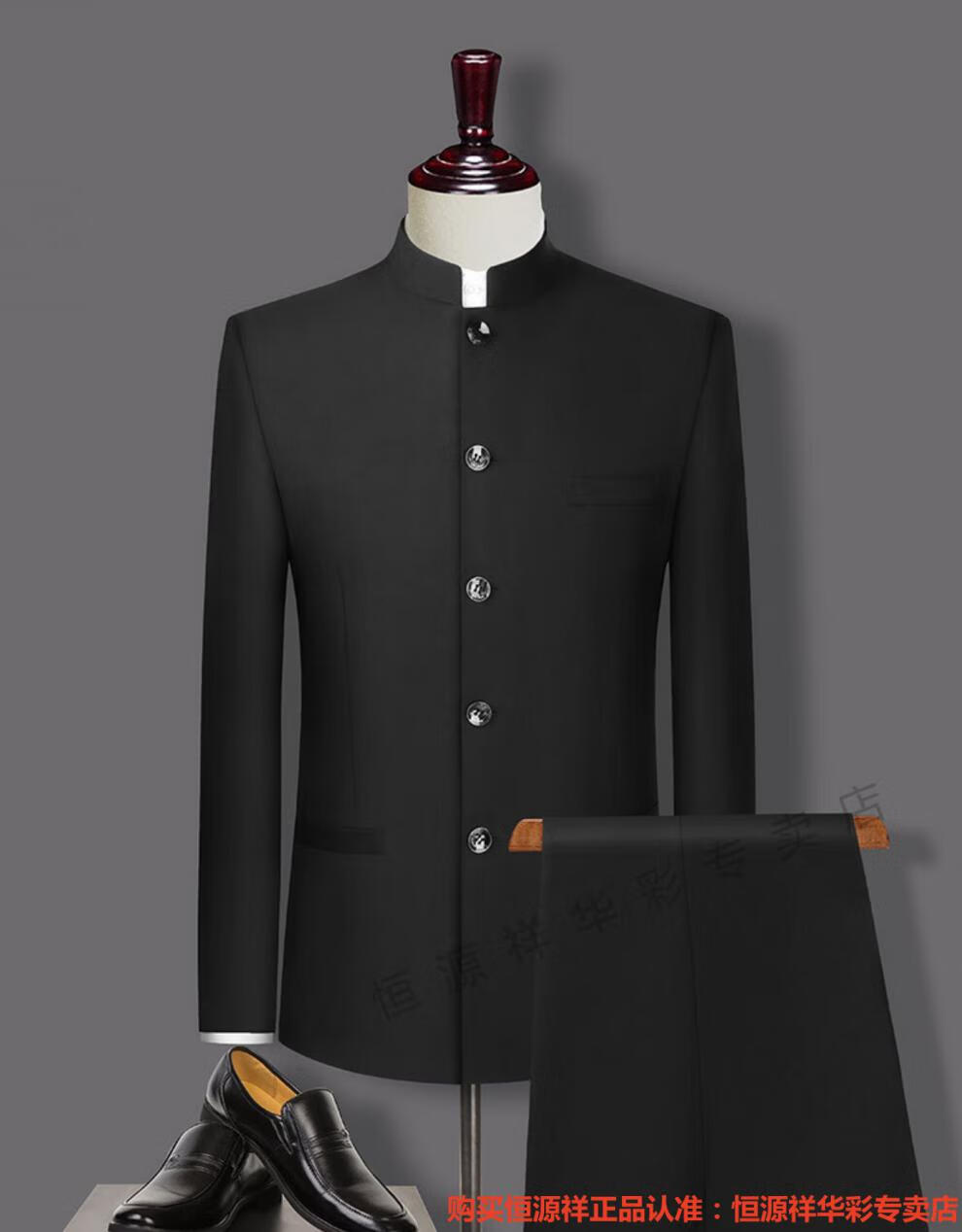 Hengyuanxiang Chinese tunic suit men's slim suit Chinese stand collar Chinese style Chinese suit wedding banquet groom and groomsmen dress black M 170 110 to 125 weight