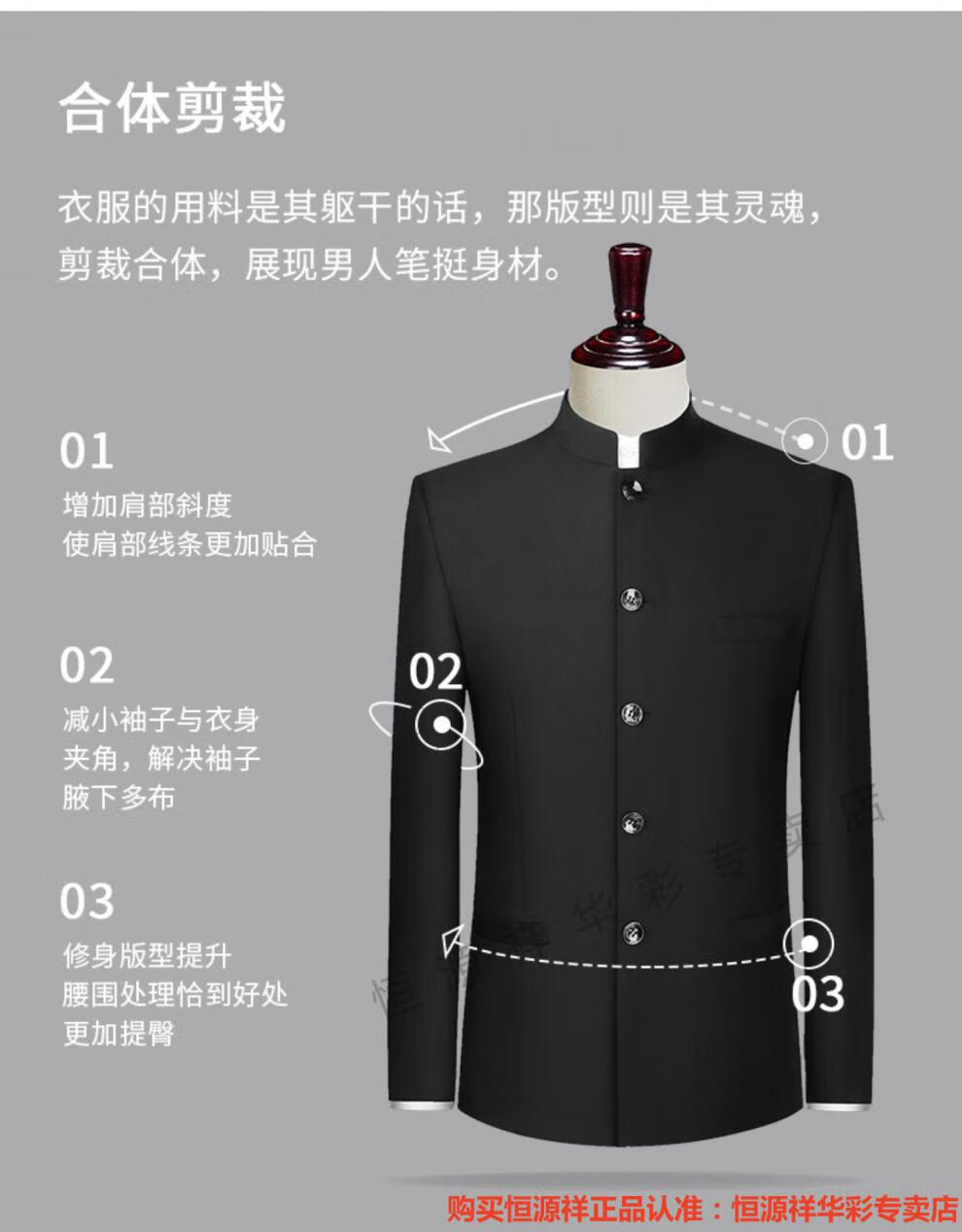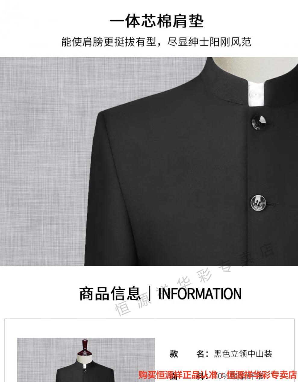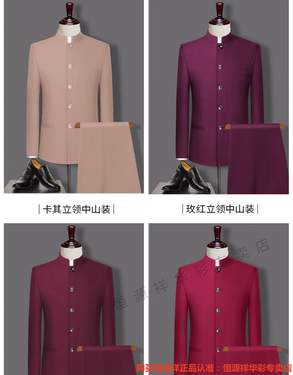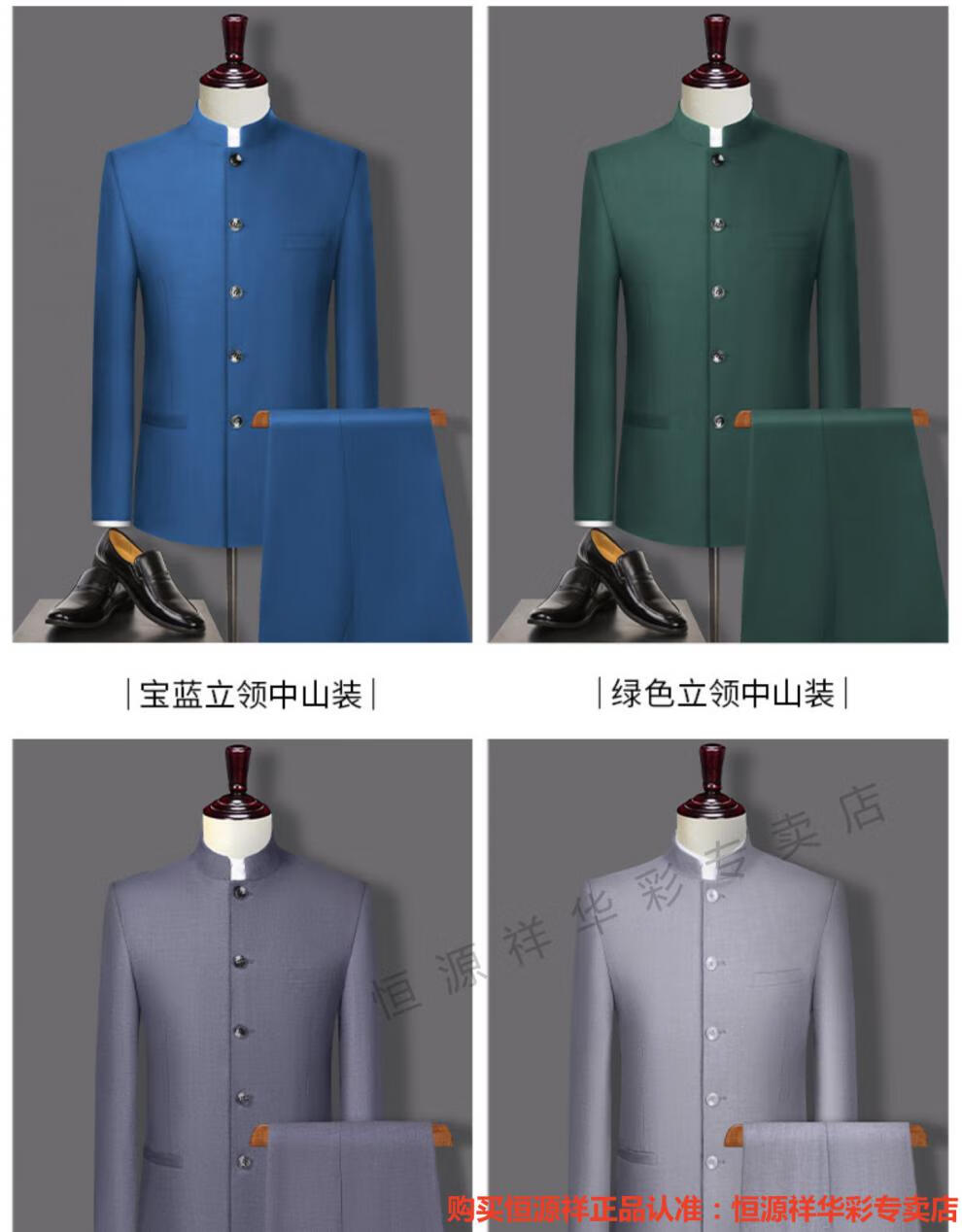 Hengyuanxiang Chinese tunic suit men's slim suit Chinese stand collar Chinese style Chinese suit wedding banquet groom and groomsmen dress black M 170 110 to 125 weight