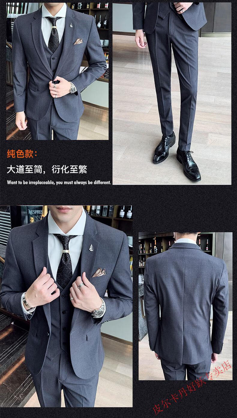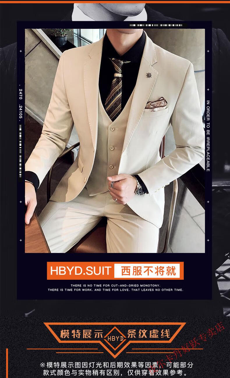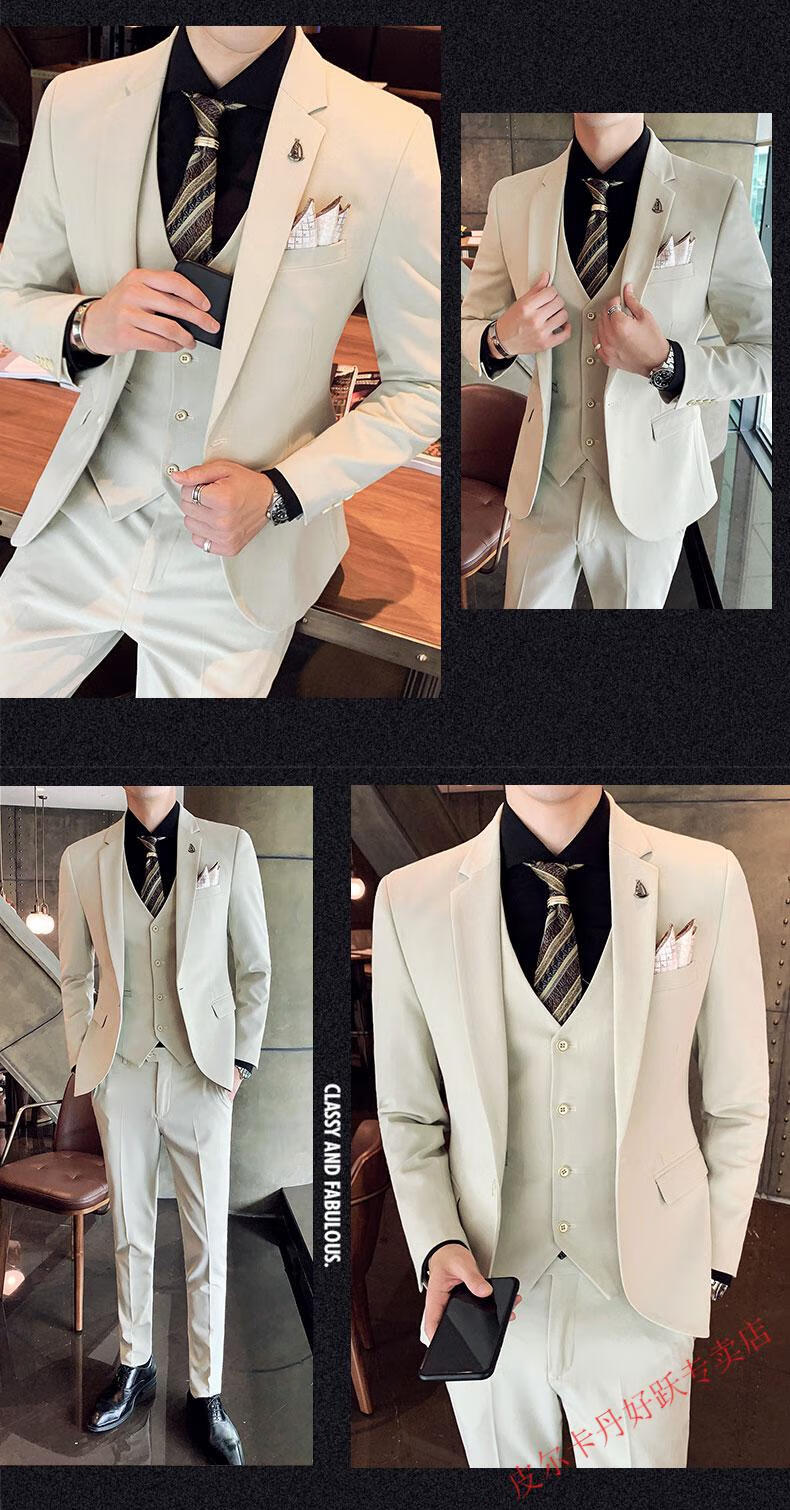 Pierre Cardin suit men's groomsmen Korean style groom's wedding dress business casual formal fit casual suit for men 1671 apricot four-piece suit (jacket + pants + vest + 2XL
