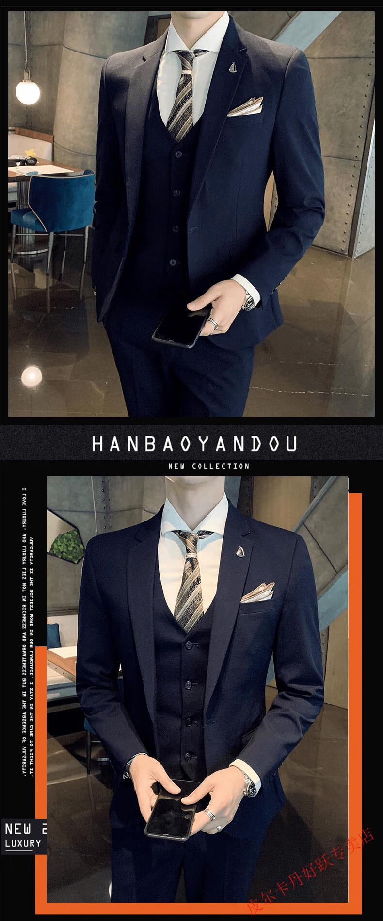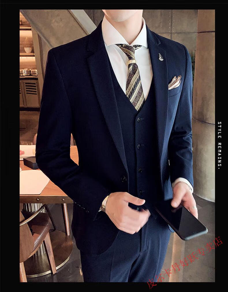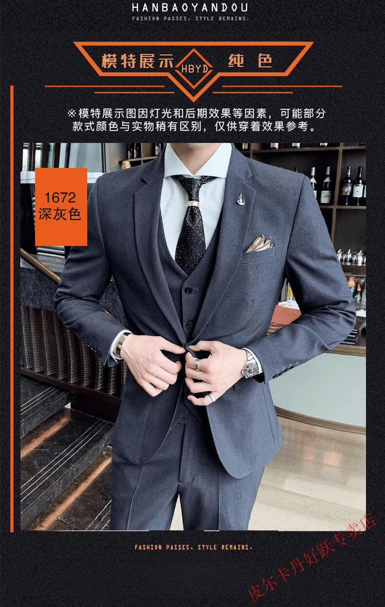 Pierre Cardin suit men's groomsmen Korean style groom's wedding dress business casual formal fit casual suit for men 1671 apricot four-piece suit (jacket + pants + vest + 2XL