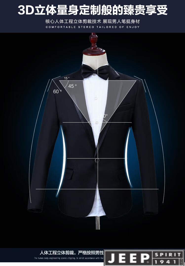 Jeep (JEEP) high-end performance clothing men's art test suit singer host dress suit suit stage performance chorus costume black suit + shirt S 165 height 165 weight about 110