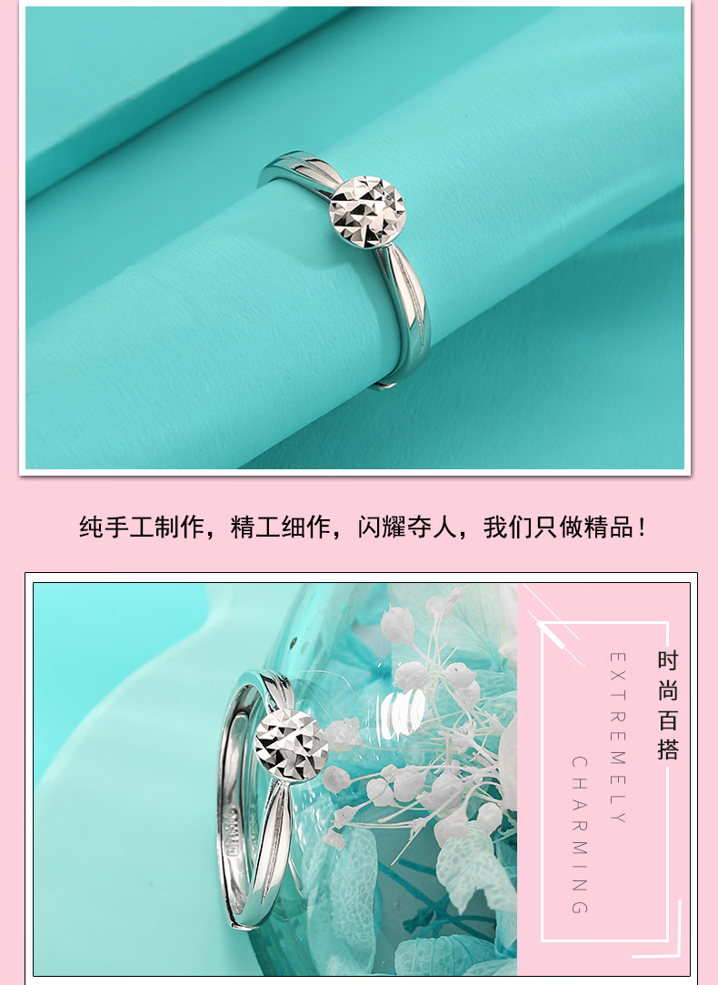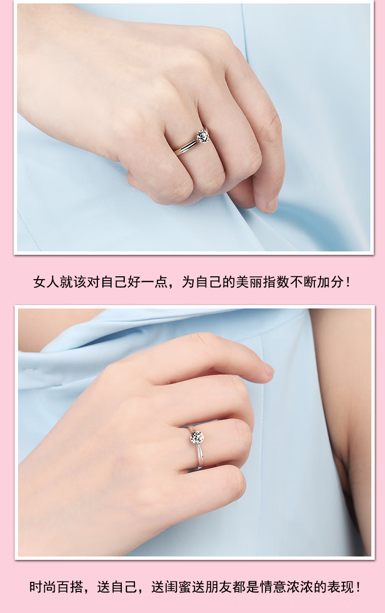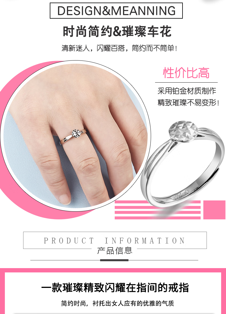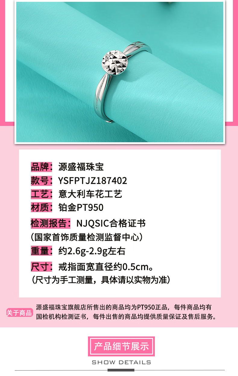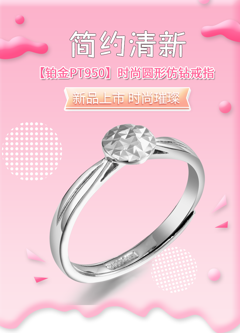 Yuan Shengfu's new PT950 fashionable round imitation diamond platinum ring, versatile platinum ring for women, 2.59 grams