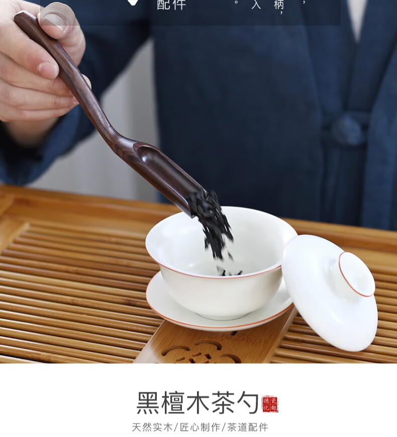 Jingshi teaspoon tea spoon tea shovel single solid wood spoon tea special spoon tea set accessories tea taker small tea spoon tool ebony tea spoon
