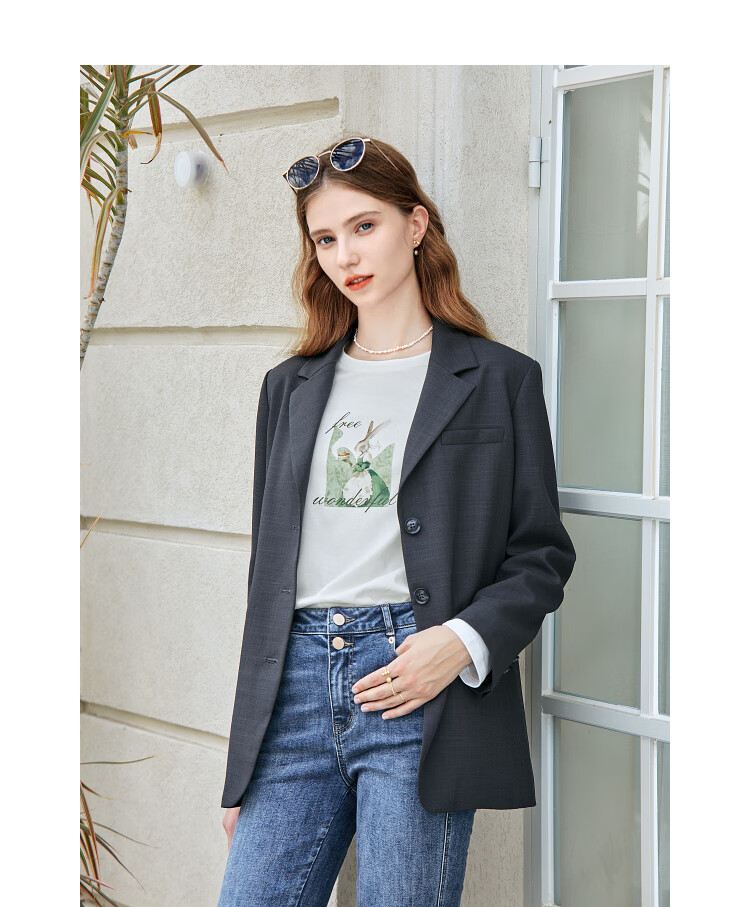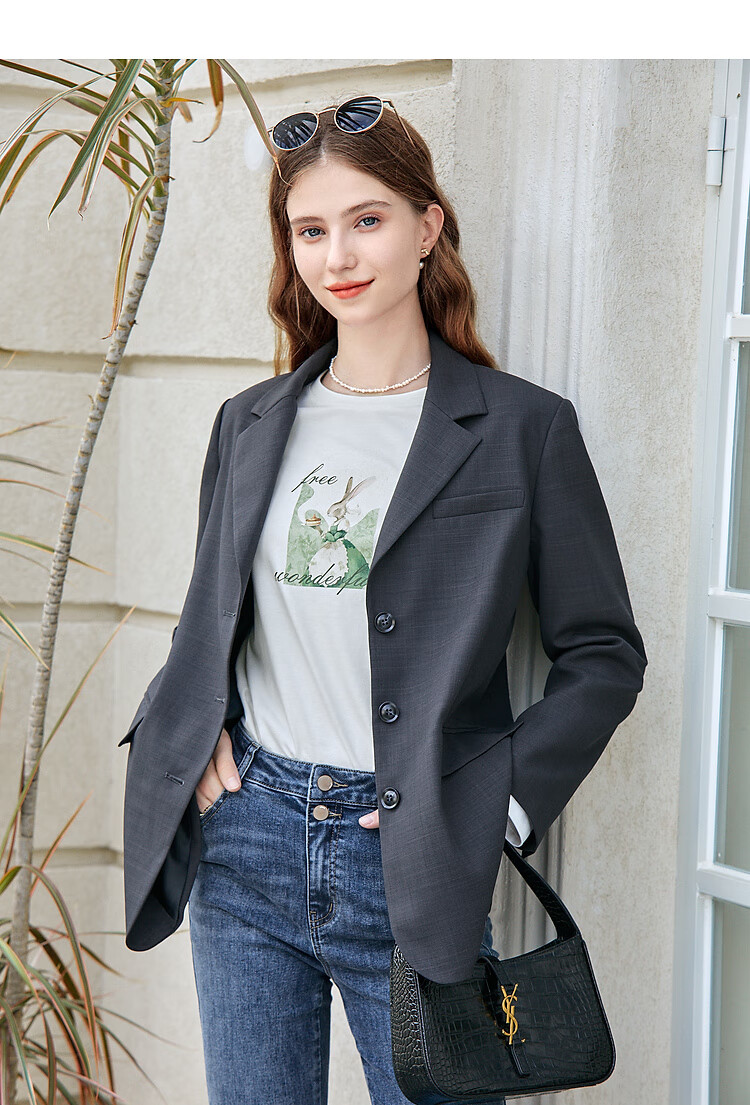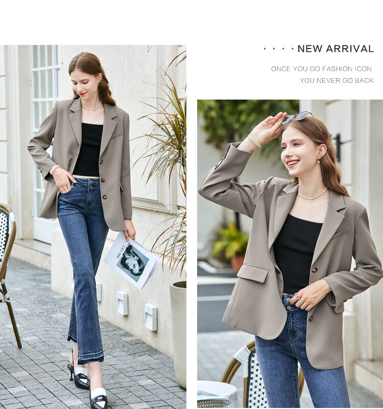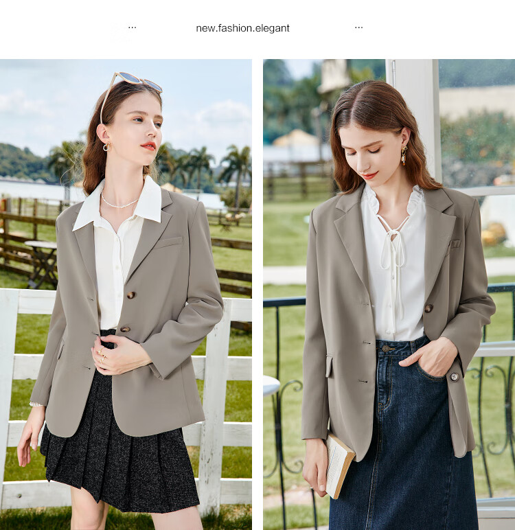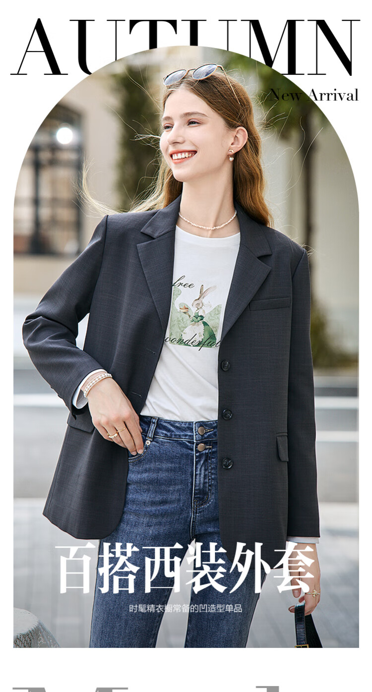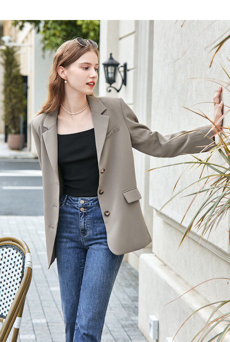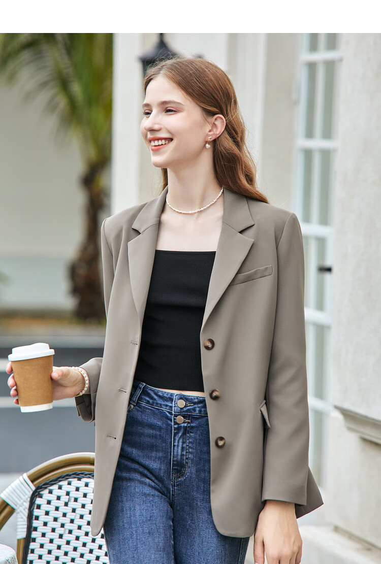 Betu women's autumn new suit ins style simple versatile multi-color suit jacket women 2308T46 mocha color M