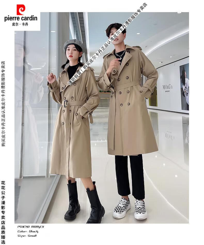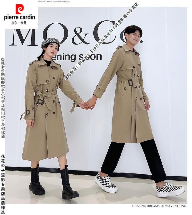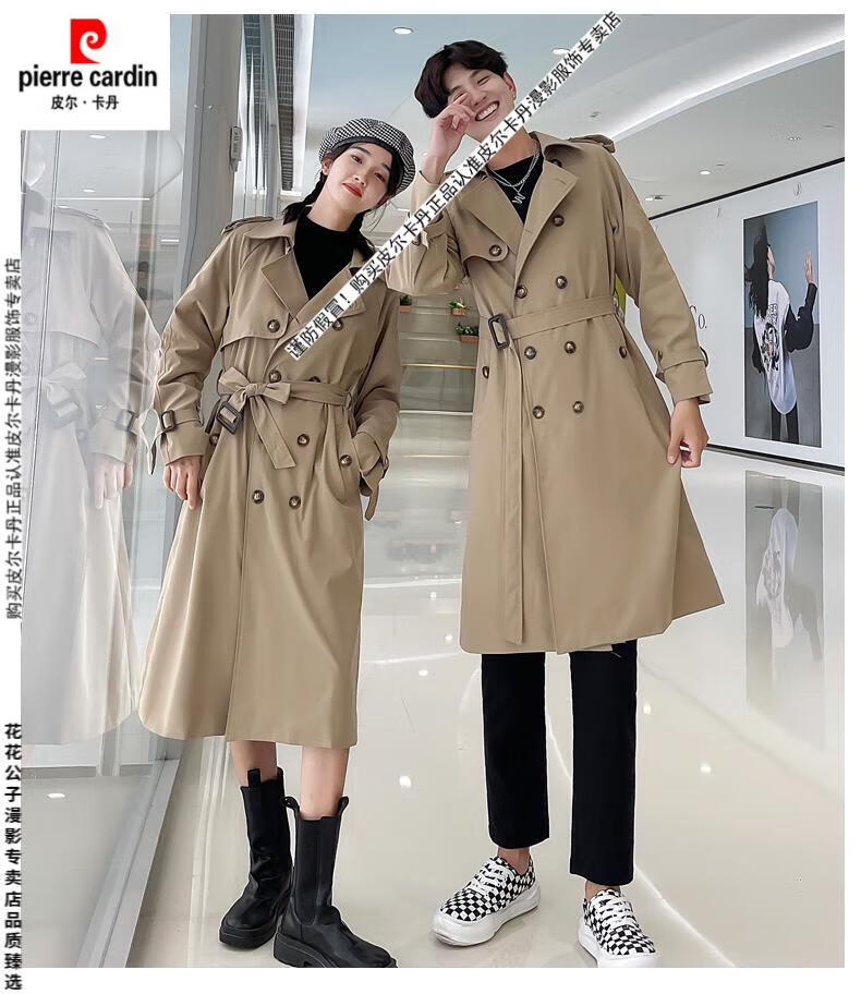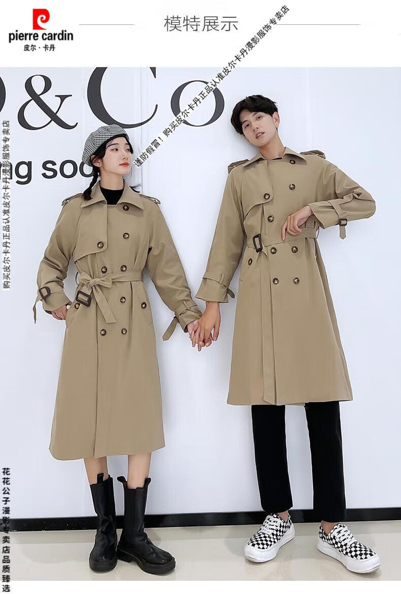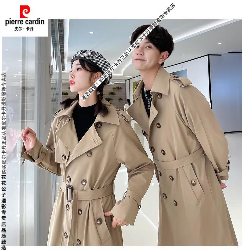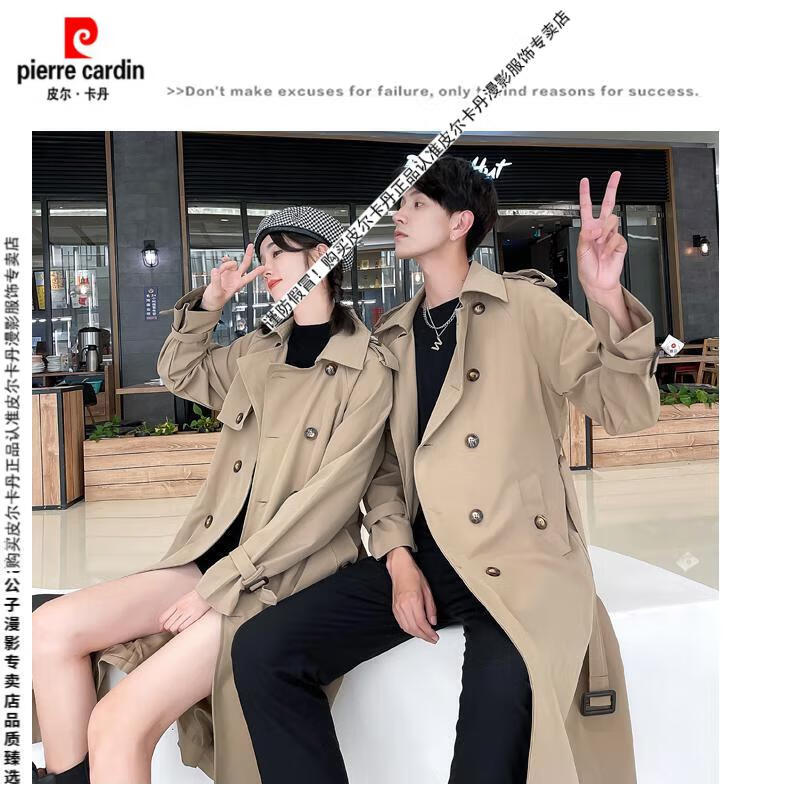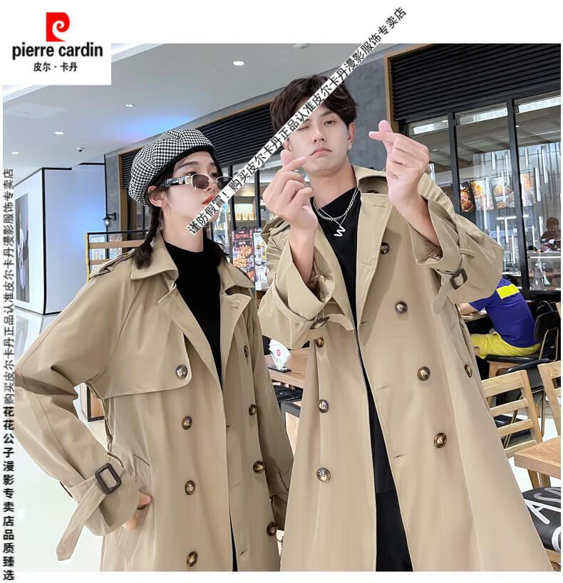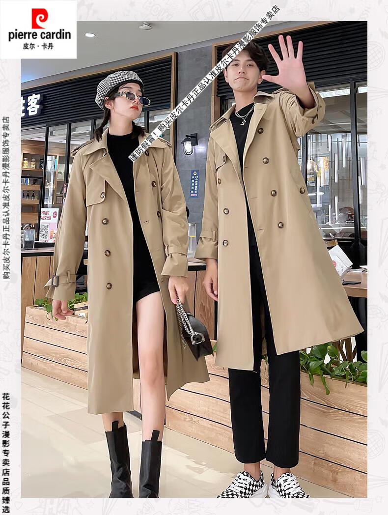 Pierre Cardin 2024 new British style couple's wear windbreaker spring and autumn coats for men and women loose and versatile trendy casual mid-length camel same style single piece for men and women S