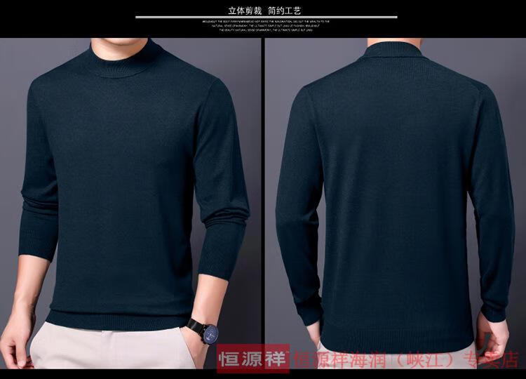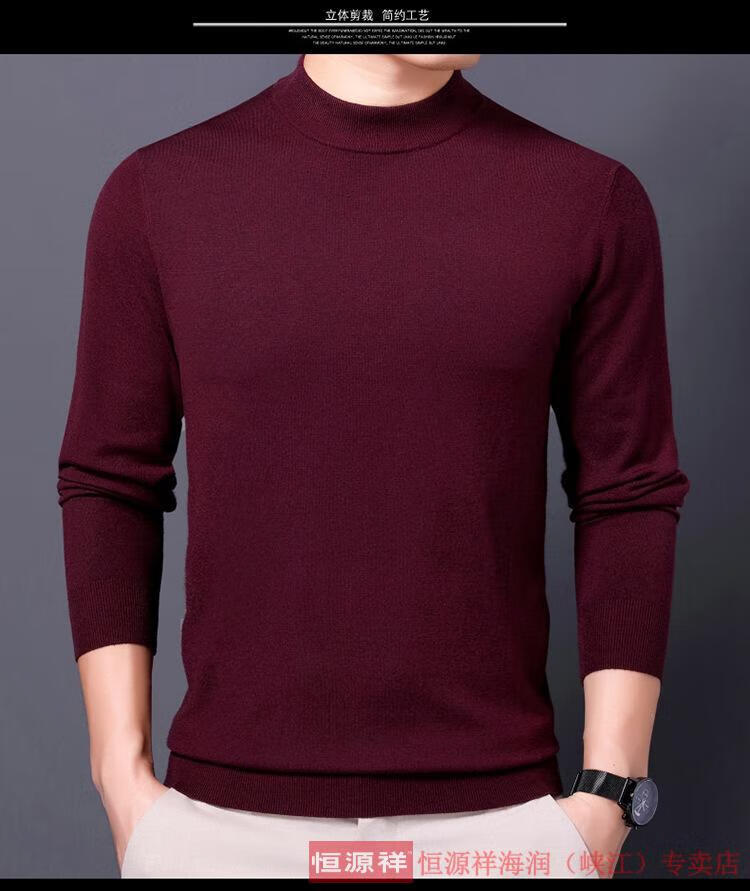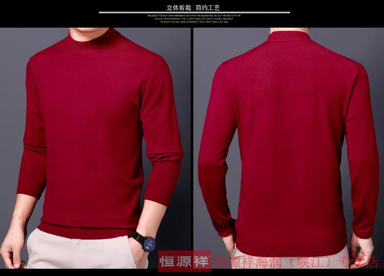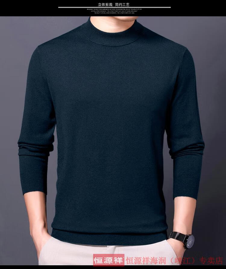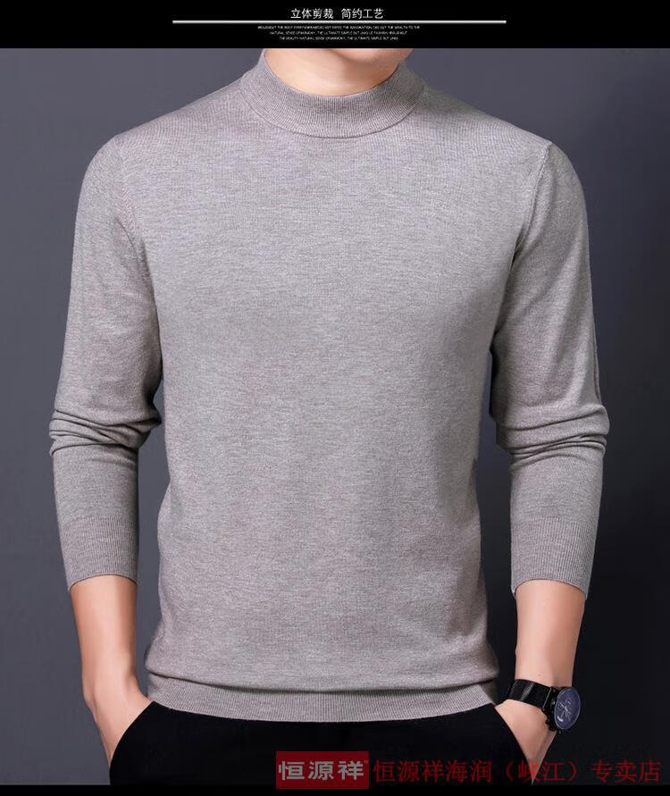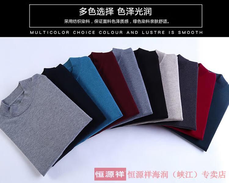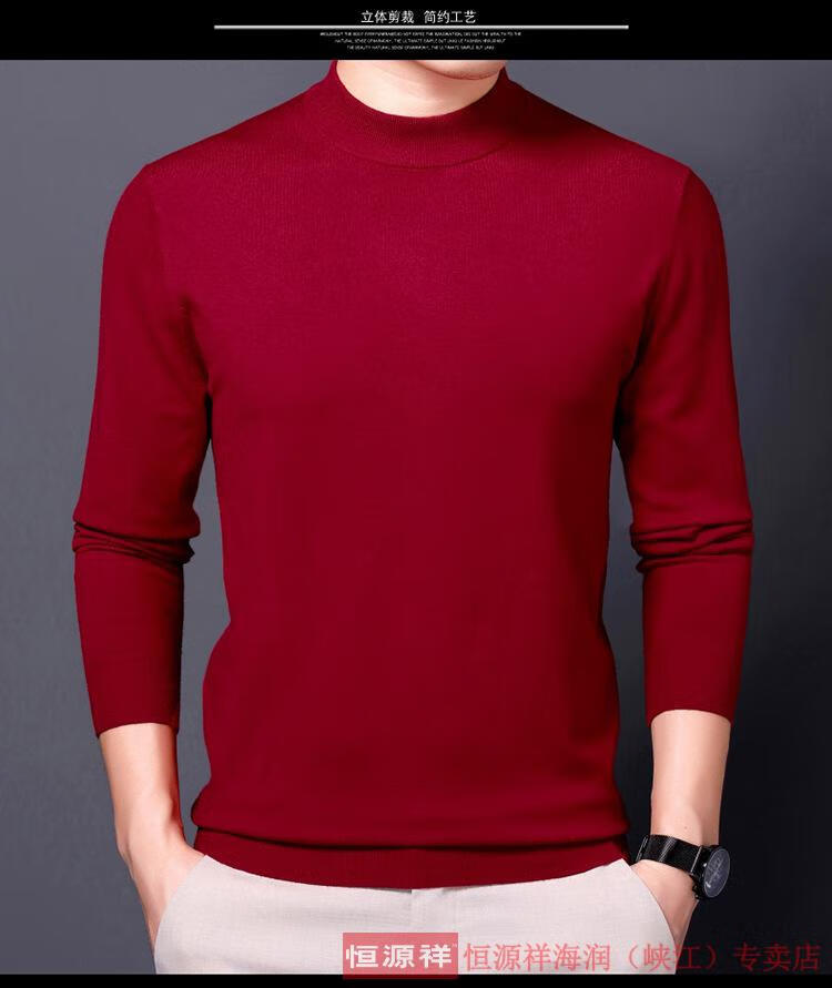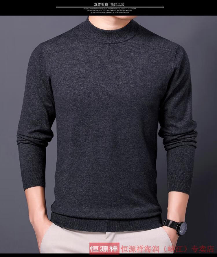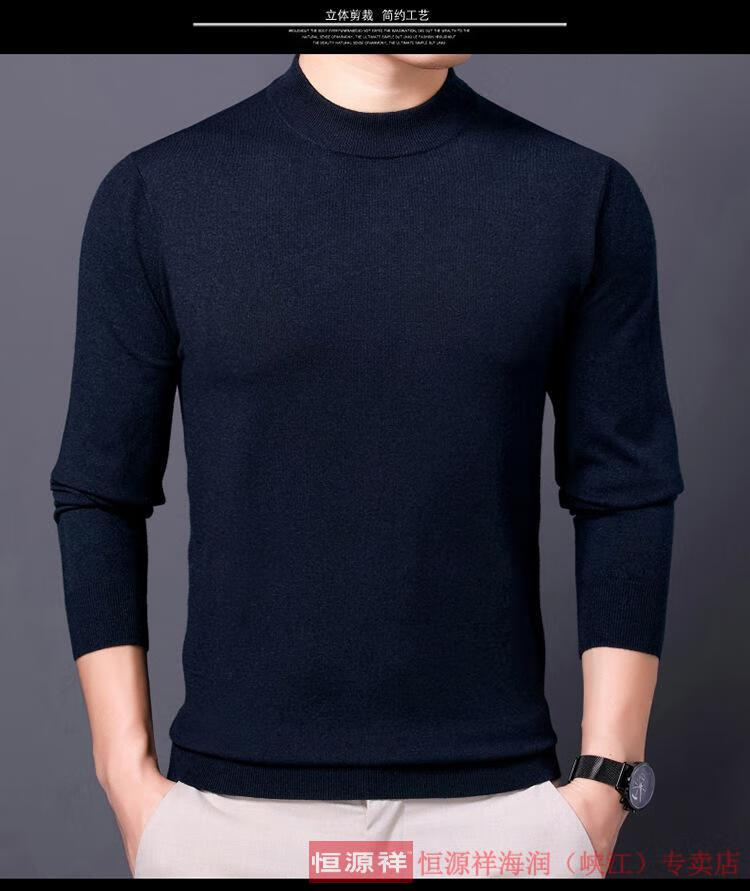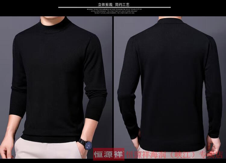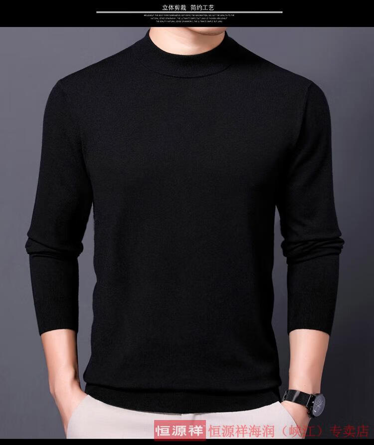 Hengyuanxiang ultra-thin worsted wool bottoming sweater men's half turtleneck sweater spring and autumn close-fitting bottoming sweater half turtleneck black M 165/84
