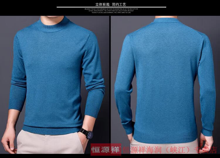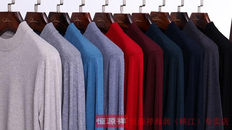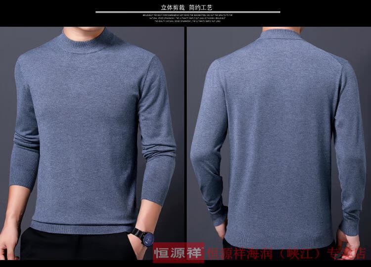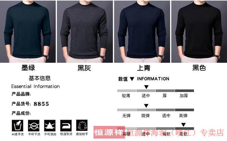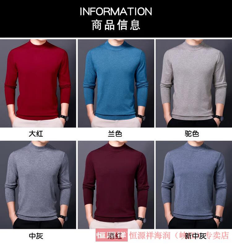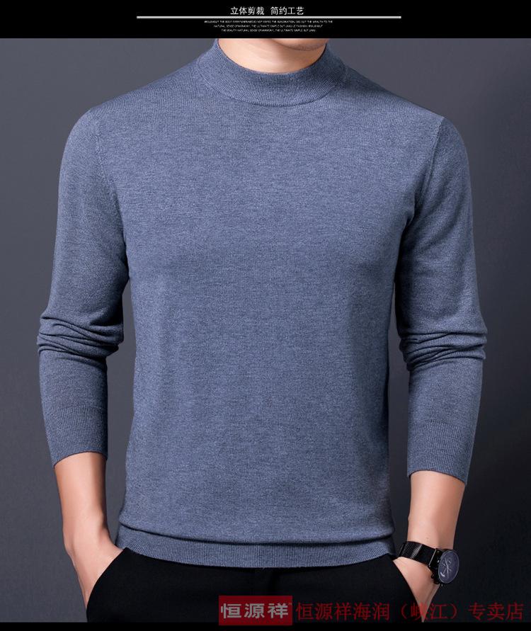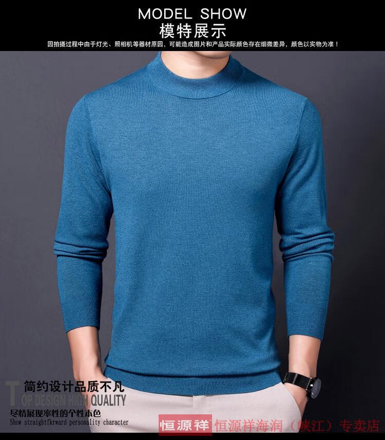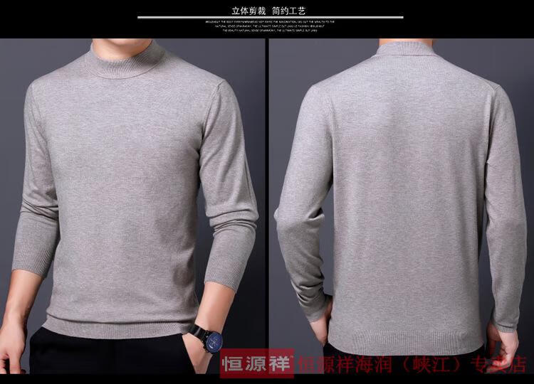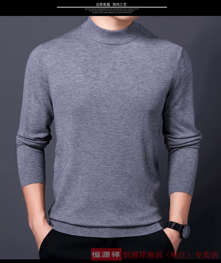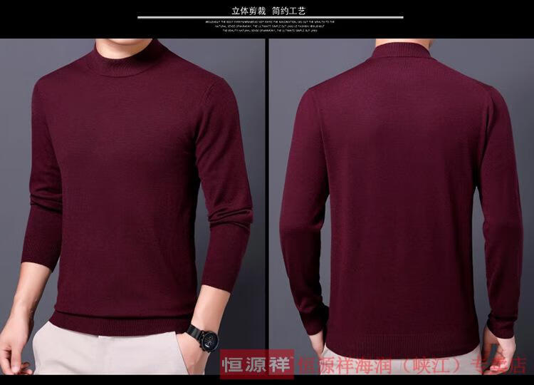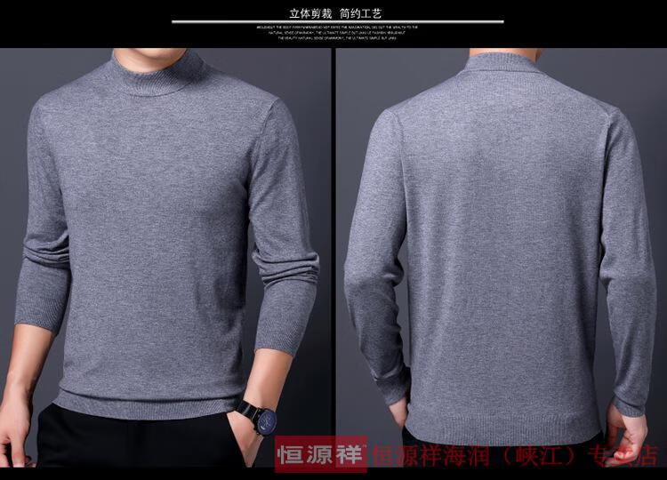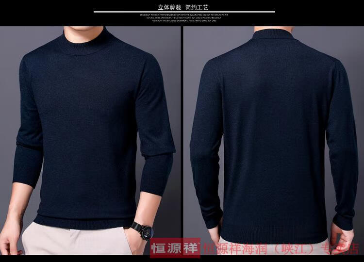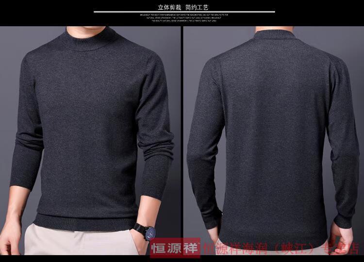 Hengyuanxiang ultra-thin worsted wool bottoming sweater men's half turtleneck sweater spring and autumn close-fitting bottoming sweater half turtleneck black M 165/84