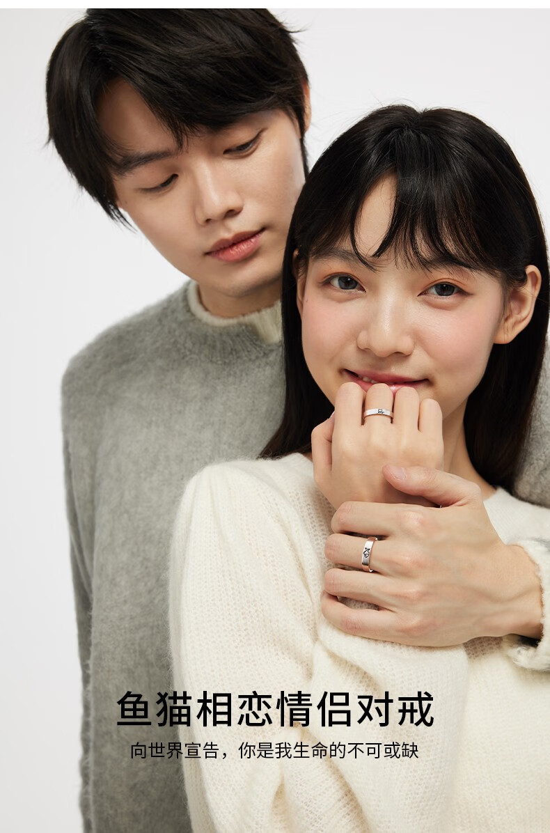 Catiro Fish Cat Love Couple Ring A Pair of Silver Rings Engraved Proposal Gift for Boyfriend and Girlfriend S925 Silver Default 94