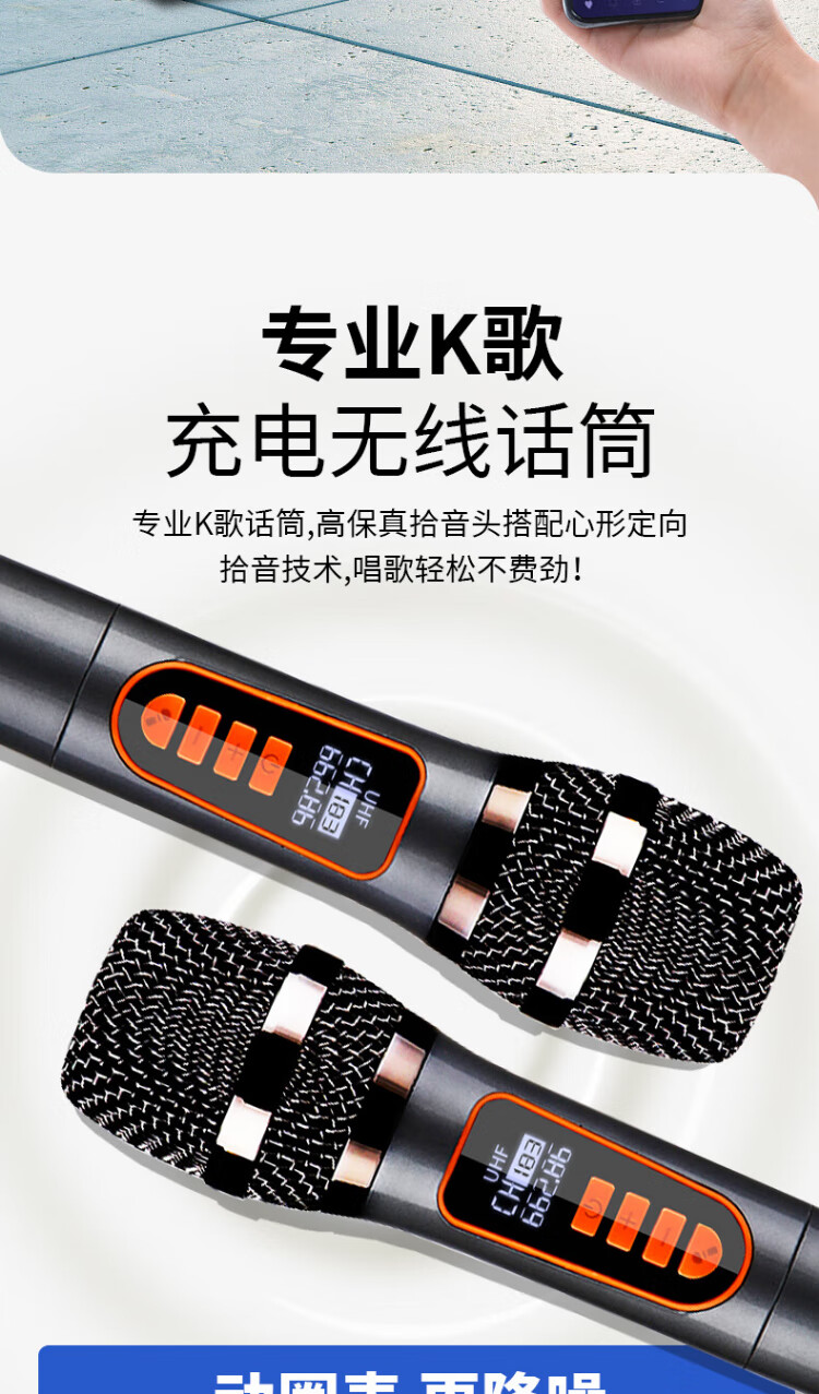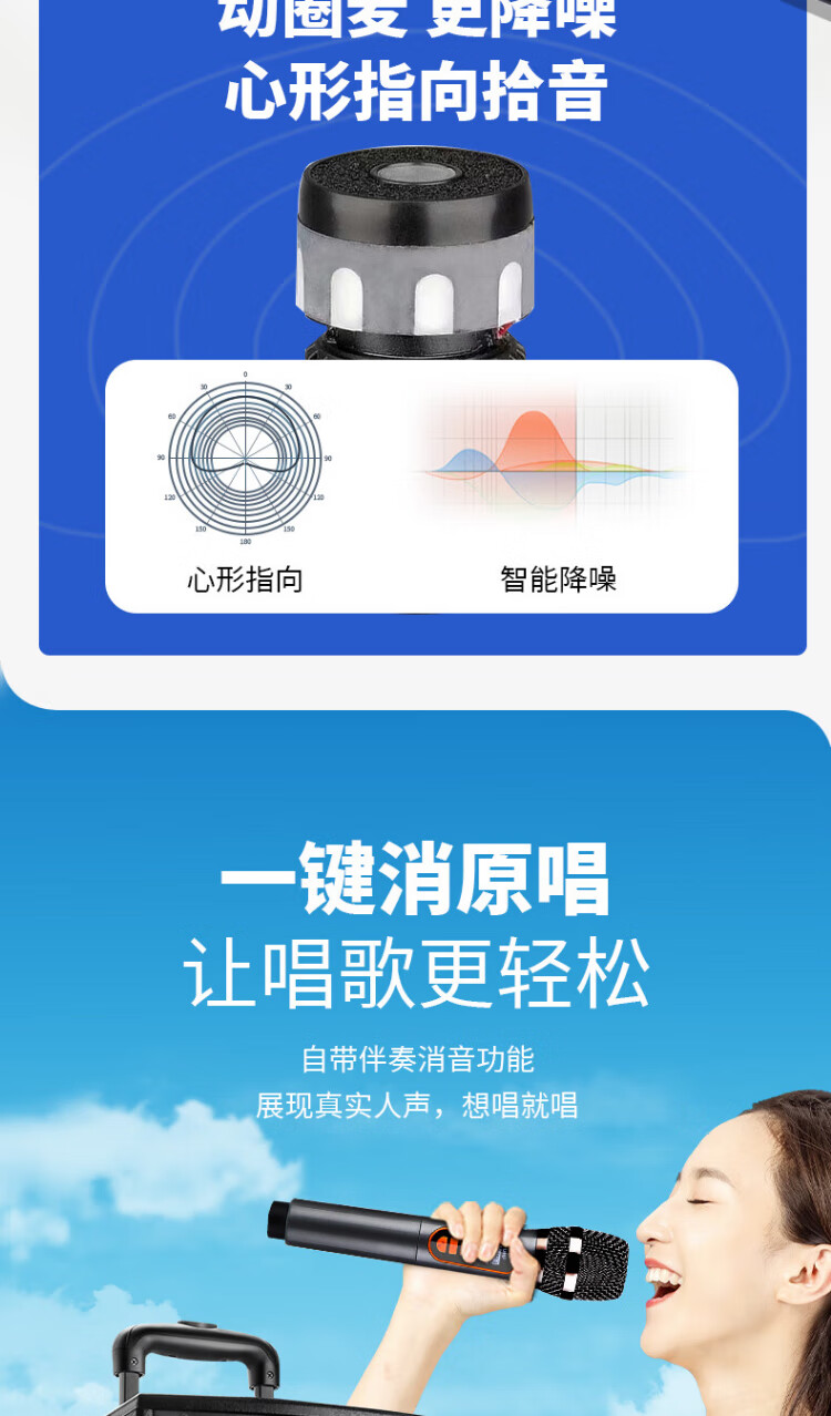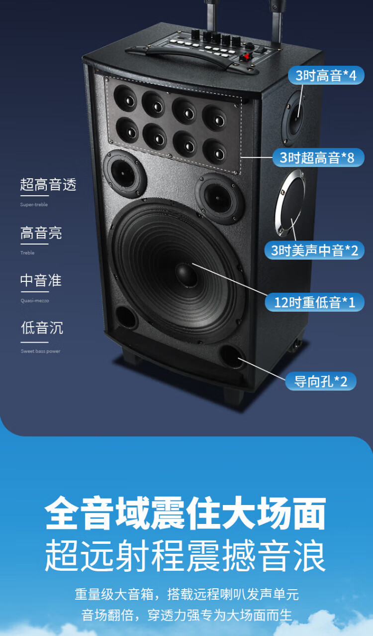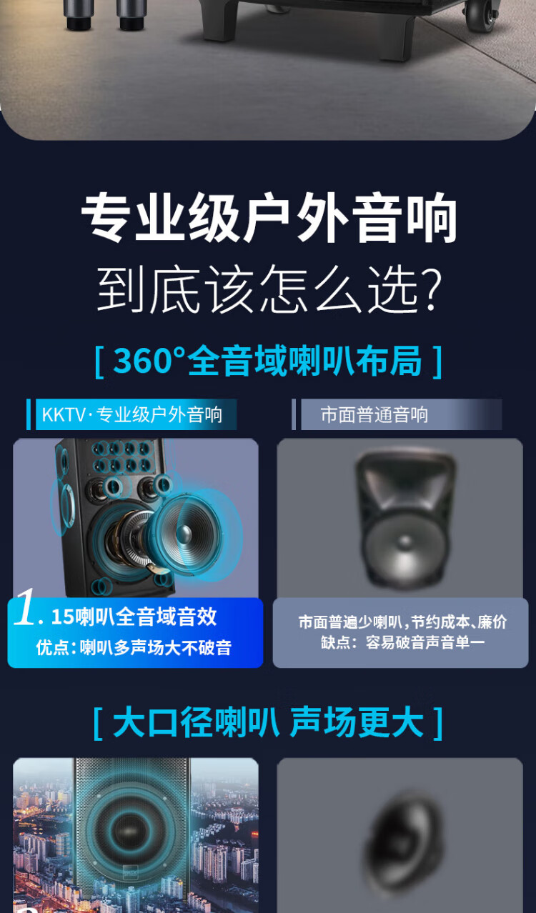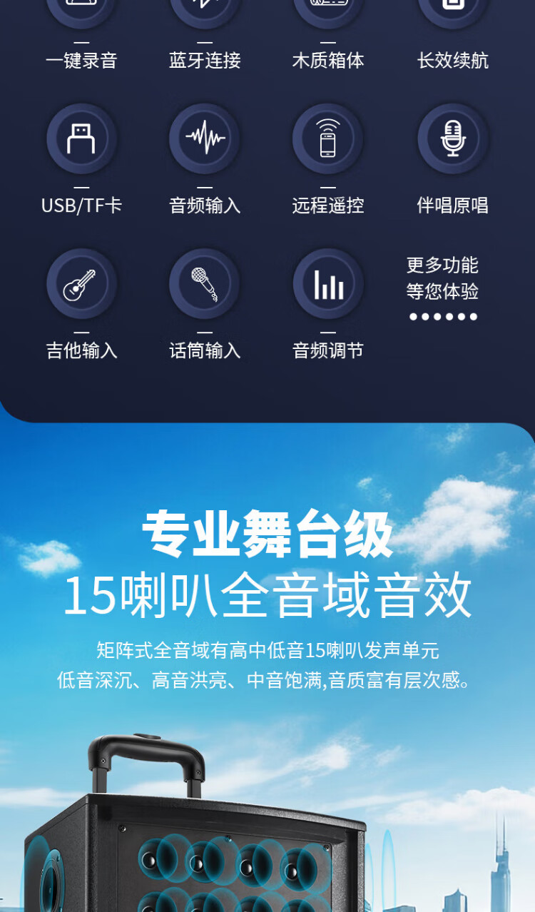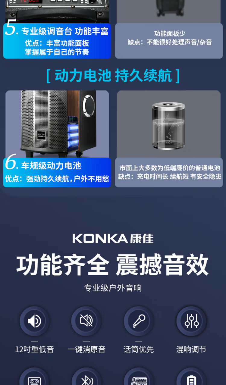 Konka square dance audio three-way outdoor mobile trolley performance dancing and singing karaoke speaker wooden household portable Bluetooth high-power volume with wireless microphone subwoofer 15 speakers + 2 rechargeable microphones