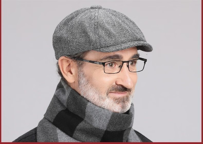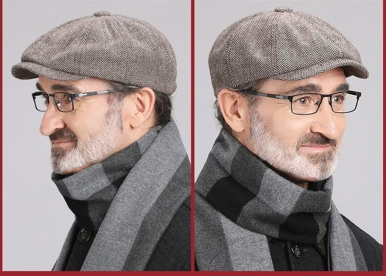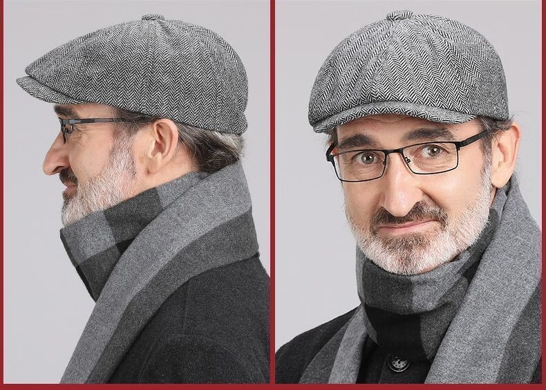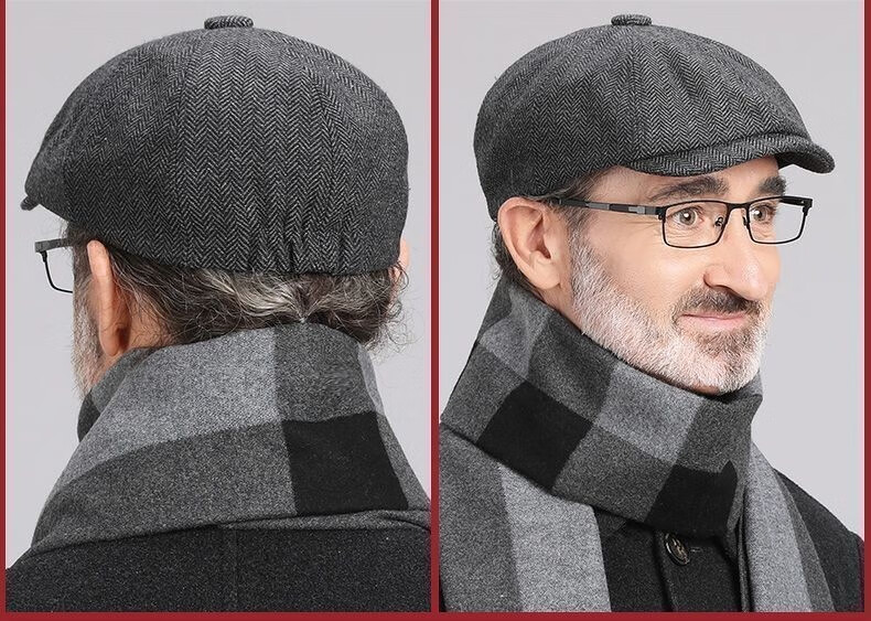 QUEENJOY octagonal hat men's British autumn and winter literary retro painter hat Japanese newsboy hat casual versatile beret dark gray
