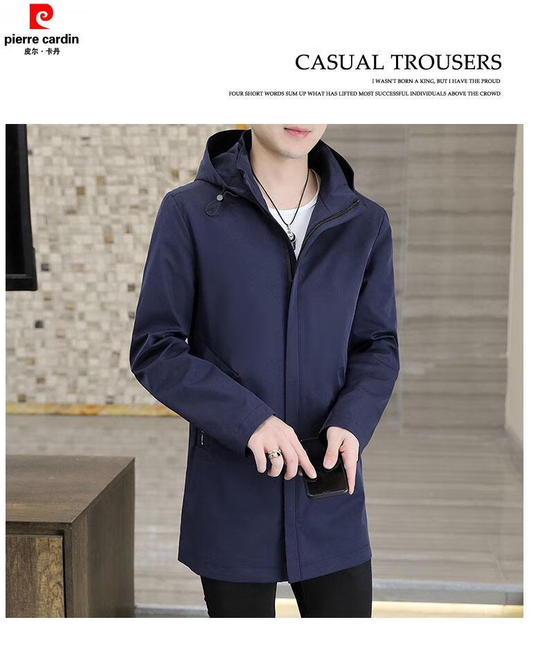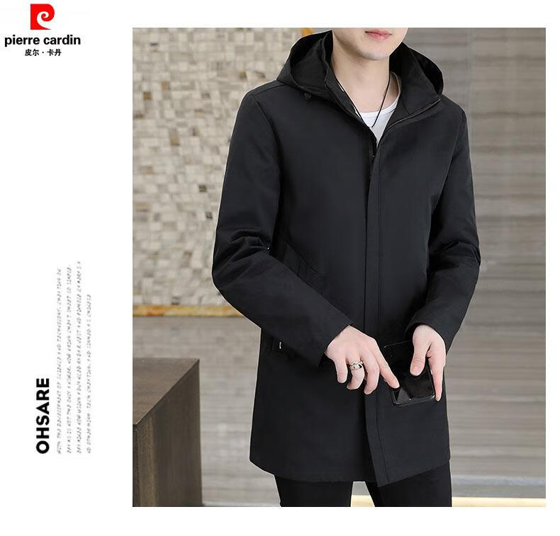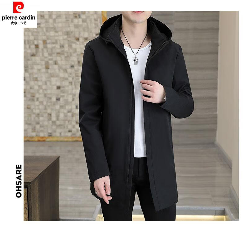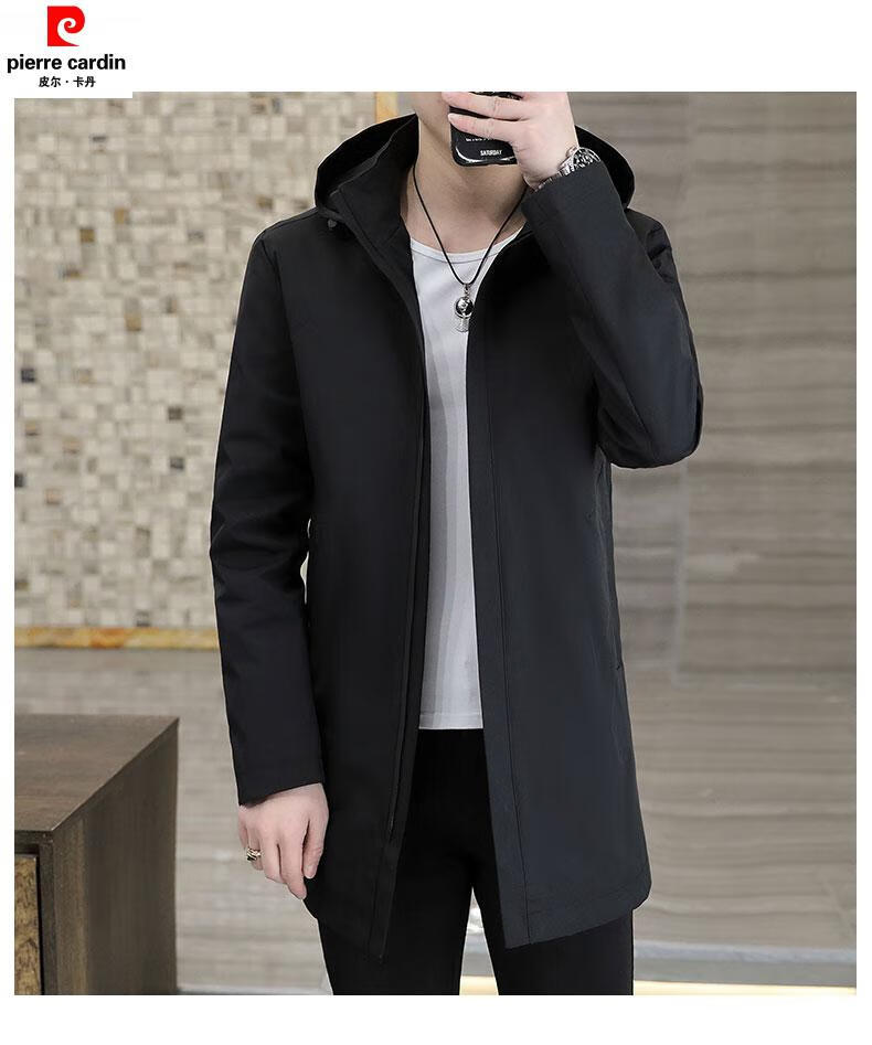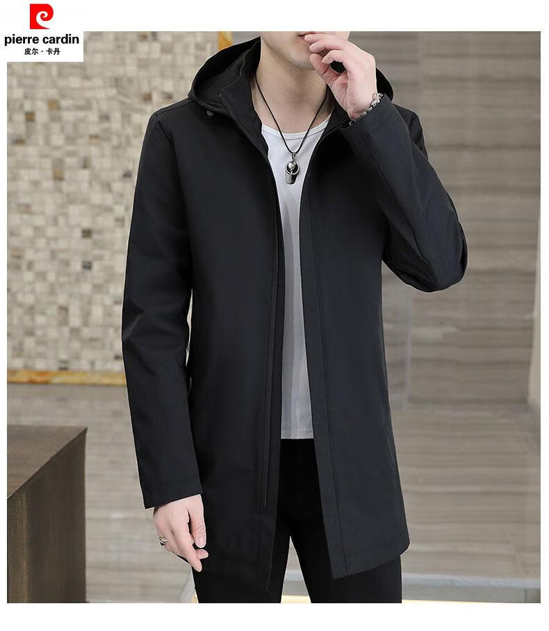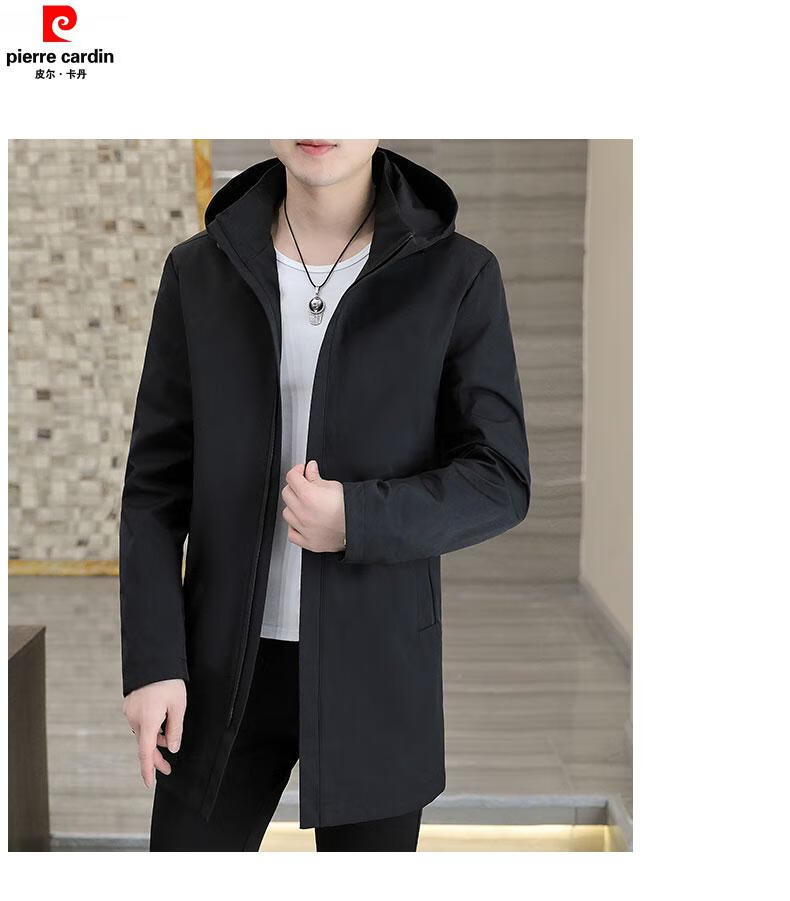 Pierre Cardin mid-length windbreaker jacket for men spring and autumn new mature and stable men's trendy brand hooded slim top 313 black M 85Jin Jin equals 0.5kg -110Jin Jin equals 0.5kg or so