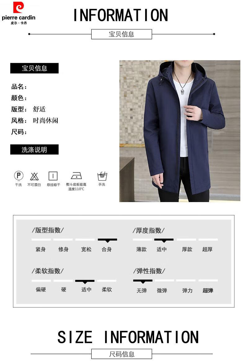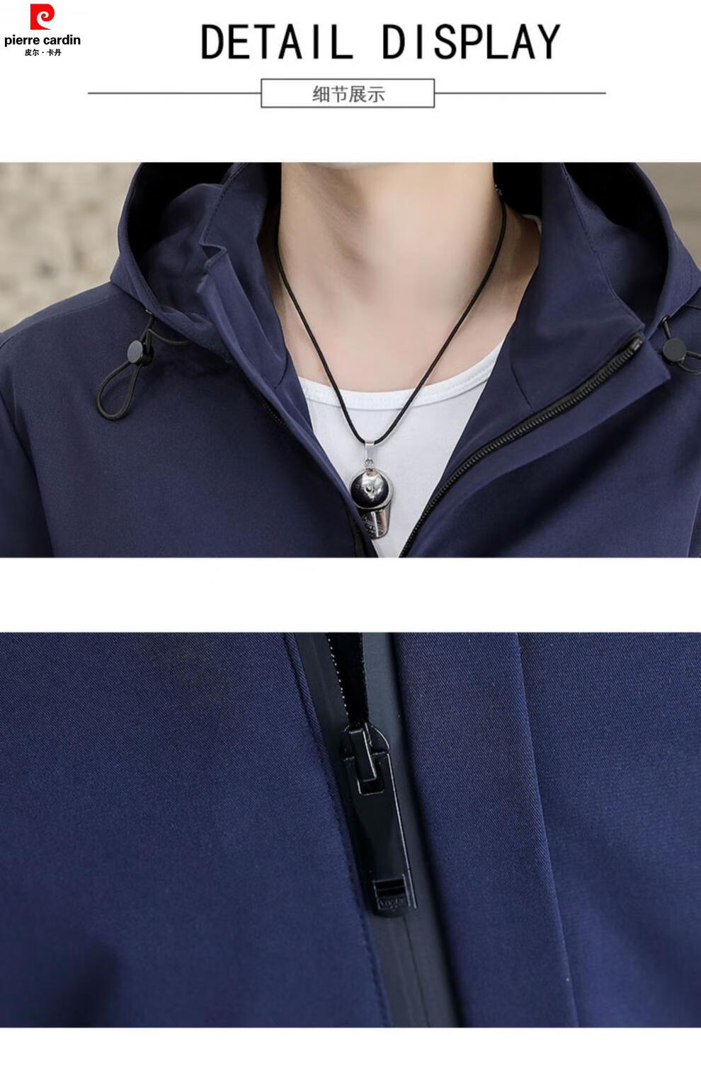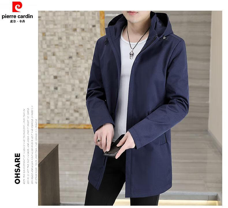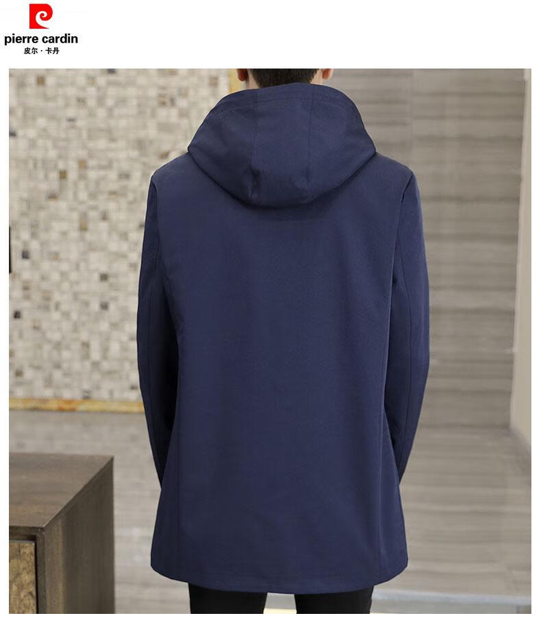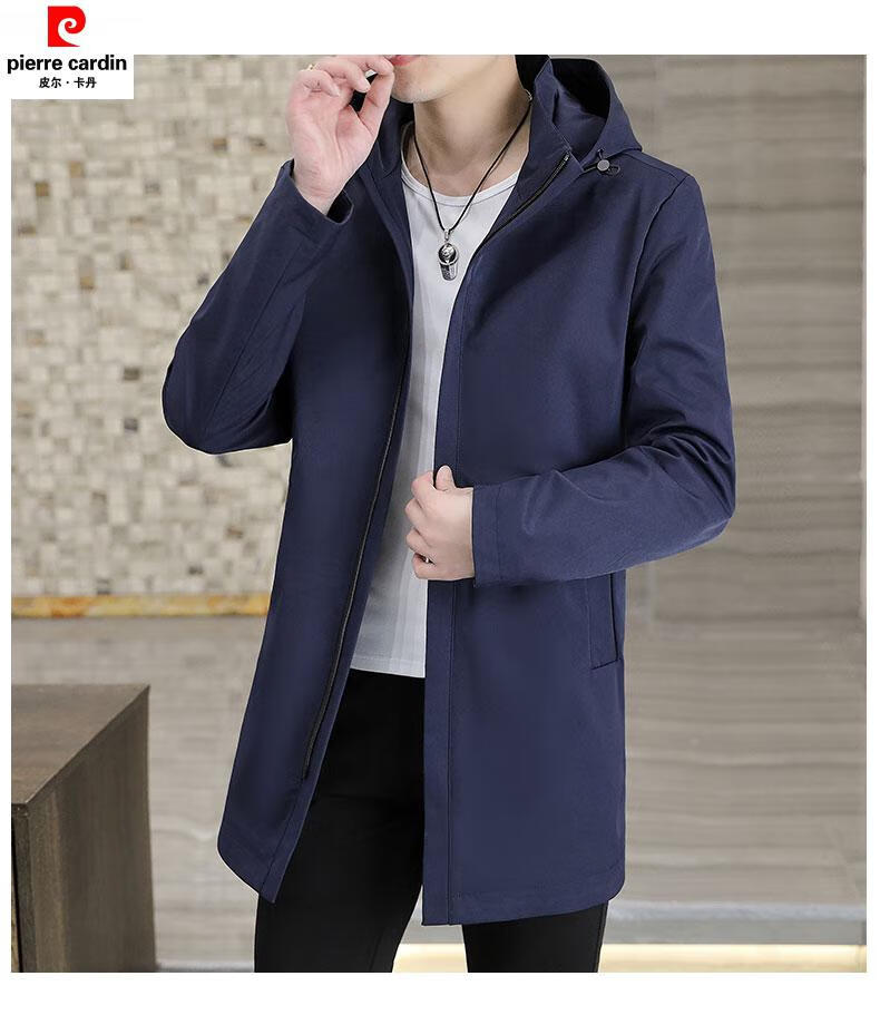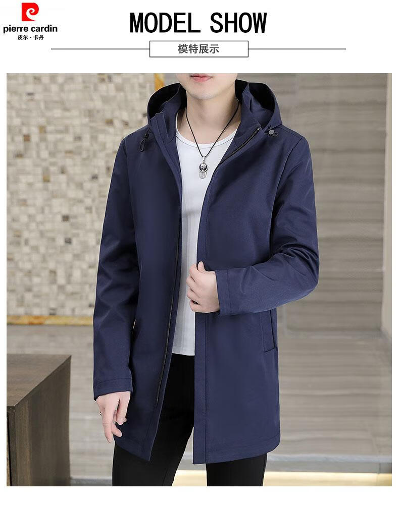 Pierre Cardin mid-length windbreaker jacket for men spring and autumn new mature and stable men's trendy brand hooded slim top 313 black M 85Jin Jin equals 0.5kg -110Jin Jin equals 0.5kg or so