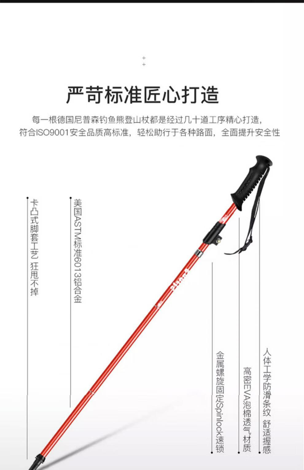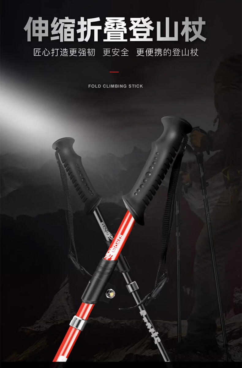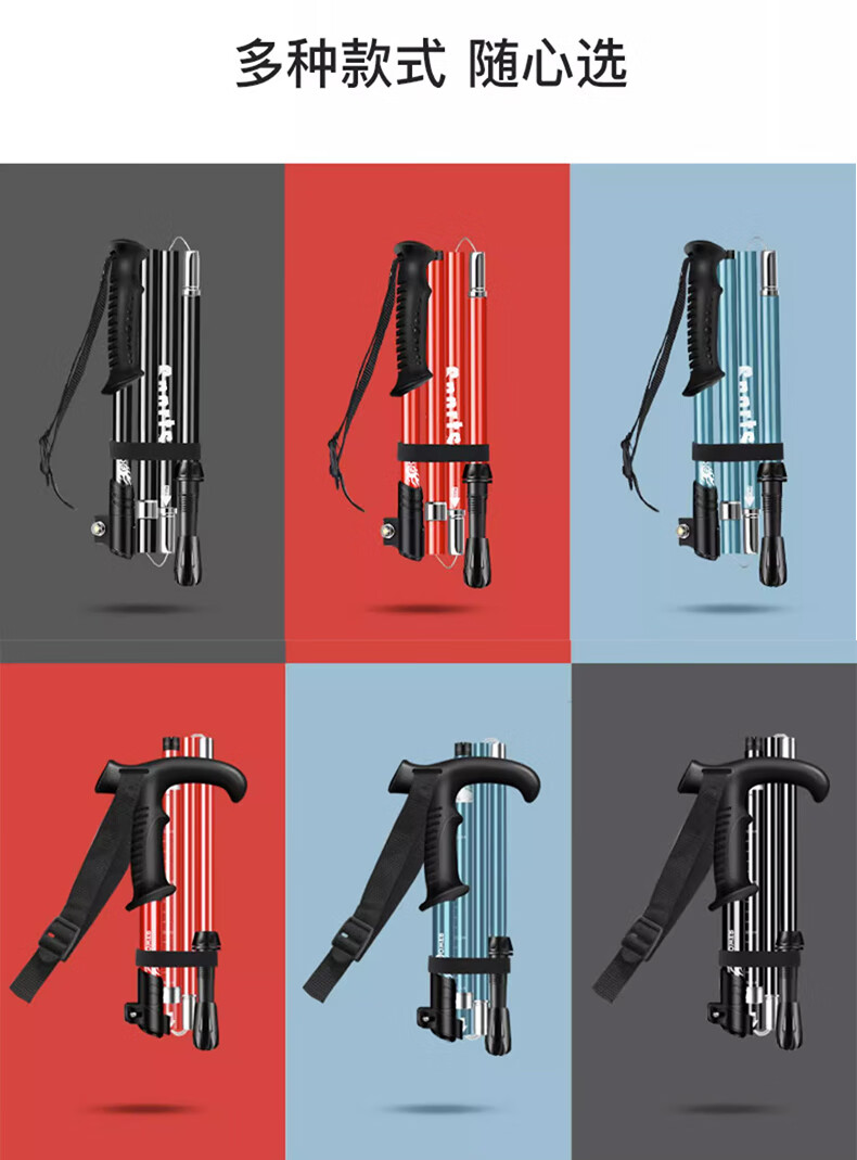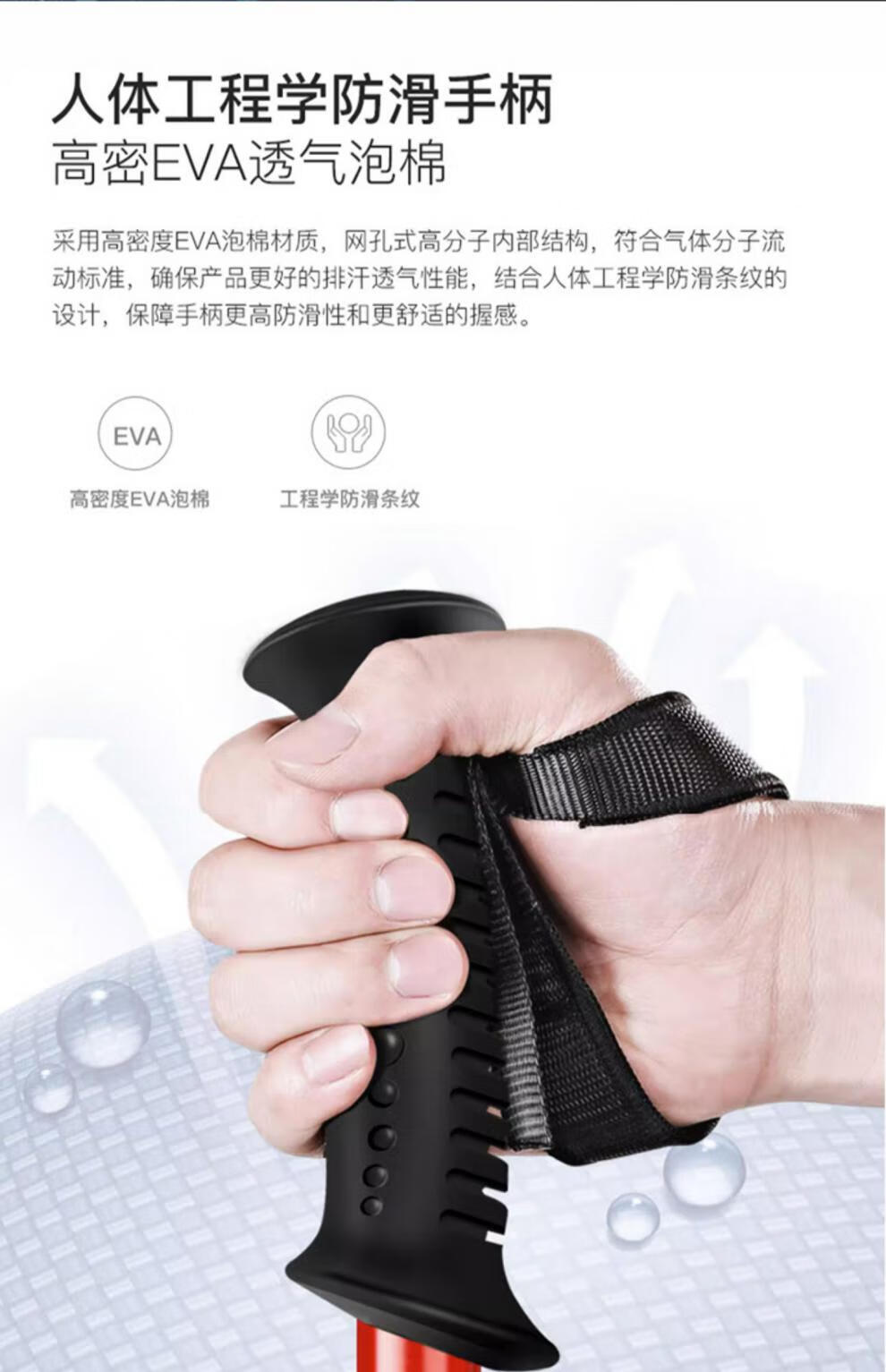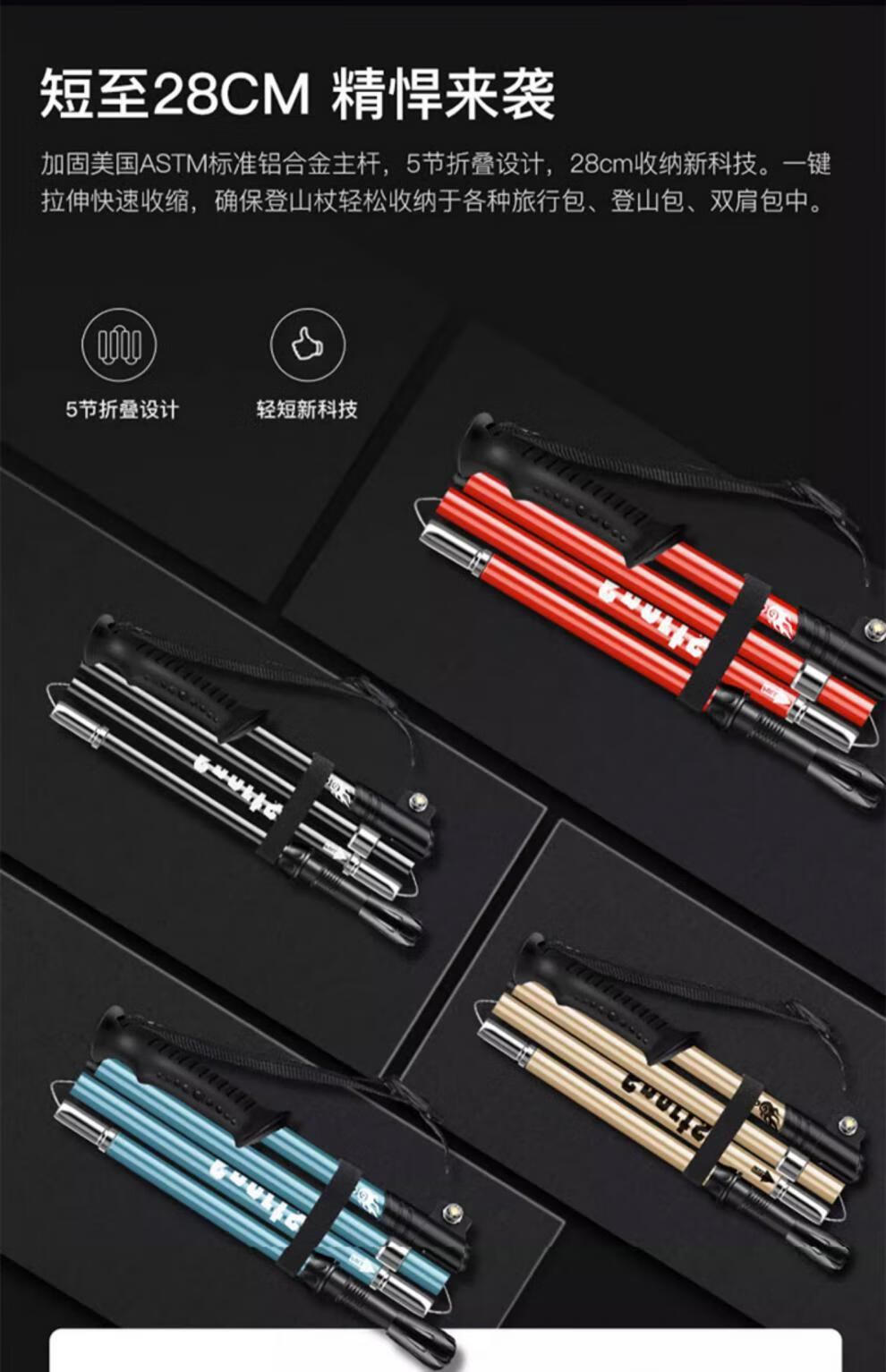 Drilling trekking pole, walking stick, non-slip walking stick, carbon elderly people's ultra-light telescopic outdoor mountain climbing folding light multi-functional folding short straight handle-Xuanya Red