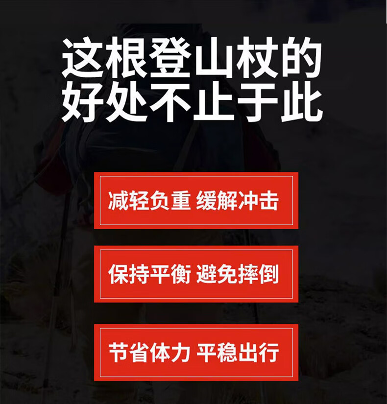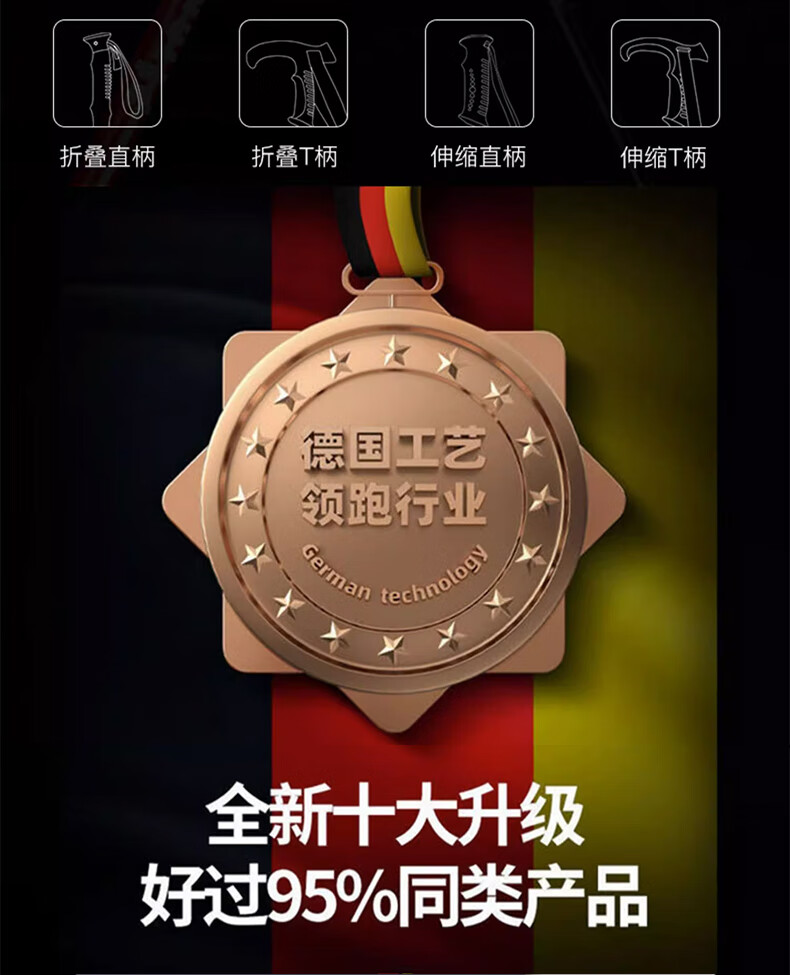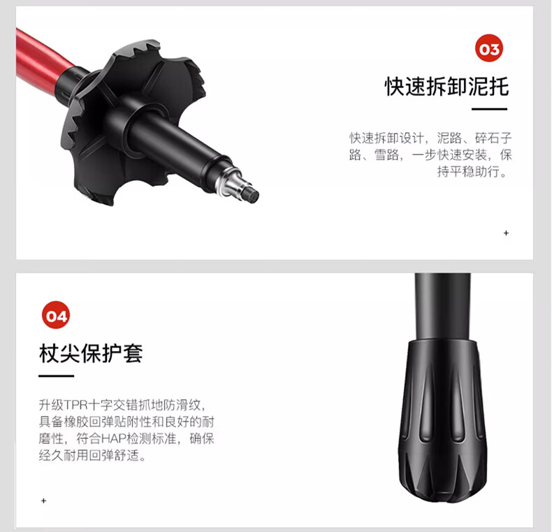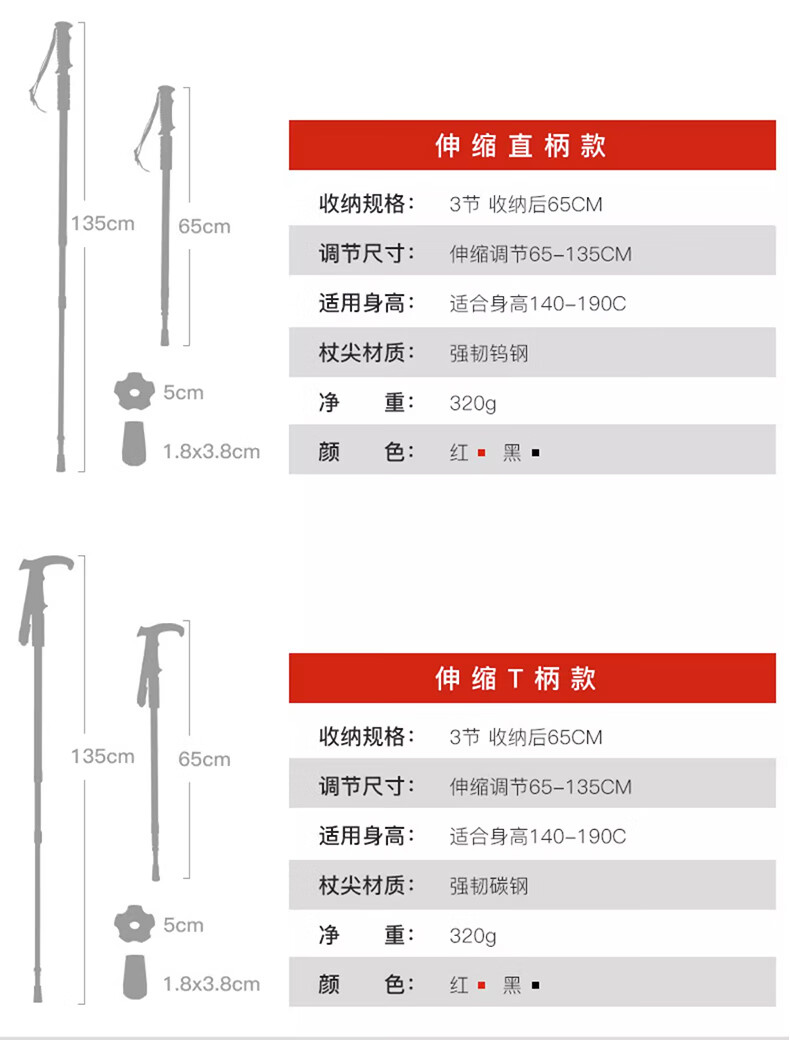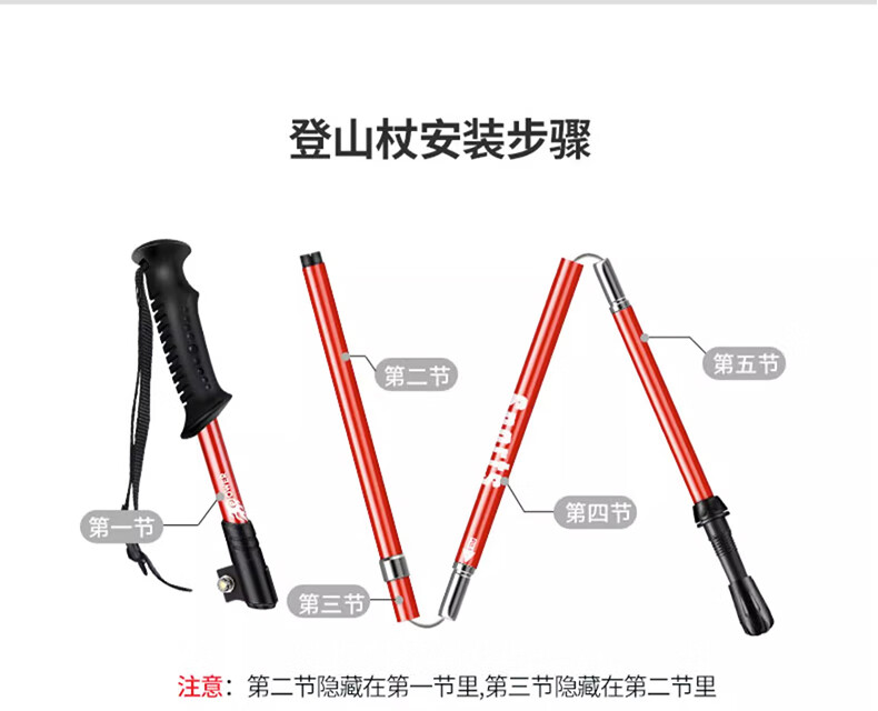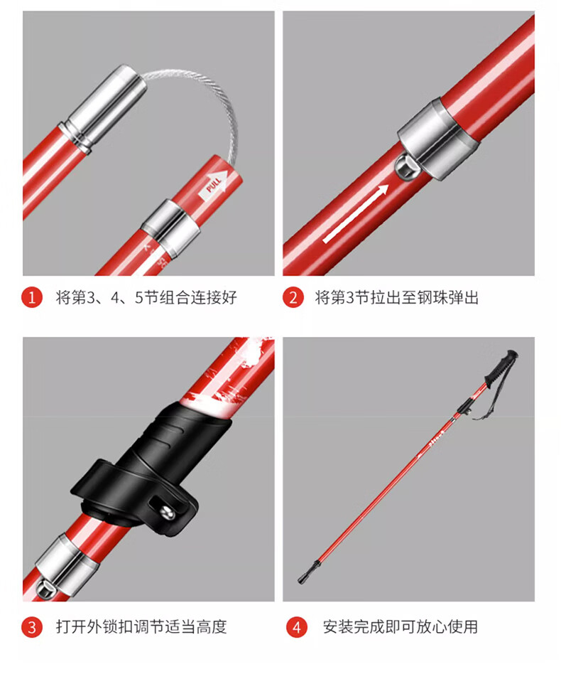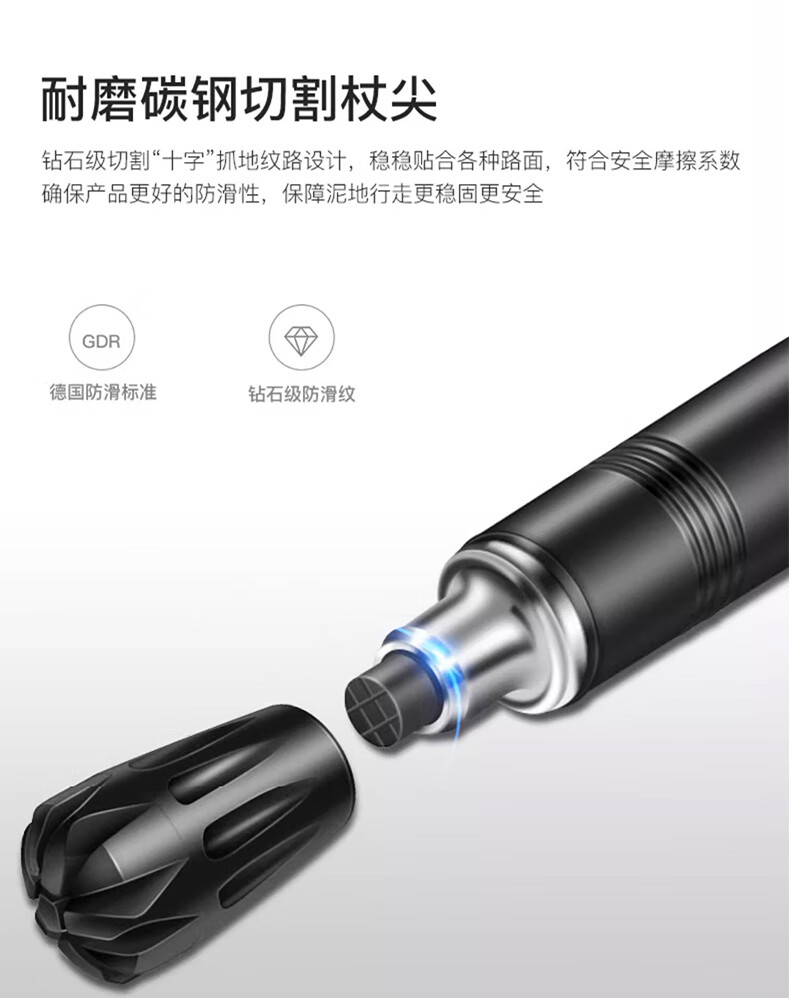 Drilling trekking pole, walking stick, non-slip walking stick, carbon elderly people's ultra-light telescopic outdoor mountain climbing folding light multi-functional folding short straight handle-Xuanya Red