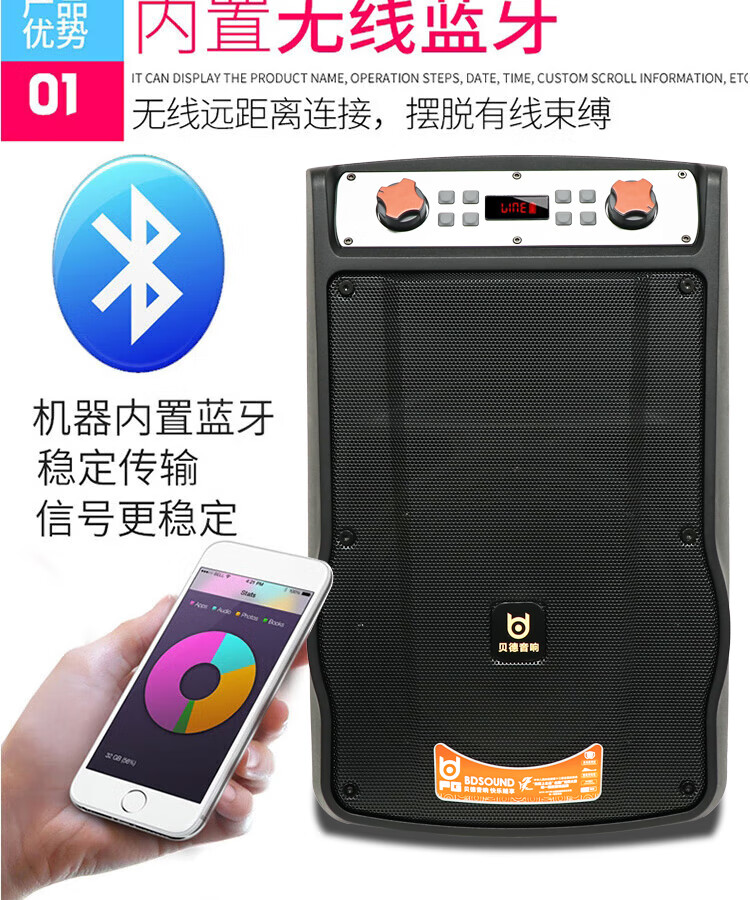 Bader Audio Square Dance Speaker Outdoor High Power High Volume High Quality Mobile Portable Bluetooth Trolley Speaker Home Indoor Karaoke Guitar Stage Performance with Microphone 12 Inch + Dual Microphone 16KG 300W