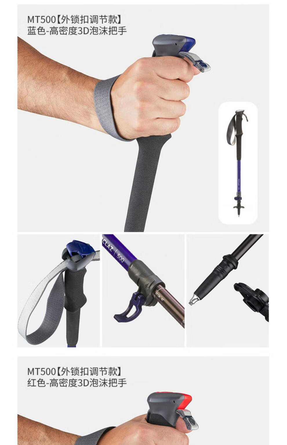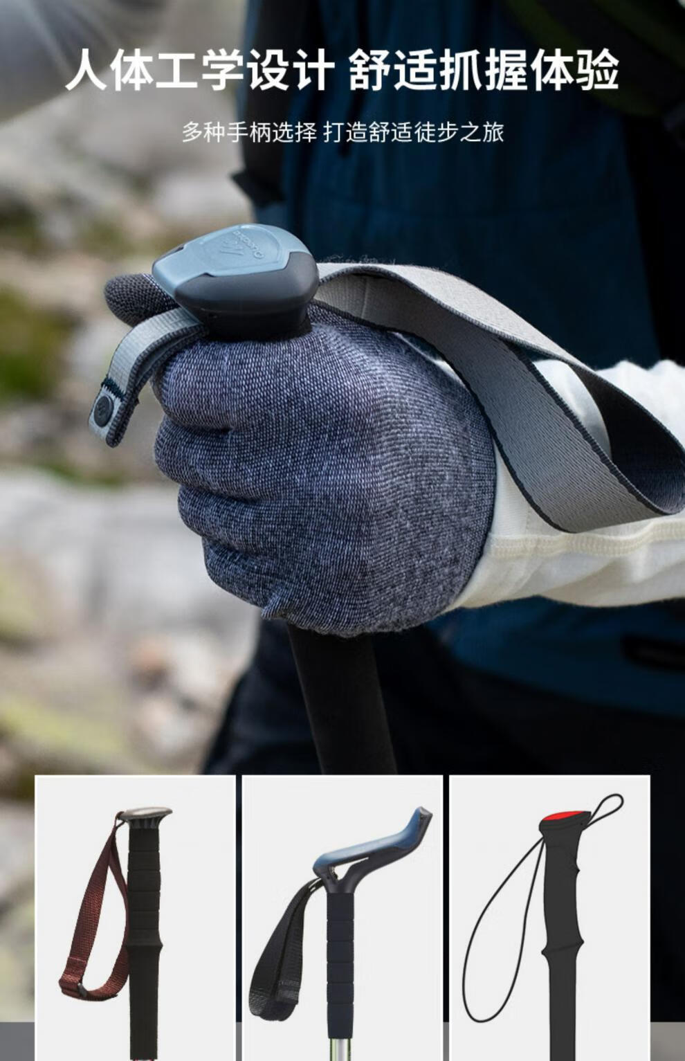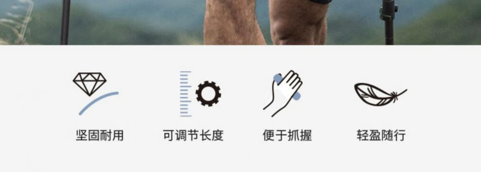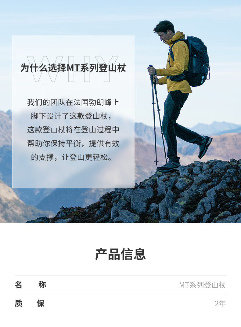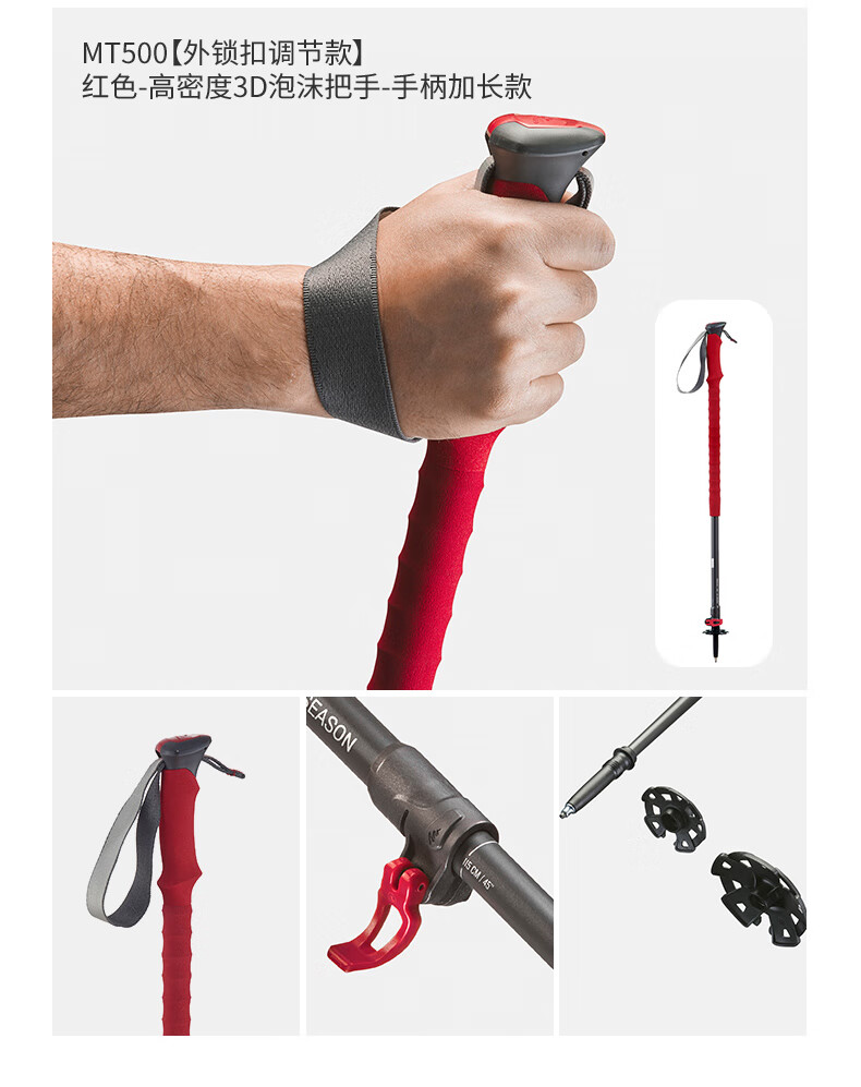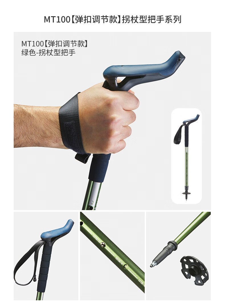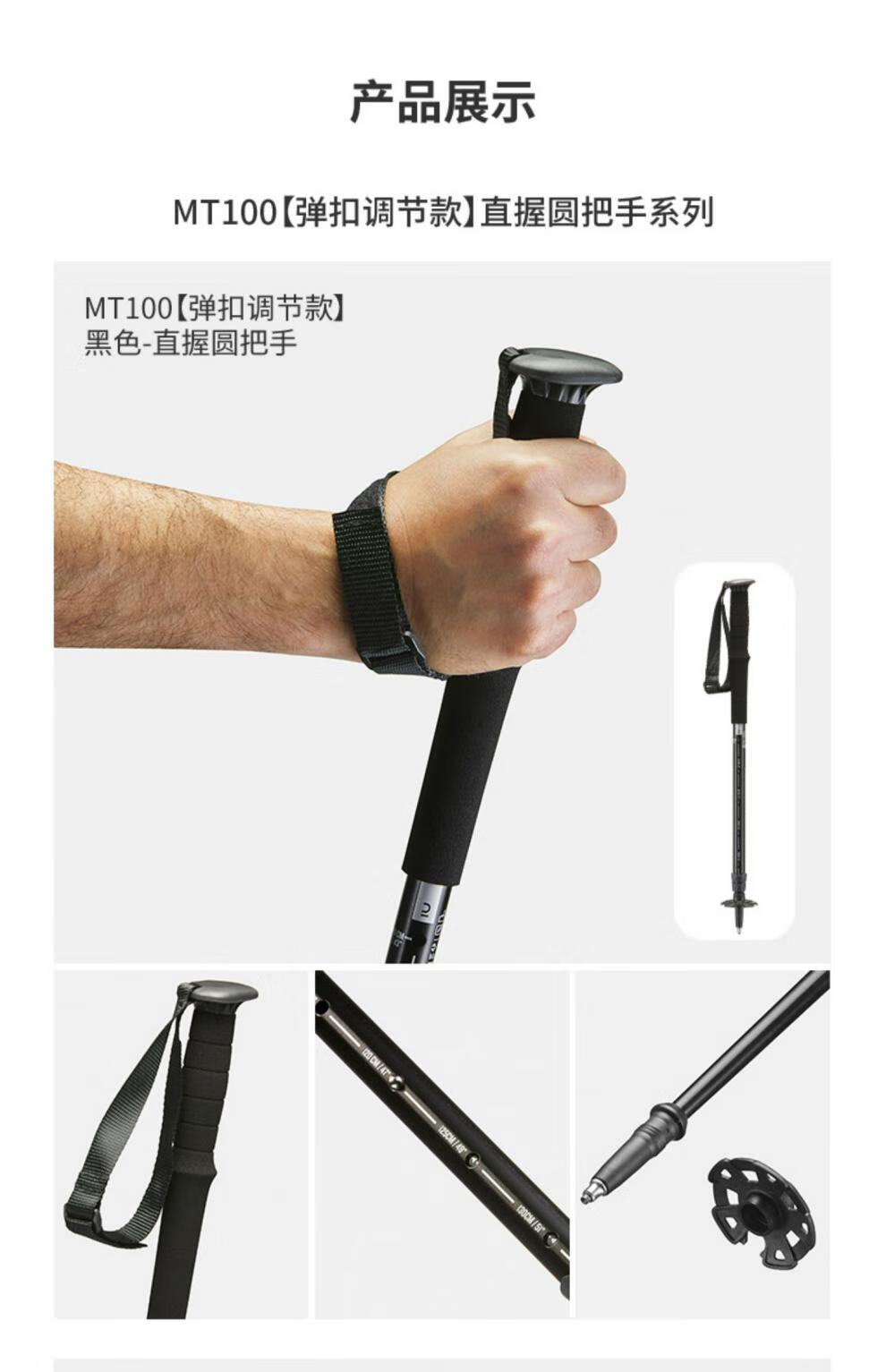 Decathlon (DECATHLON) trekking poles, outdoor climbing equipment, telescopic hiking equipment, handrails for the elderly, lightweight walking sticks ODAP Valentine's Day MT100 - Single pole, elastic buckle adjustment, black