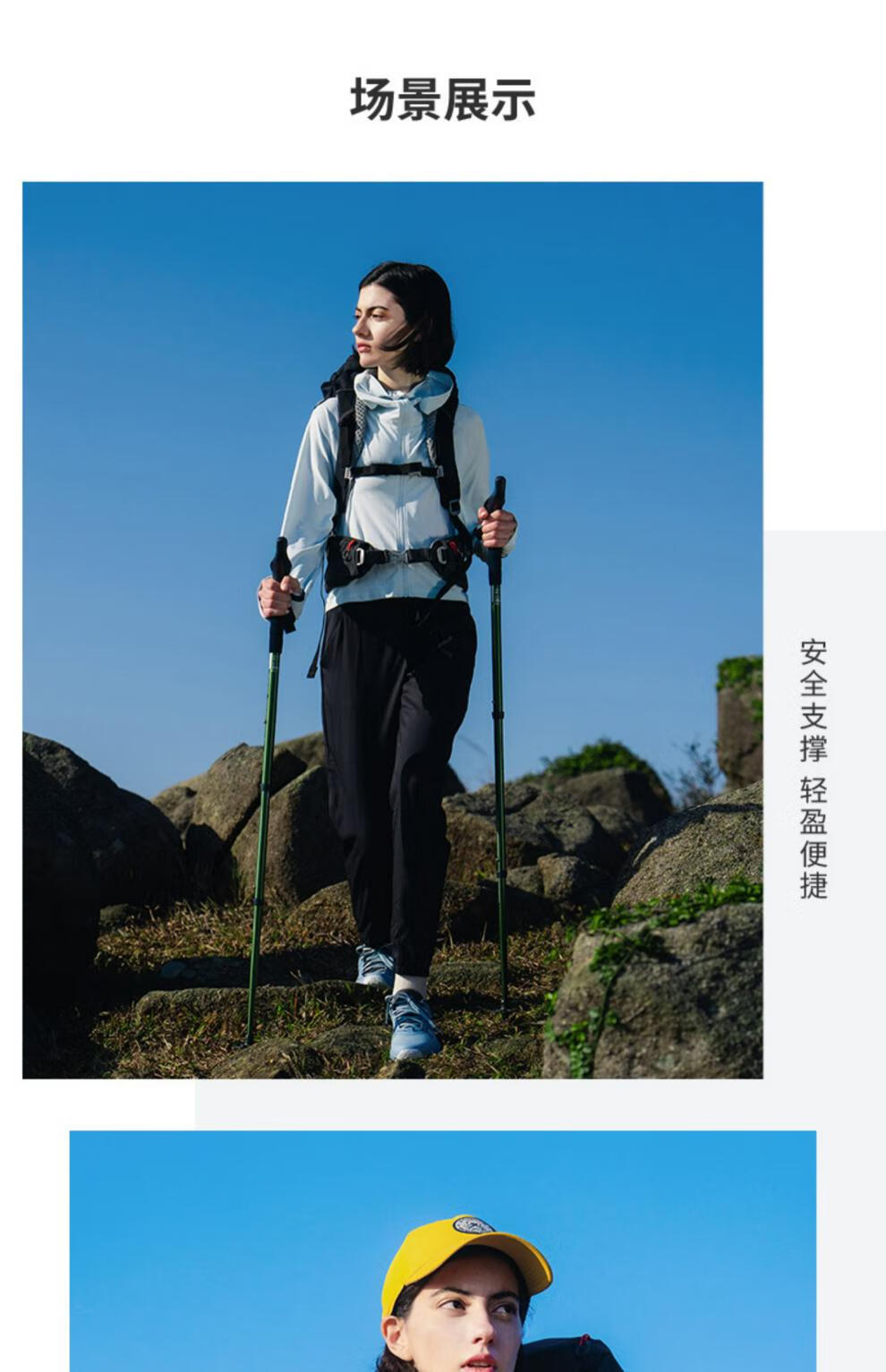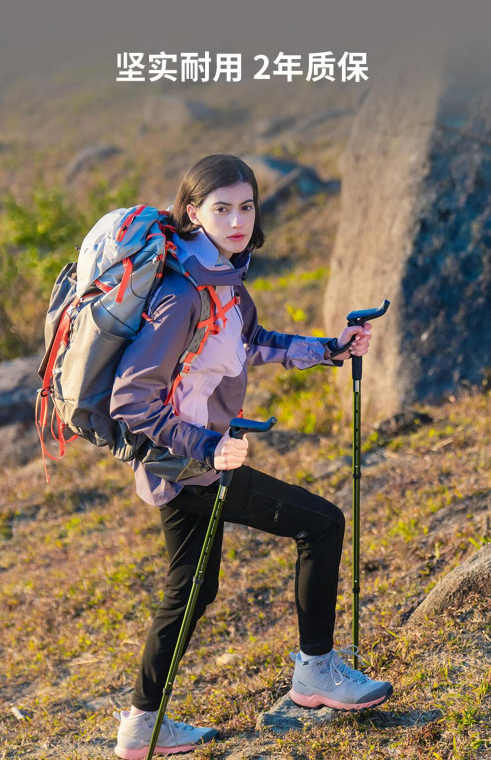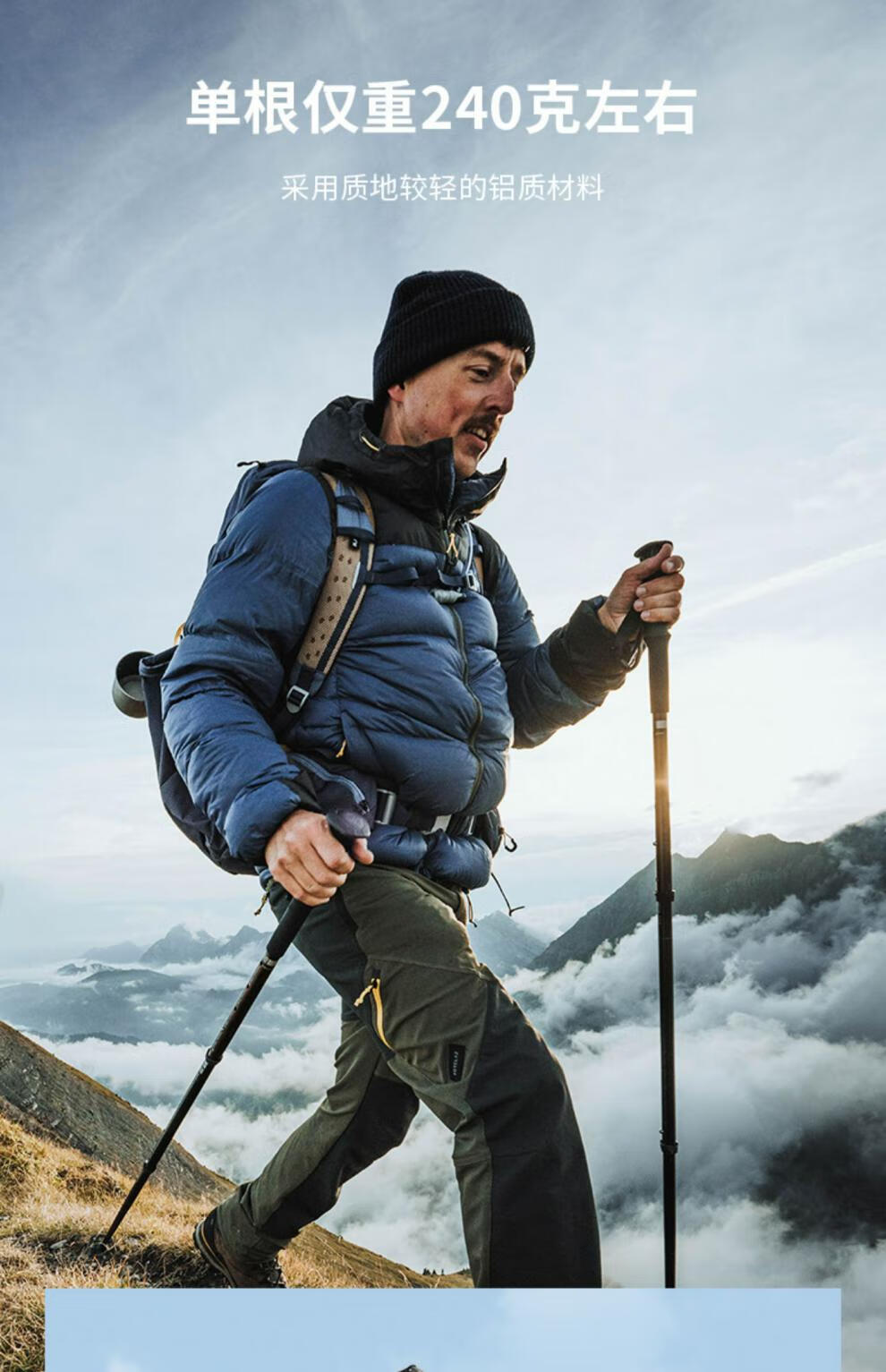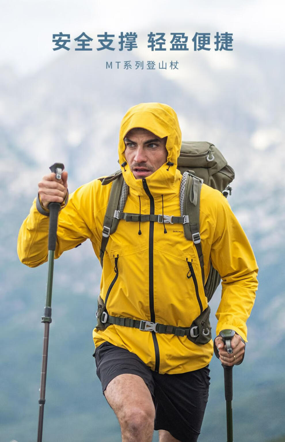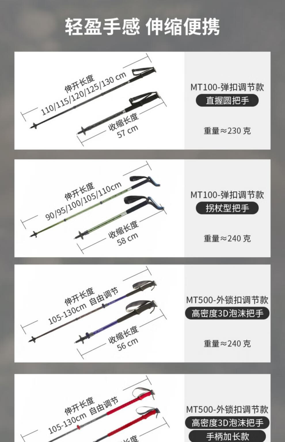 Decathlon (DECATHLON) trekking poles, outdoor climbing equipment, telescopic hiking equipment, handrails for the elderly, lightweight walking sticks ODAP Valentine's Day MT100 - Single pole, elastic buckle adjustment, black