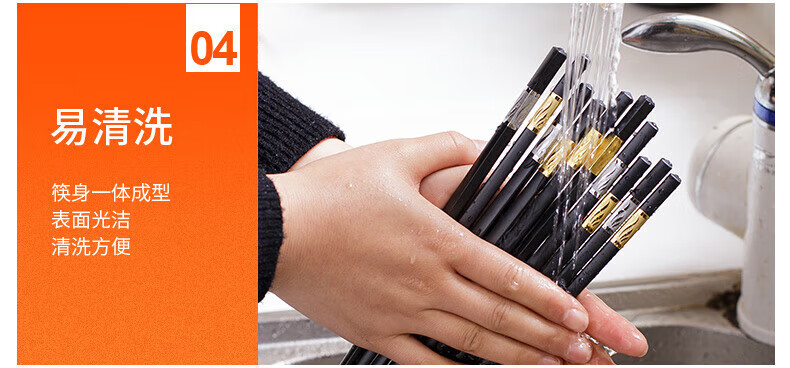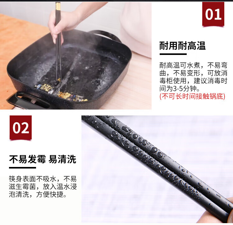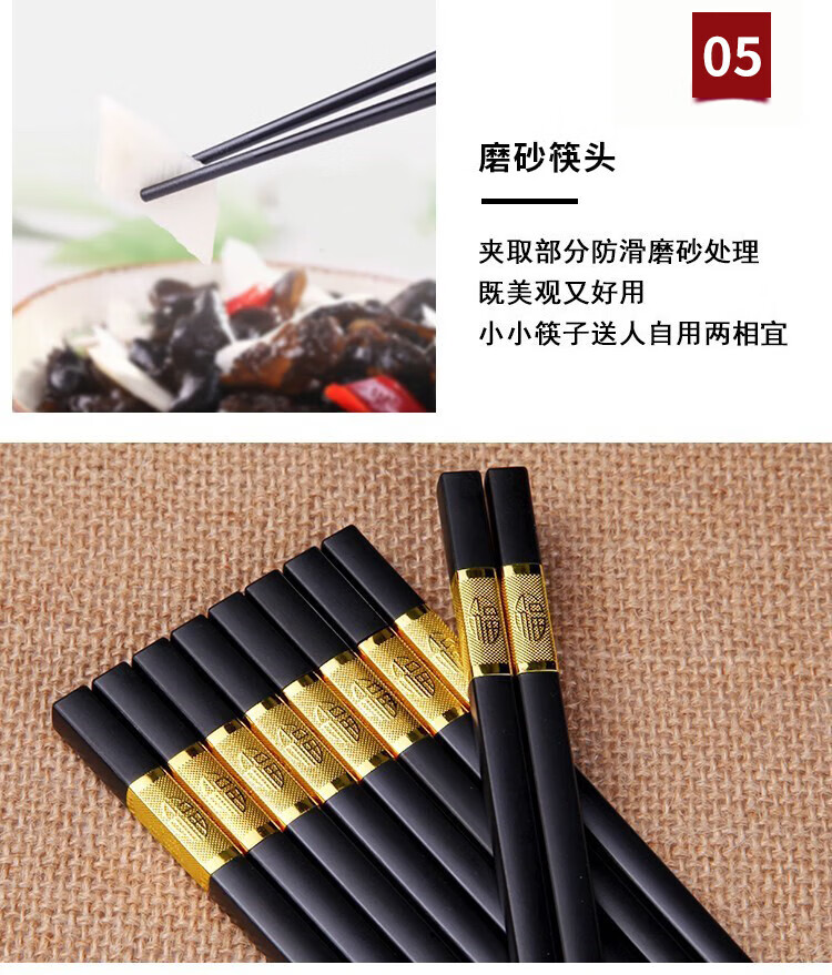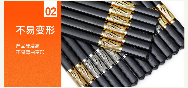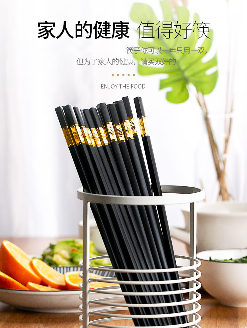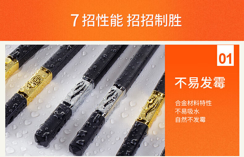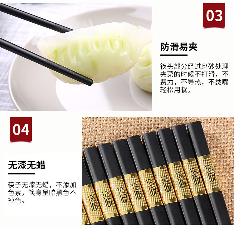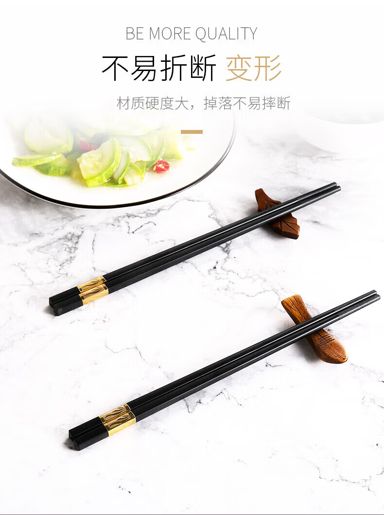 Lan Yin high temperature resistant and non-mouldy alloy chopsticks for home use, mildew resistant, non-slip, paint-free alloy, high temperature resistant, new style family pack, 10 pairs, golden three-leaf length 24CM, 10 pairs